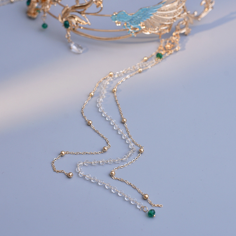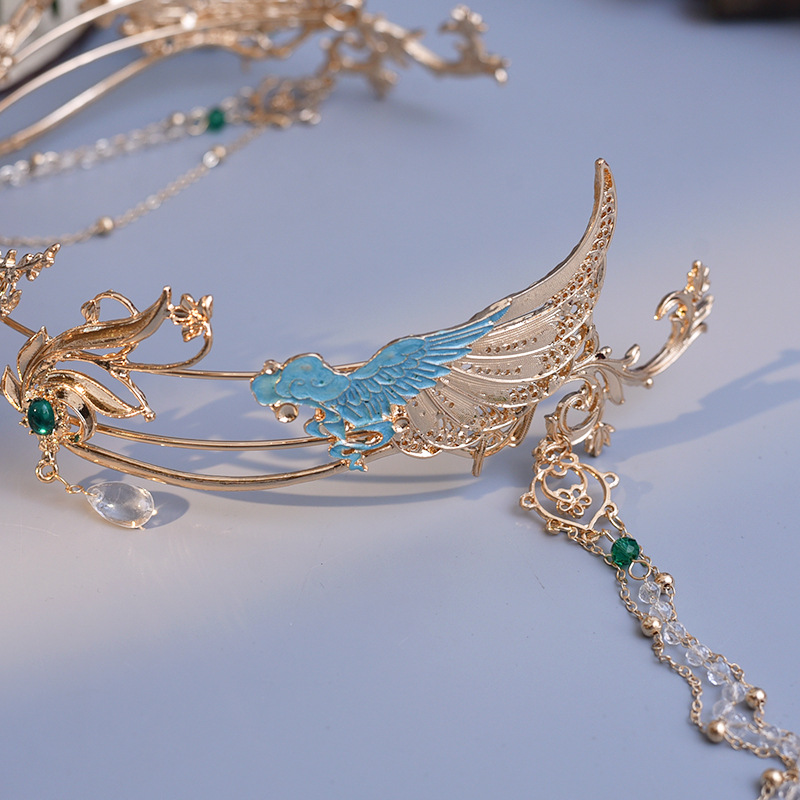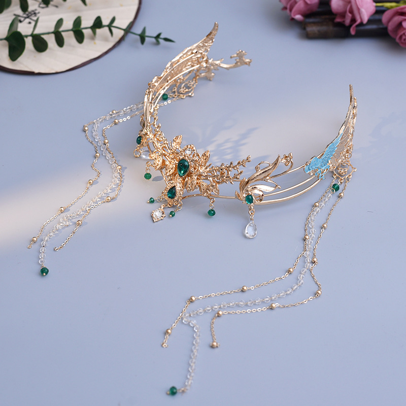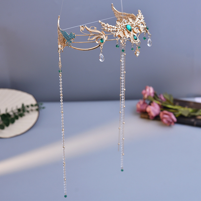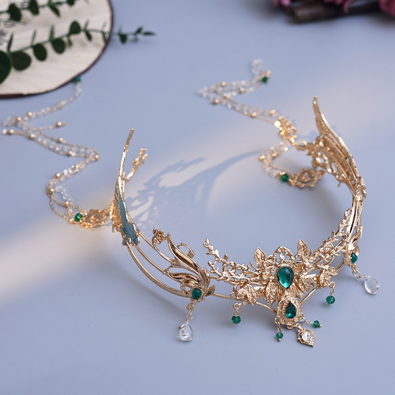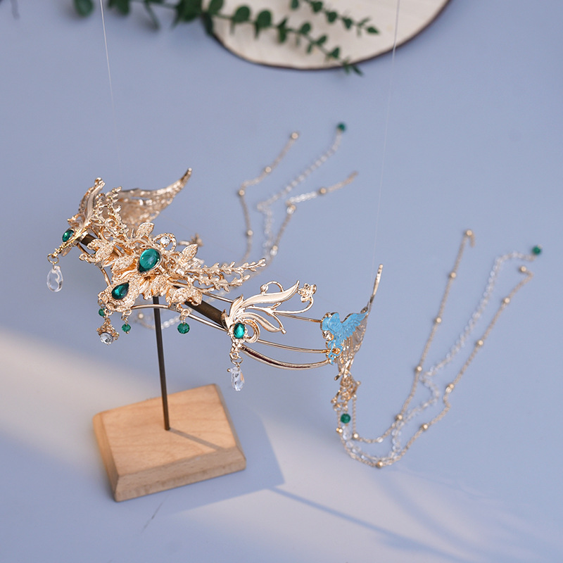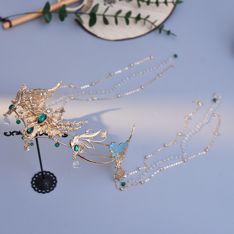 이국적인 헤어 액세서리 헤어 크라운 액세서리 서부 dunhuang hanfu 이마 장식품 녹색 중국 술 머리 장식 골동품 신디 풀 세트스토어 가기