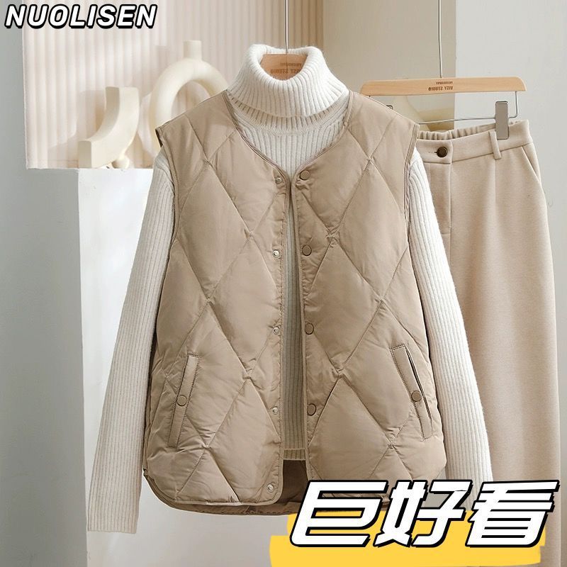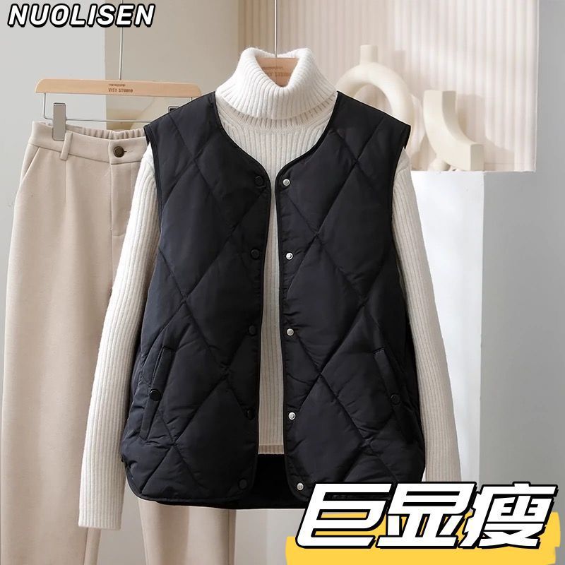Fat mm300 Jin External Wear Light Vest Collarless Light Loose Vest 면화 패딩 재킷 여성의 새로운 중국 Ins Hong Kong Girl스토어 가기
