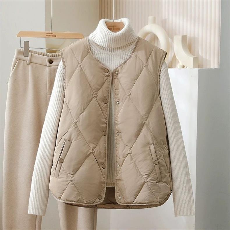 Fat mm300 Jin External Wear Light Vest Collarless Light Loose Vest 면화 패딩 재킷 여성의 새로운 중국 Ins Hong Kong Girl