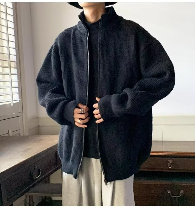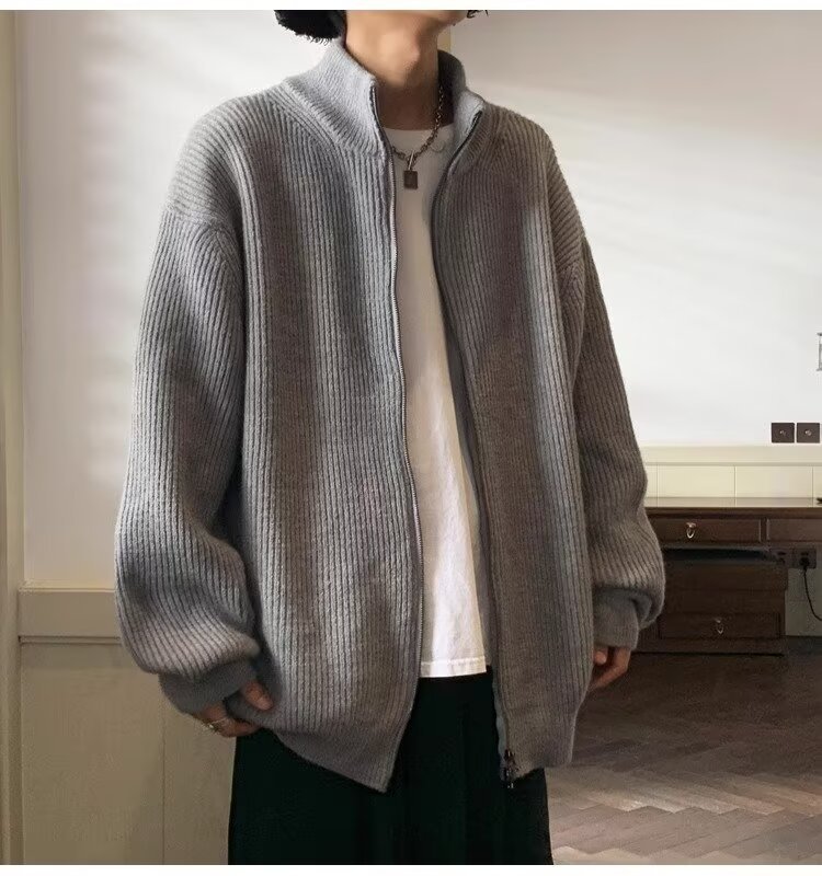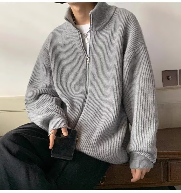 카디건 스웨터 남성 봄과 가을 패션 브랜드 느슨한 게으른 스타일 니트 스웨터 겉옷 남성 지퍼 스웨터 그레이 재킷스토어 가기
