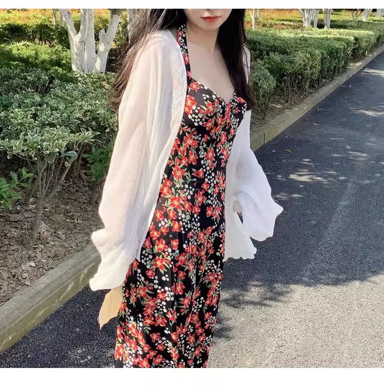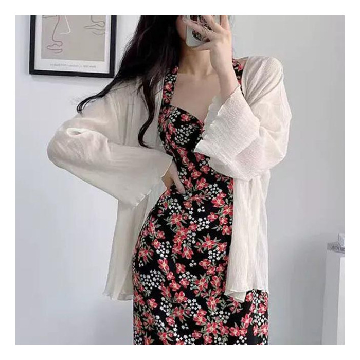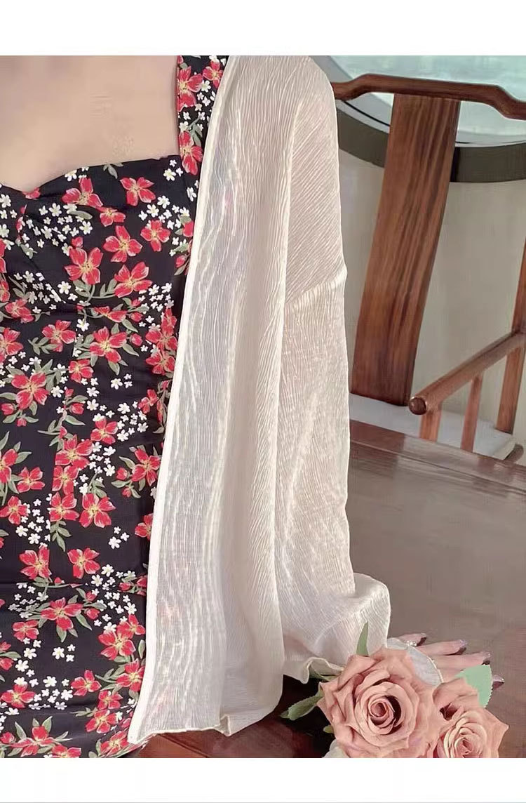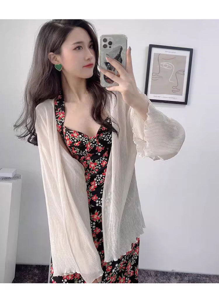 봄과 가을 긴팔 카디건 여성용 얇은 가벼운 주름 쉬폰 아우터 숄 블라우스 탑 스몰 코트스토어 가기