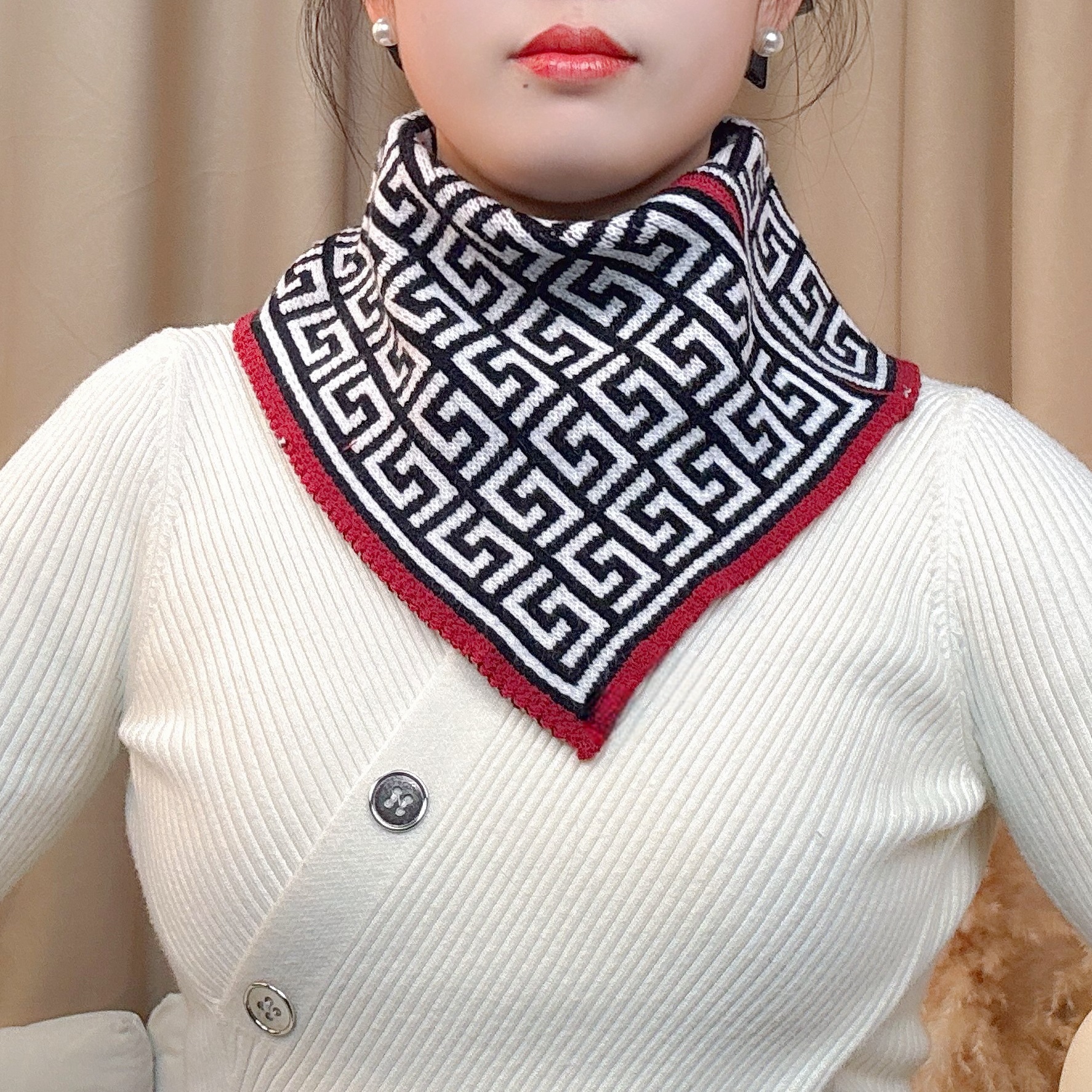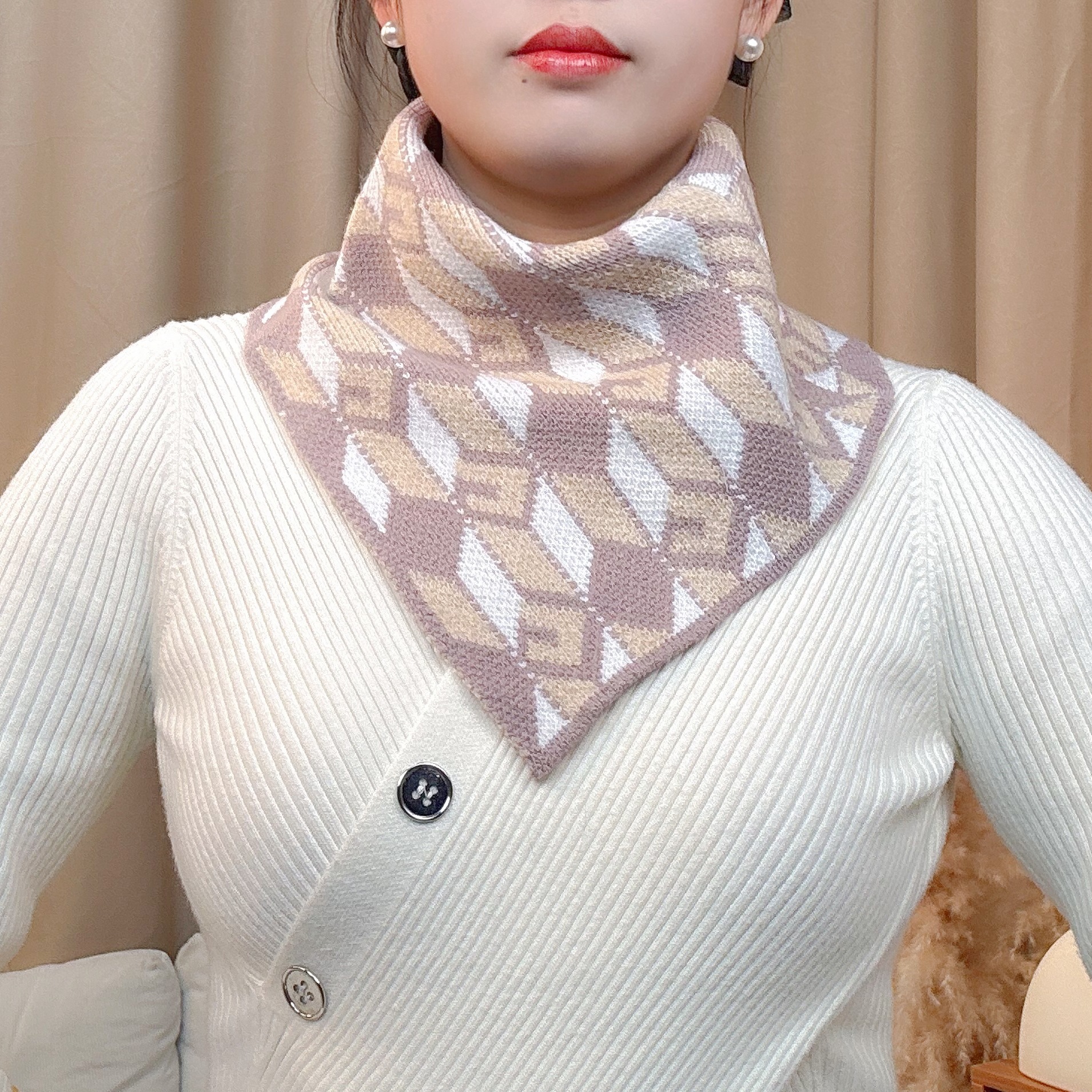 가을과 겨울 목 보호 풀오버 스카프 따뜻한 방풍 격자 무늬 삼각형 니트 스카프 두꺼운 유행 하운드 칼라 여성