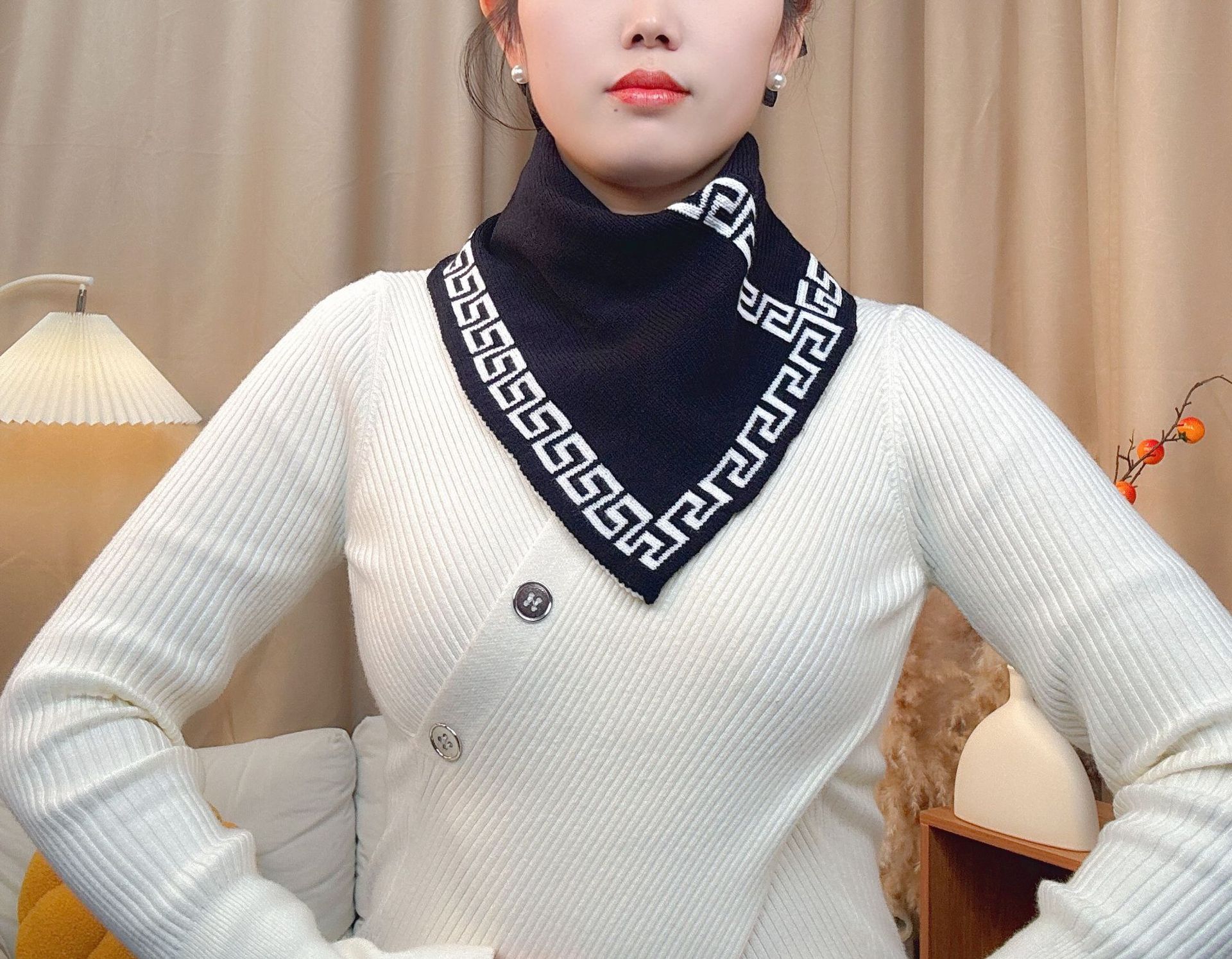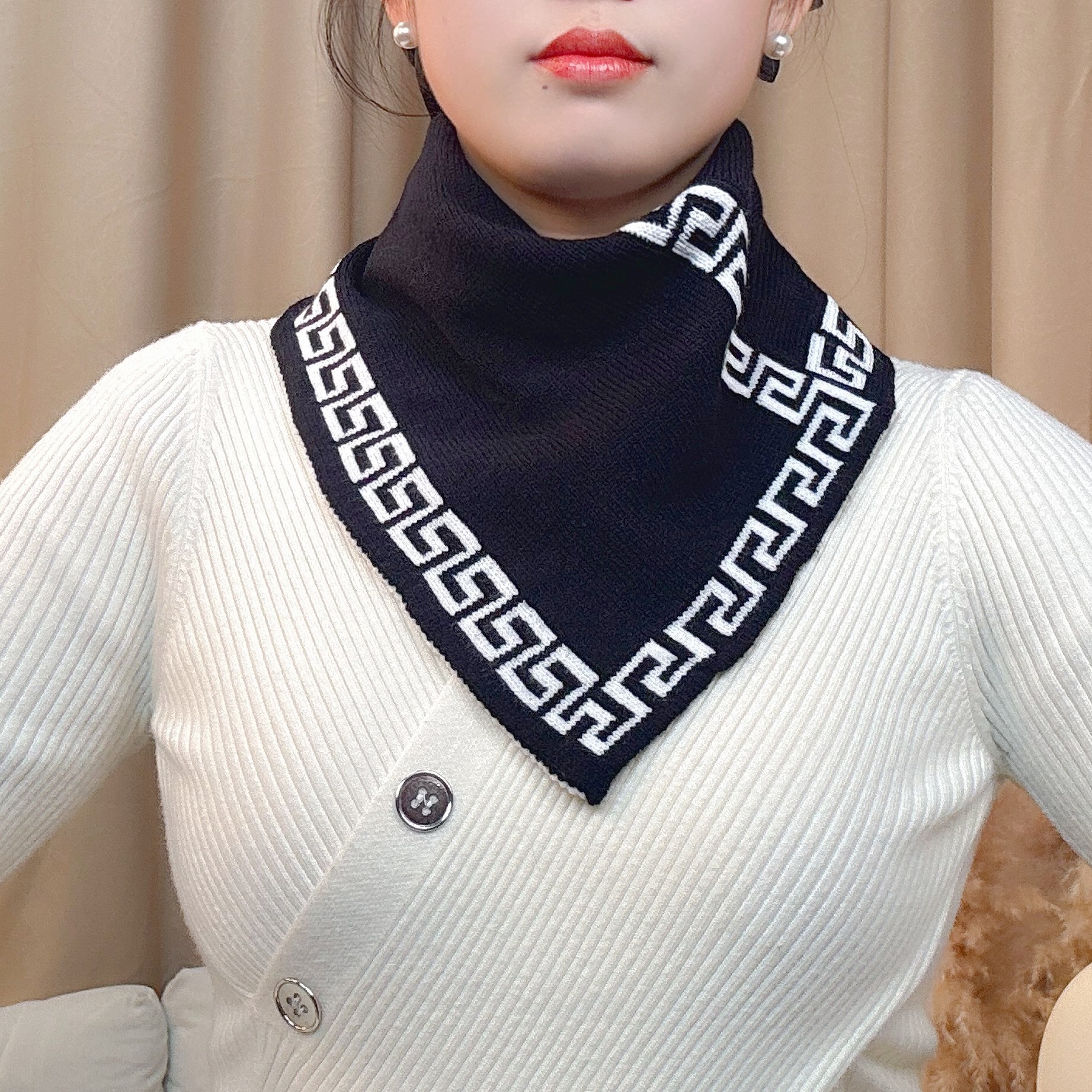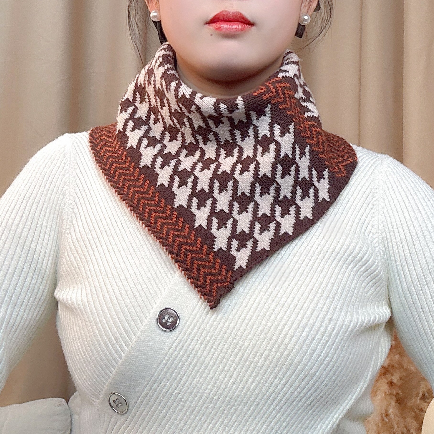 가을과 겨울 목 보호 풀오버 스카프 따뜻한 방풍 격자 무늬 삼각형 니트 스카프 두꺼운 유행 하운드 칼라 여성스토어 가기