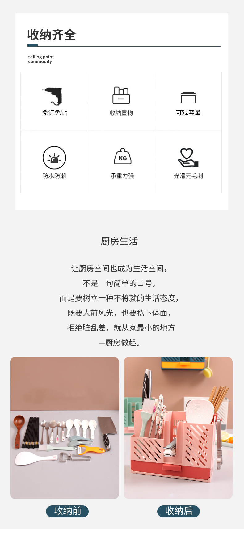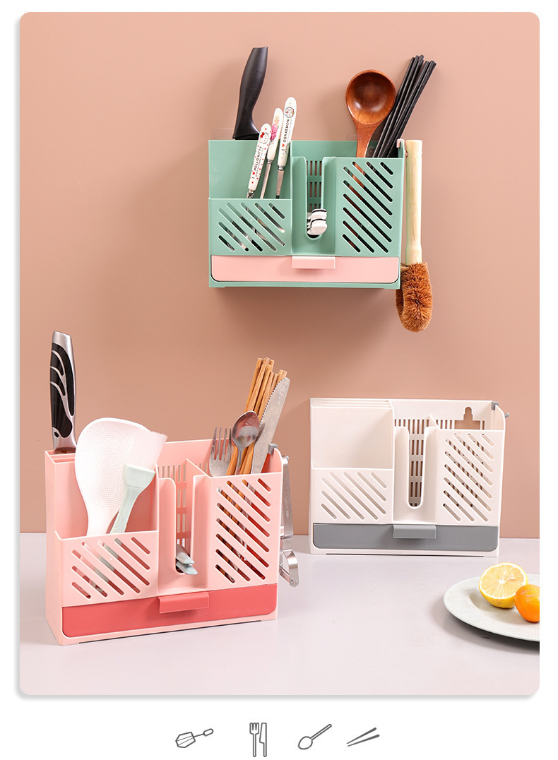 1169 벽걸이 형 젓가락 보관 상자 배수 젓가락 케이지 가정용 주방 펀치 프리 식기 랙 젓가락 케이지스토어 가기