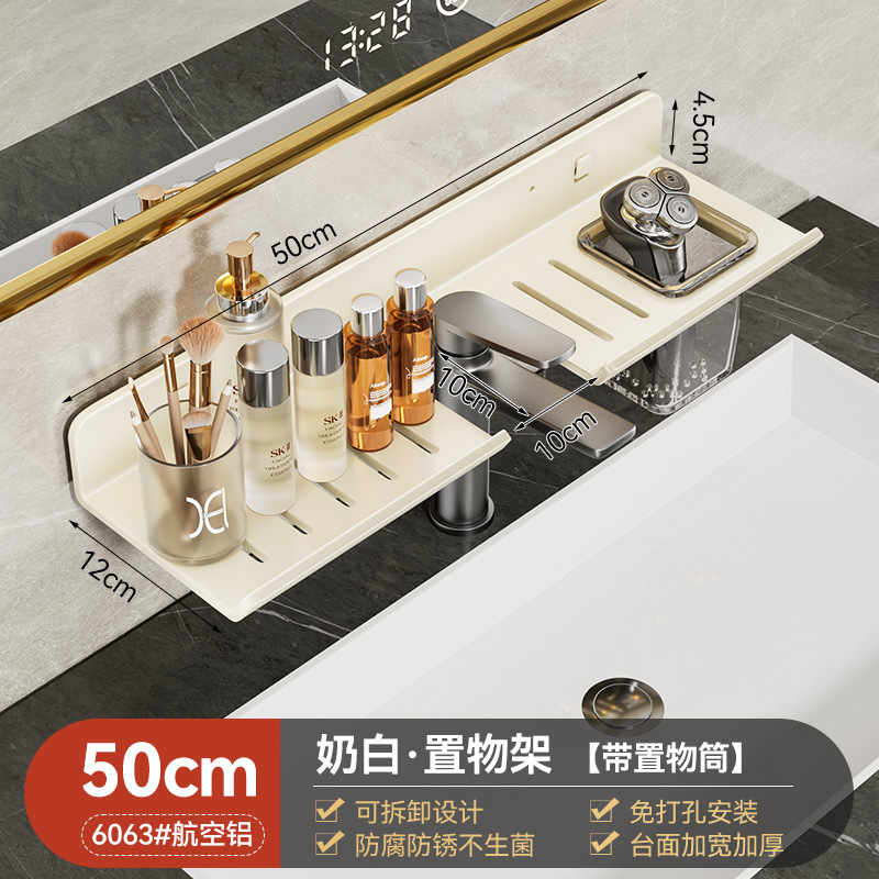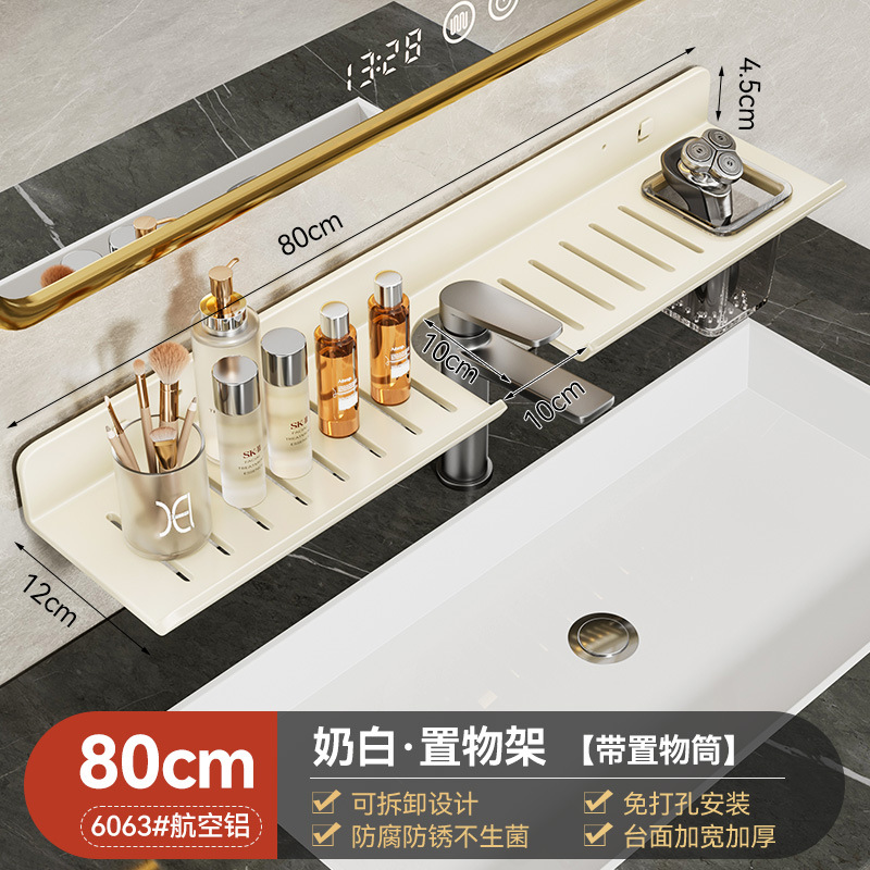 공간 알루미늄 밀크 화이트 욕실 세면기 세척 테이블 욕실 저장 랙 거울 수도꼭지 저장 선반 벽 교수형스토어 가기