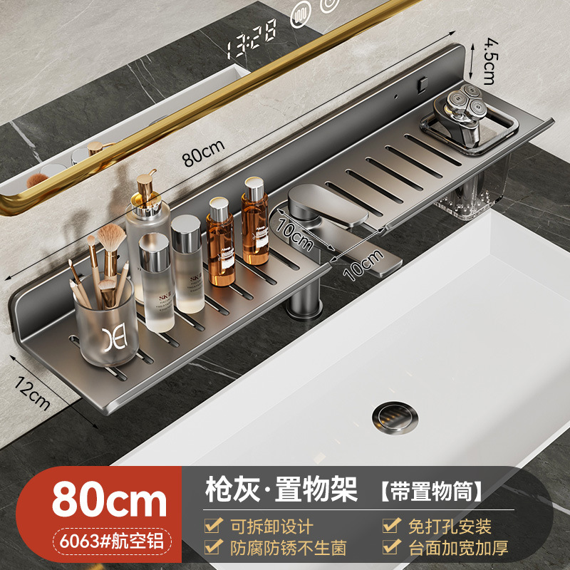 공간 알루미늄 밀크 화이트 욕실 세면기 세척 테이블 욕실 저장 랙 거울 수도꼭지 저장 선반 벽 교수형