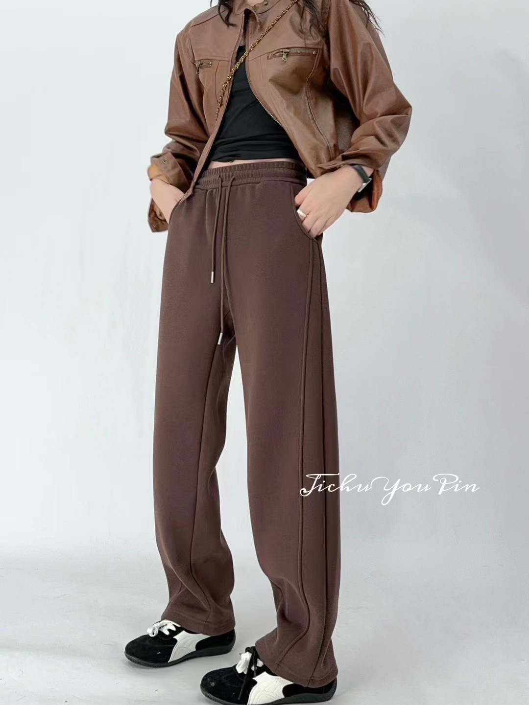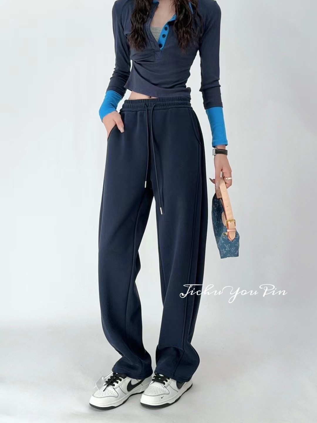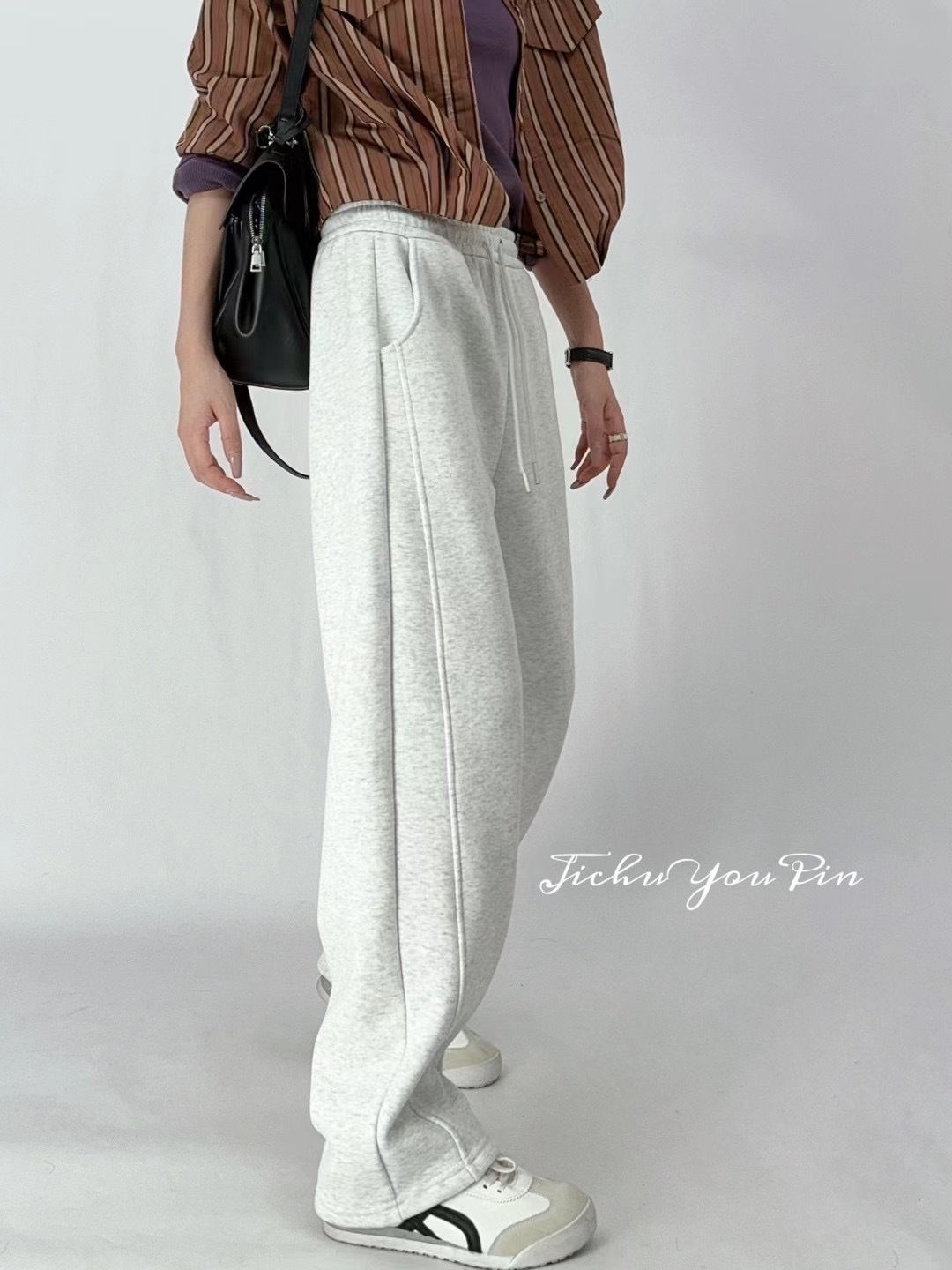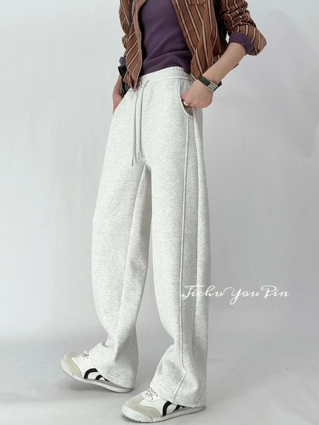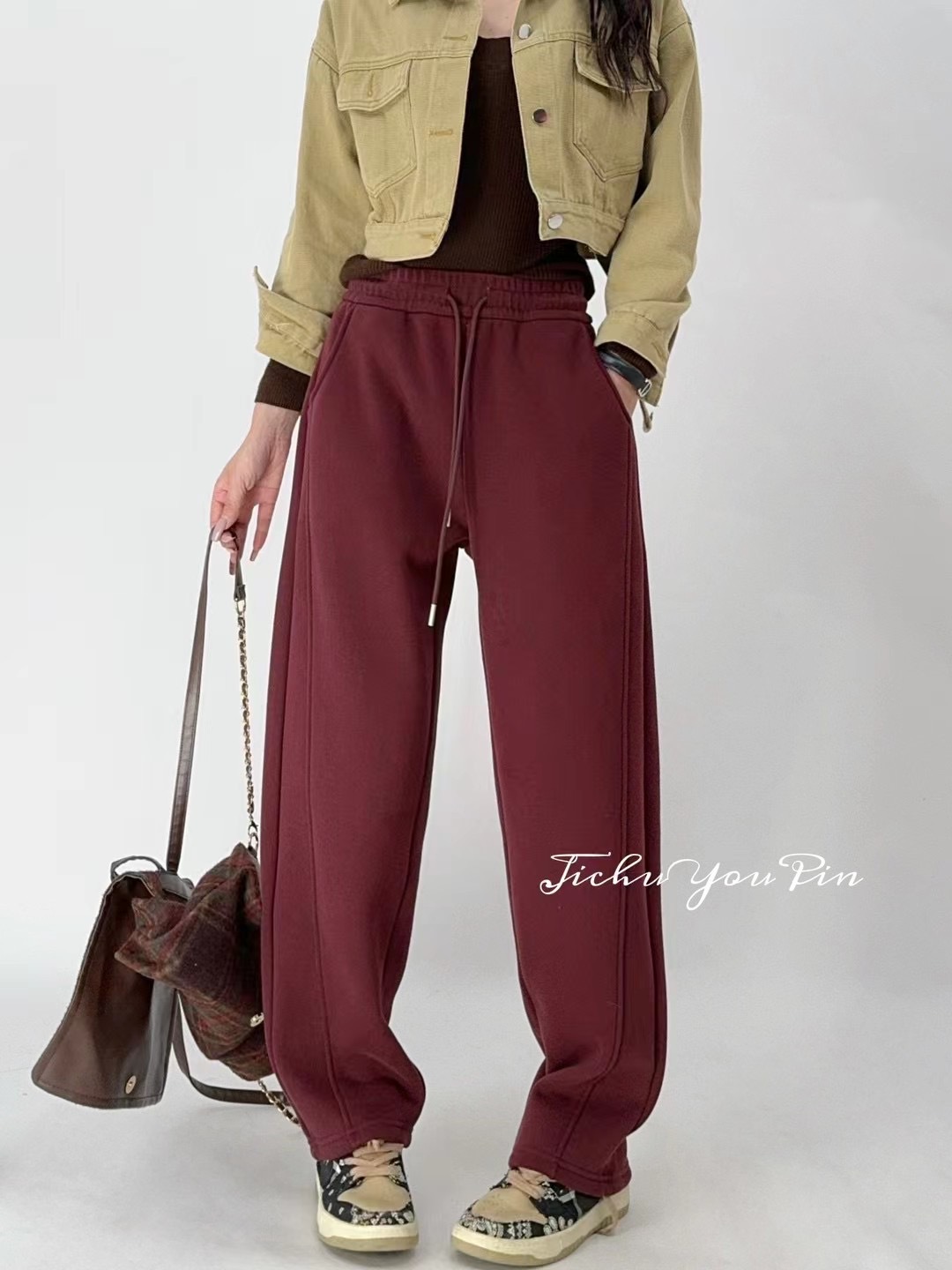 겨울 아메리칸 레트로 기모 두꺼운 슬리밍 연령 감소 따뜻한 스포츠 레저 슬리밍 바나나 바지 여자 7032