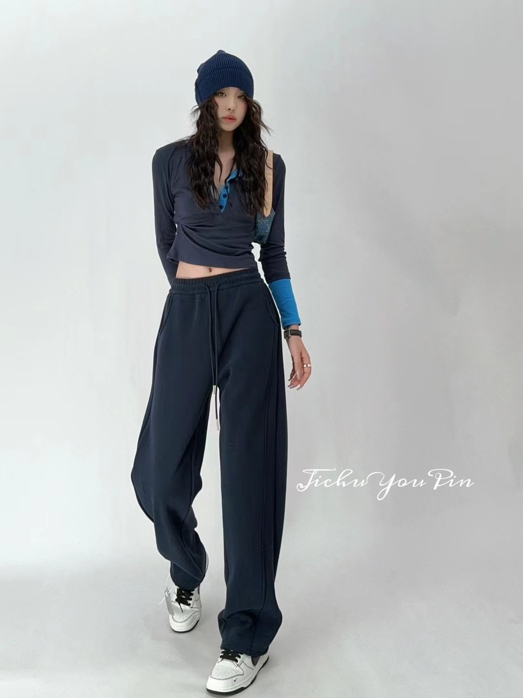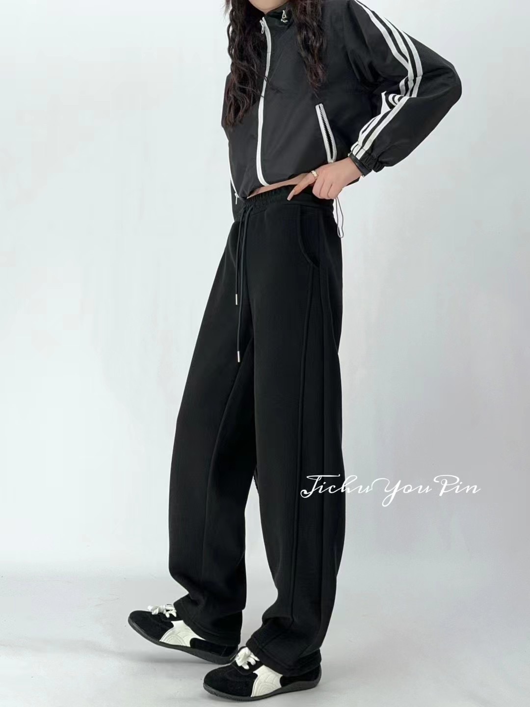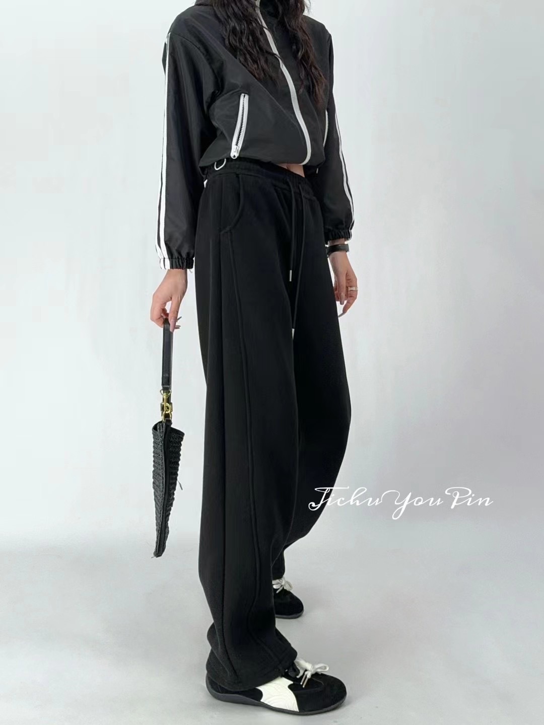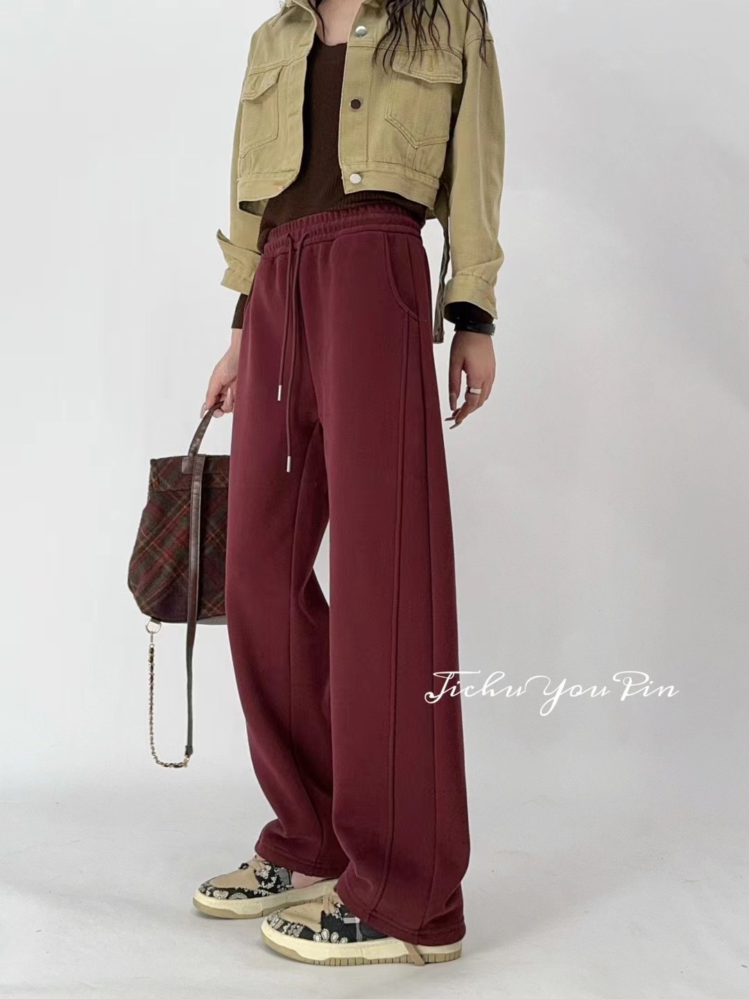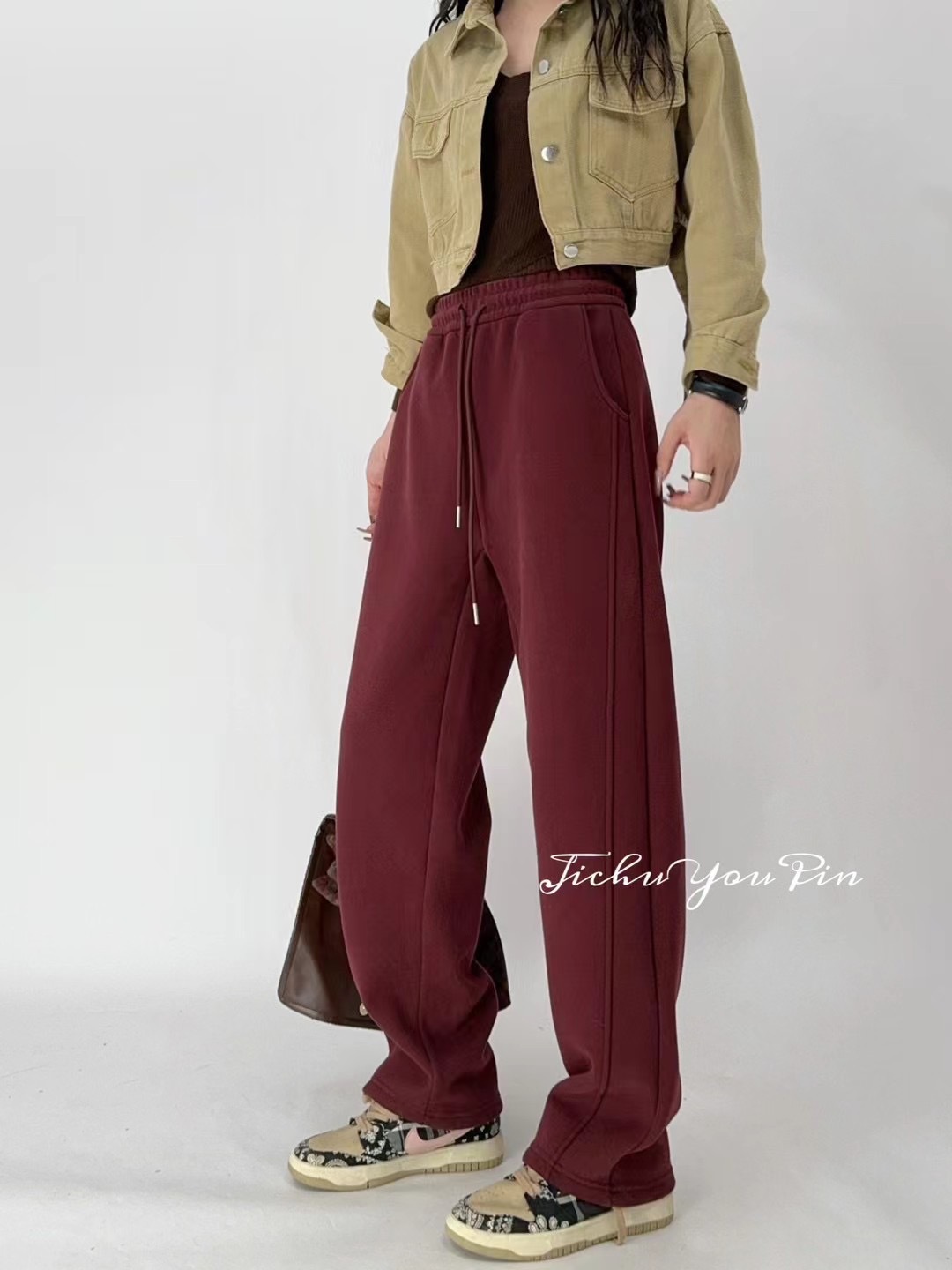 겨울 아메리칸 레트로 기모 두꺼운 슬리밍 연령 감소 따뜻한 스포츠 레저 슬리밍 바나나 바지 여자 7032