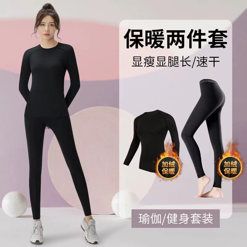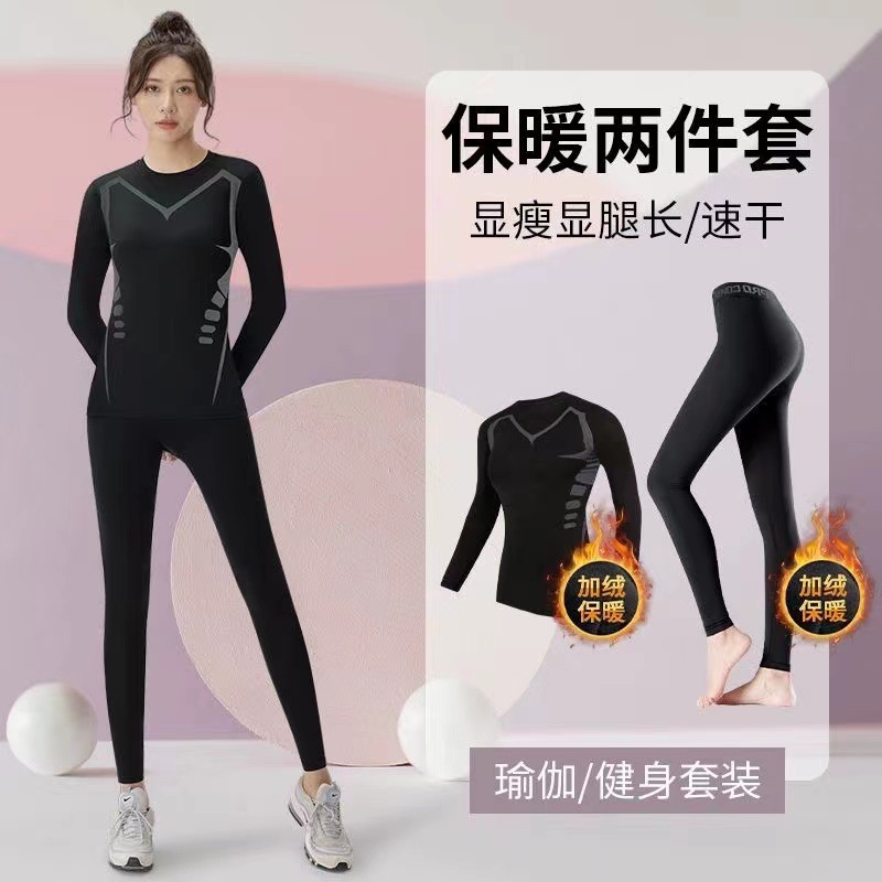 국경 간 요가 의류 여성의 피트니스 세트 빠른 건조 꽉 옷 스포츠 탑베이스 겨울 기모 따뜻한 러닝룸