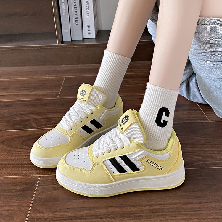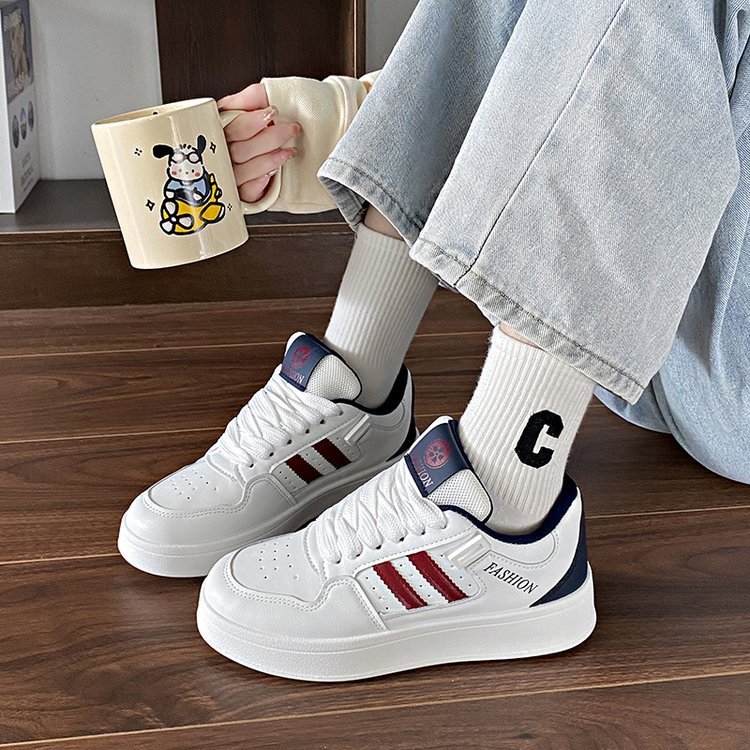 홍콩 스타일 디자인 운동화 여성의 2024 가을과 겨울 새로운 캐주얼 두꺼운 밑창 통기성 보드 슈즈, 패션 컬러 매칭 화이트 슈즈스토어 가기