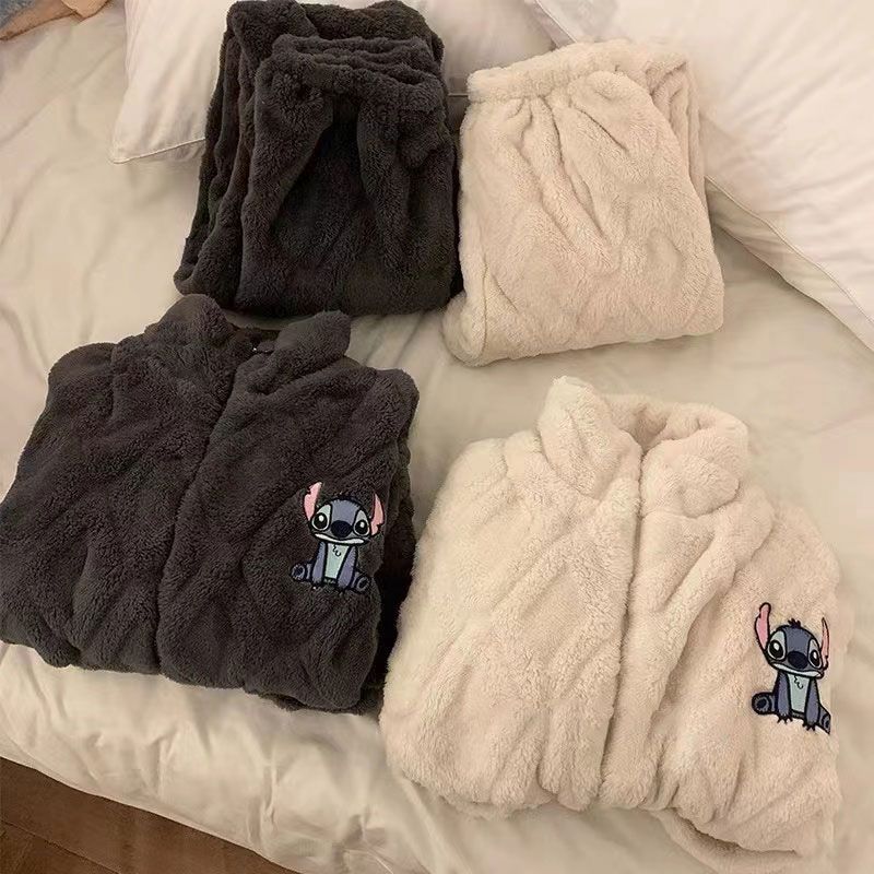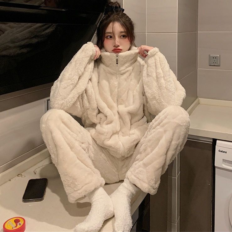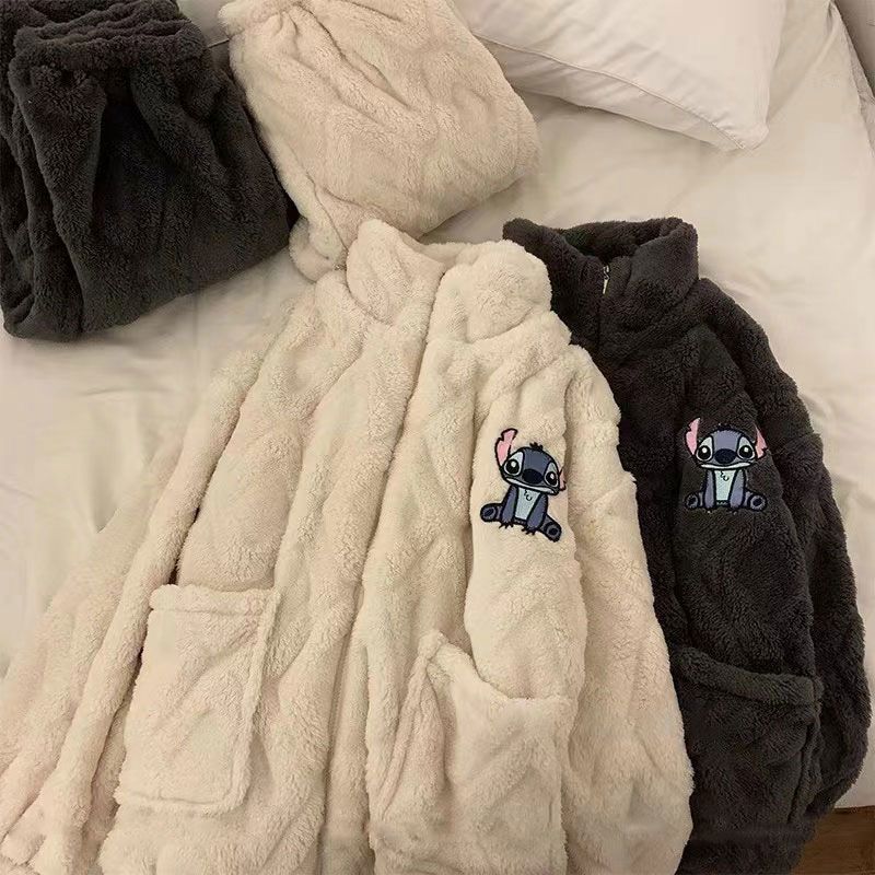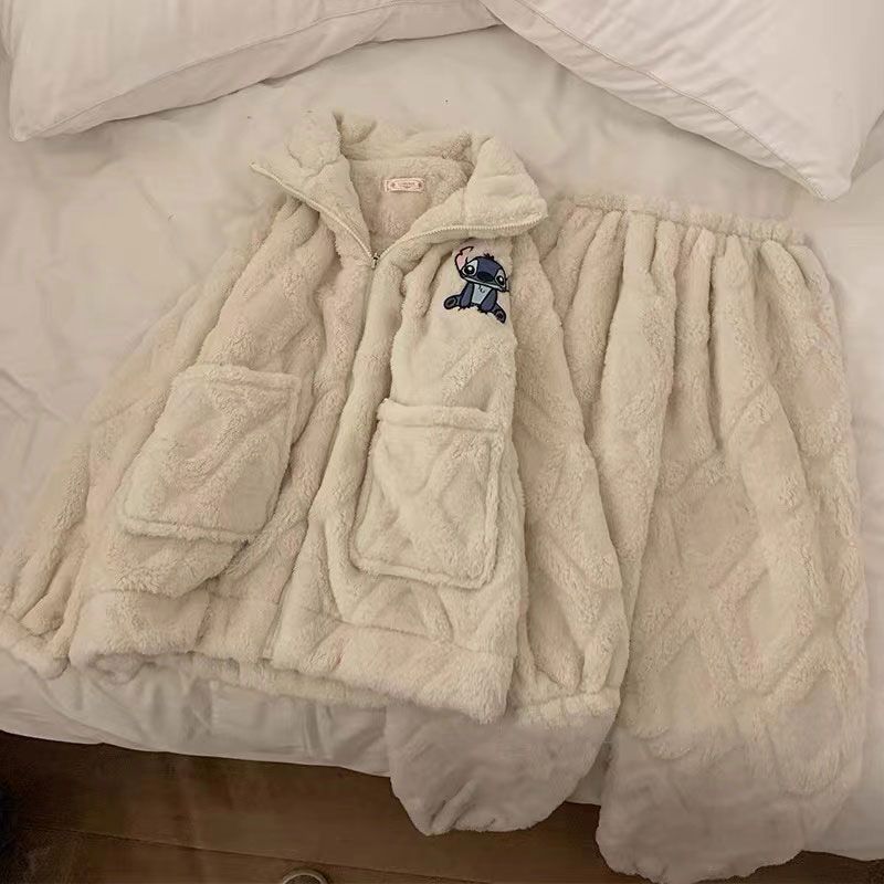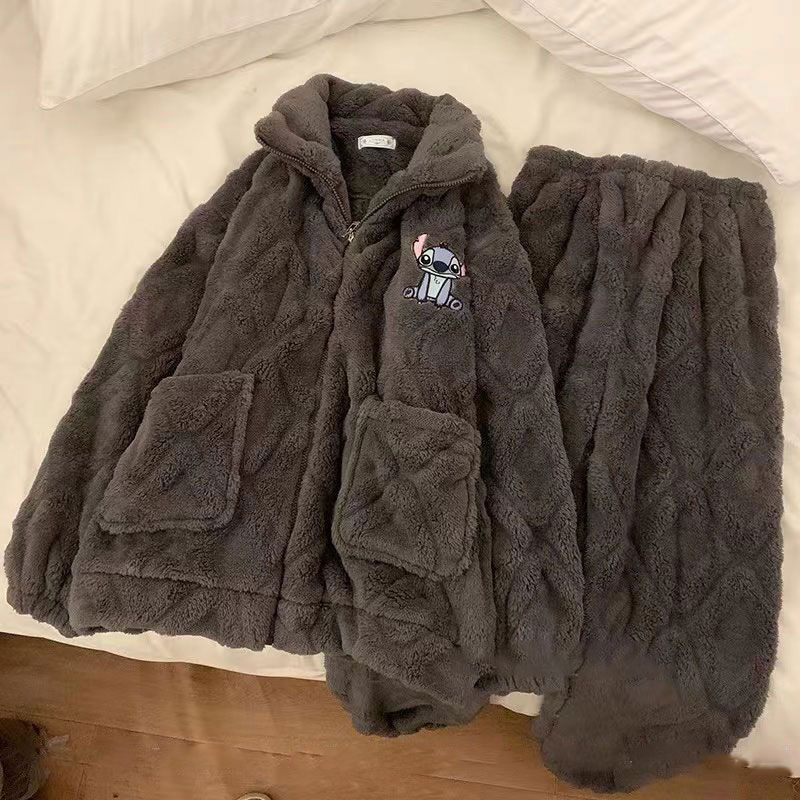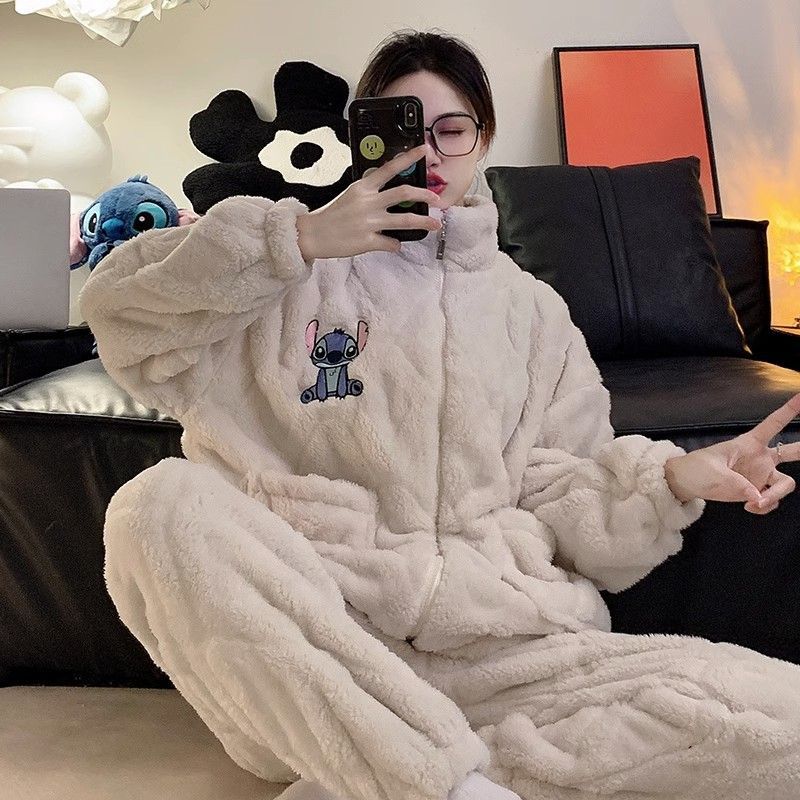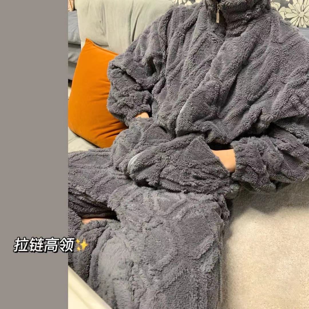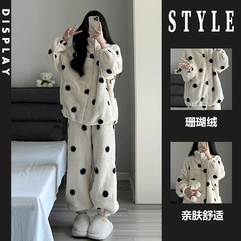 플러스 사이즈 폴카 닷 파자마 여성의 가을과 겨울 커플 플란넬 홈 옷 산호 양털 기모 지퍼 따뜻한 세트스토어 가기