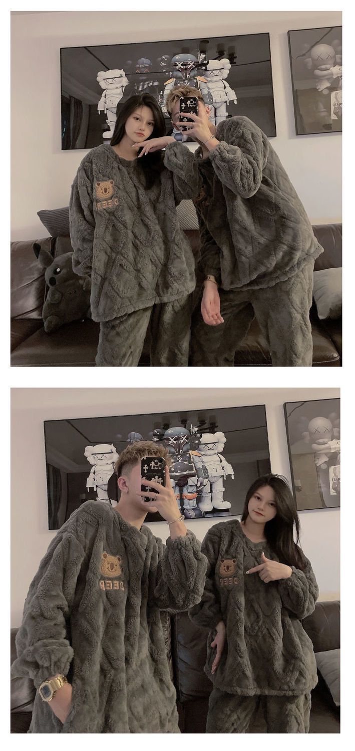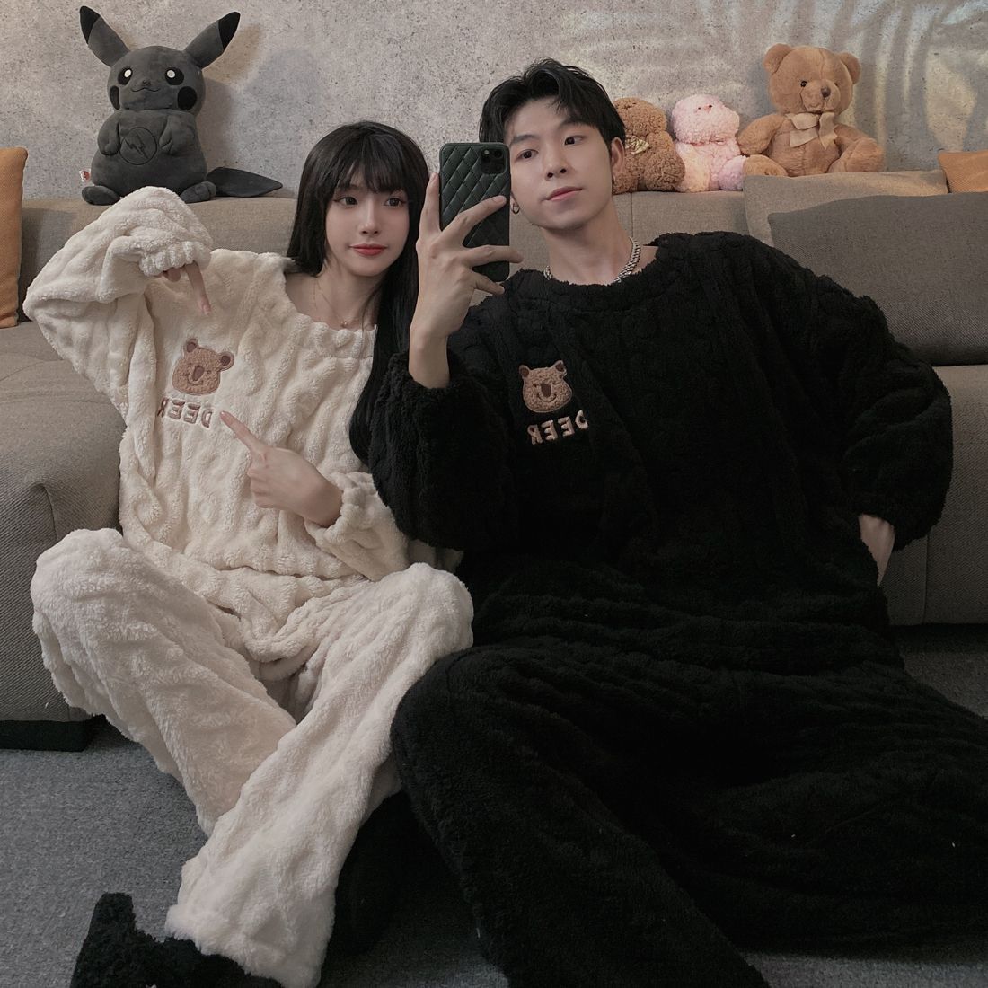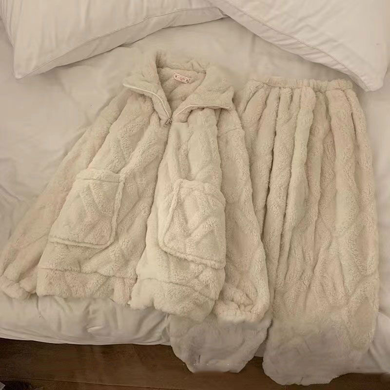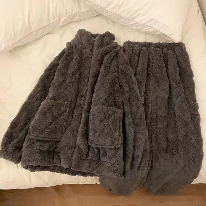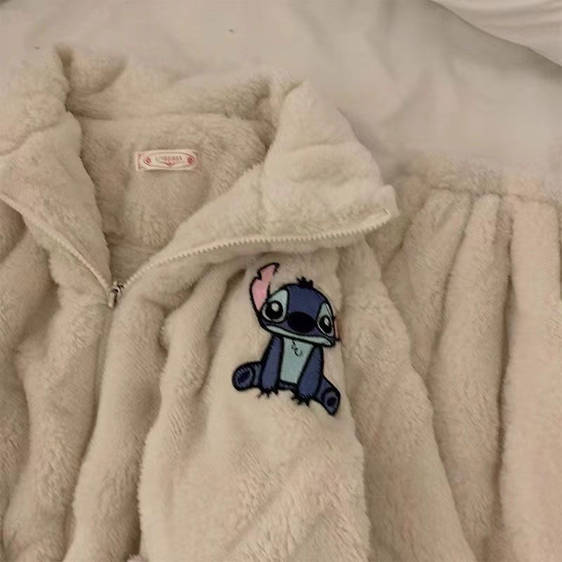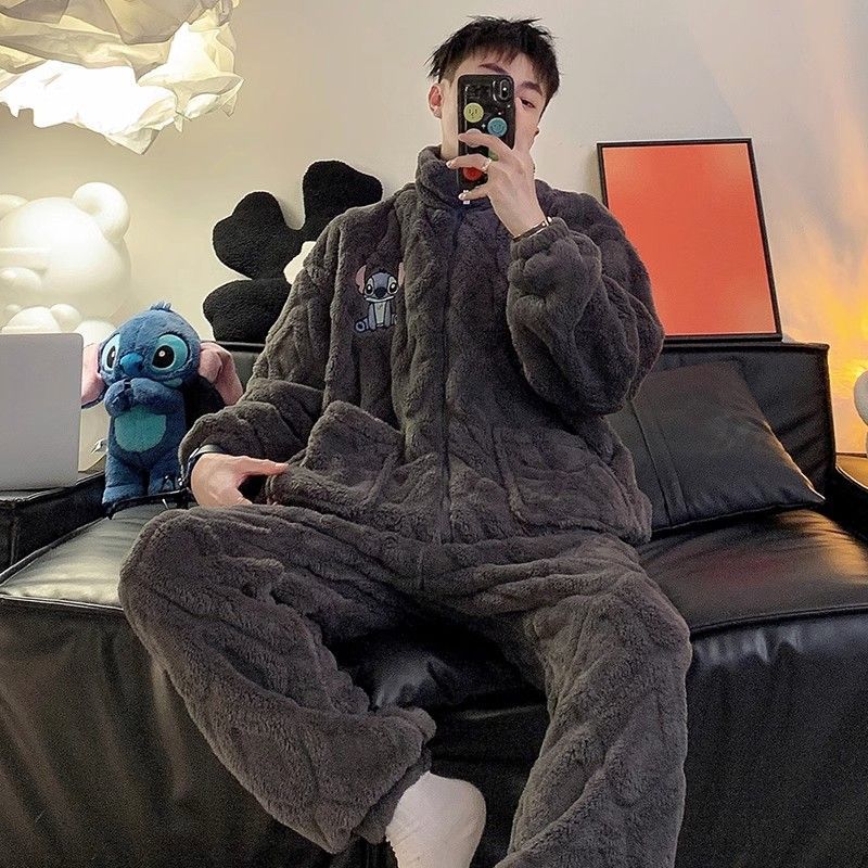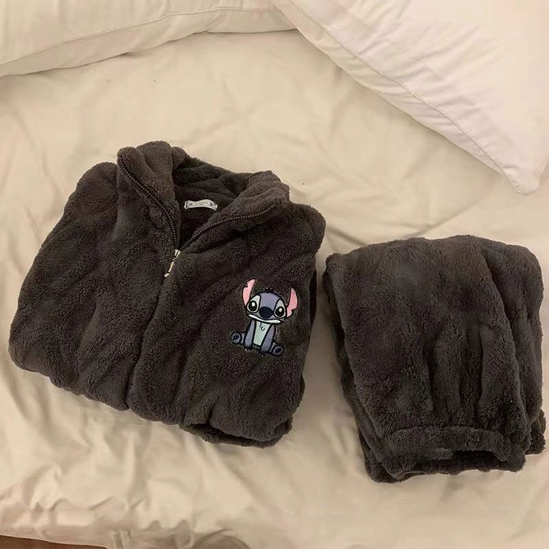 플러스 사이즈 폴카 닷 파자마 여성의 가을과 겨울 커플 플란넬 홈 옷 산호 양털 기모 지퍼 따뜻한 세트스토어 가기