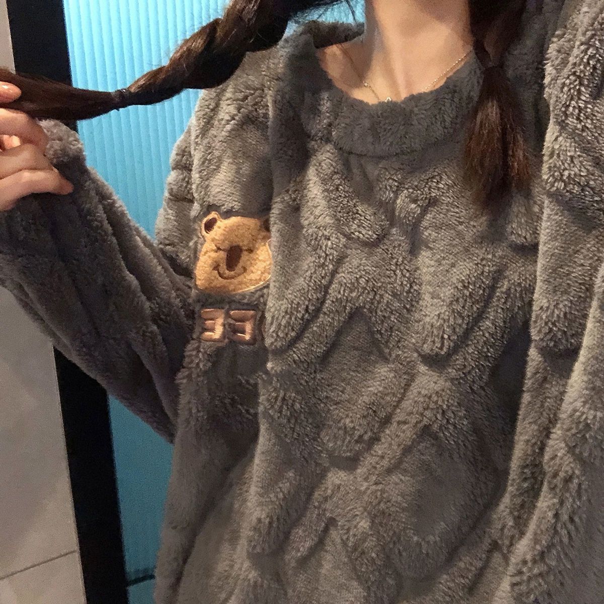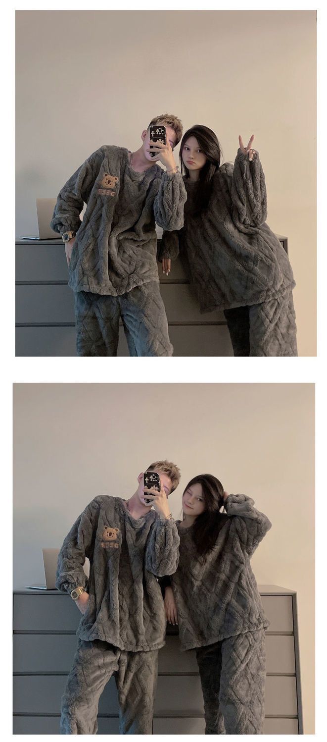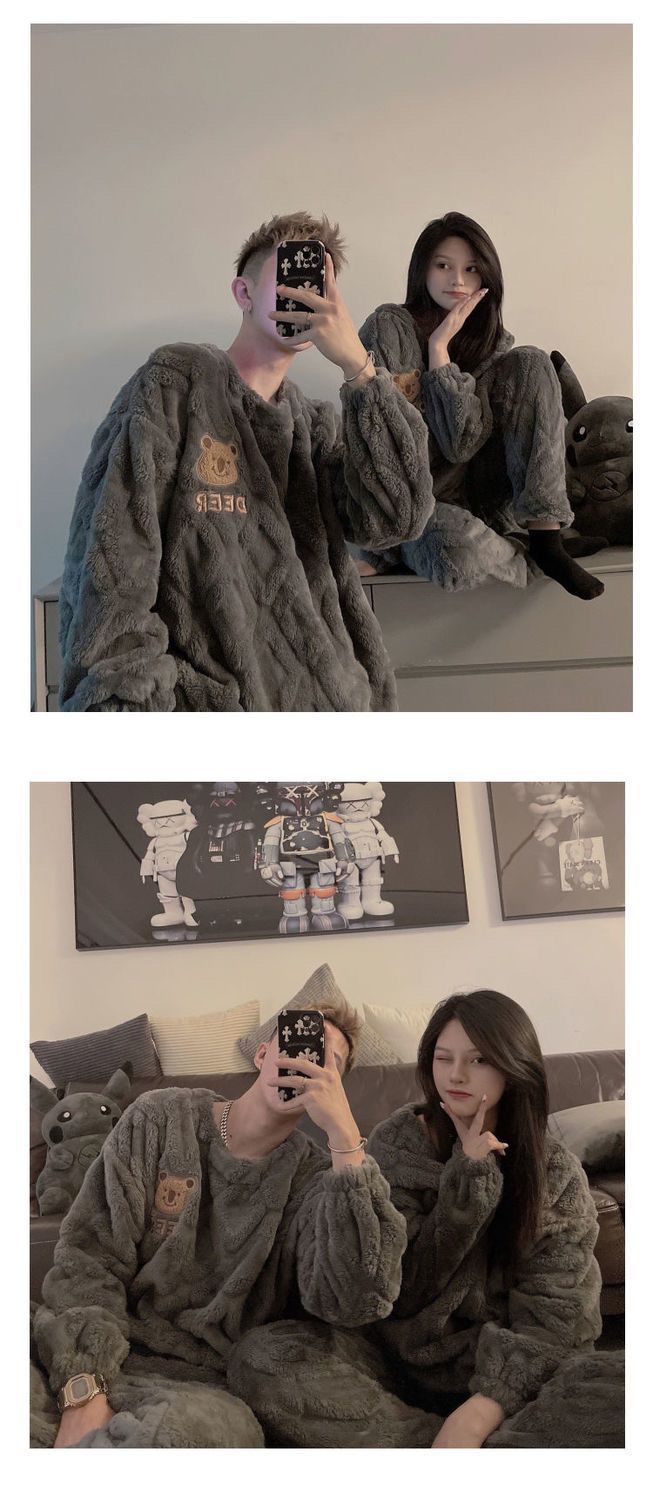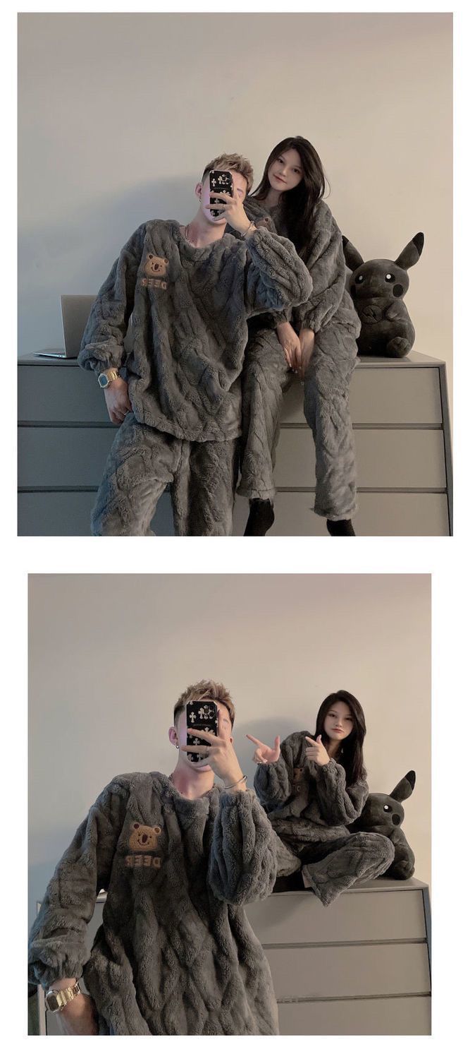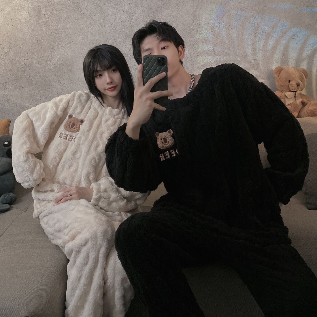 플러스 사이즈 폴카 닷 파자마 여성의 가을과 겨울 커플 플란넬 홈 옷 산호 양털 기모 지퍼 따뜻한 세트스토어 가기