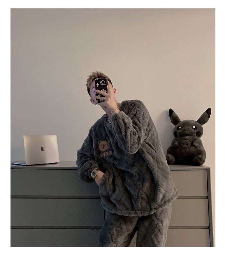• QL 플러시 살구 마름모 곰 남성 스타일