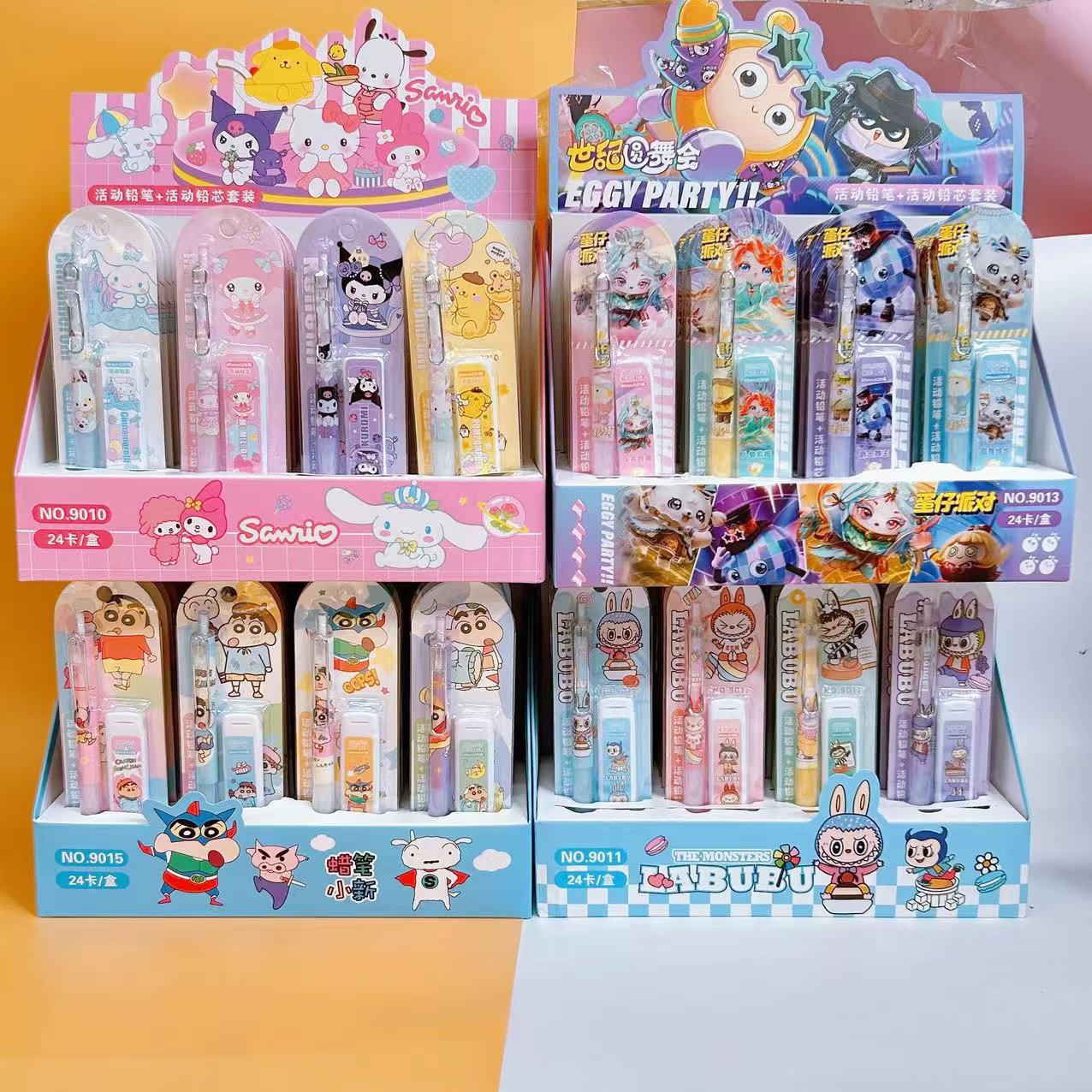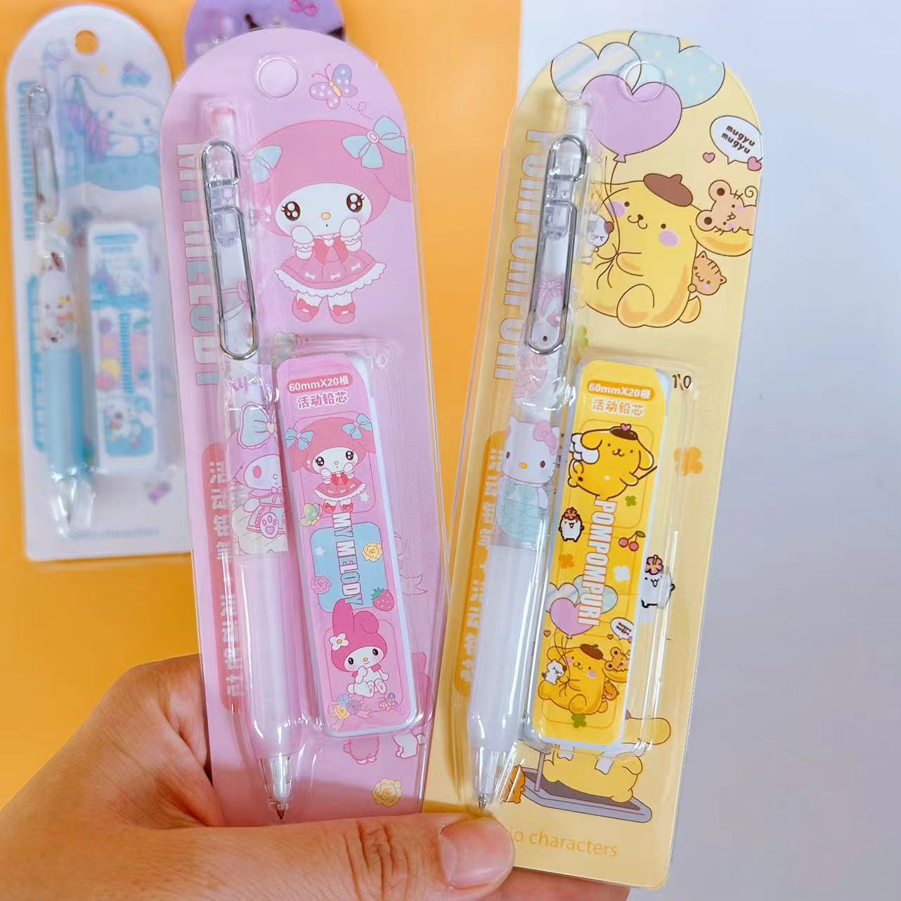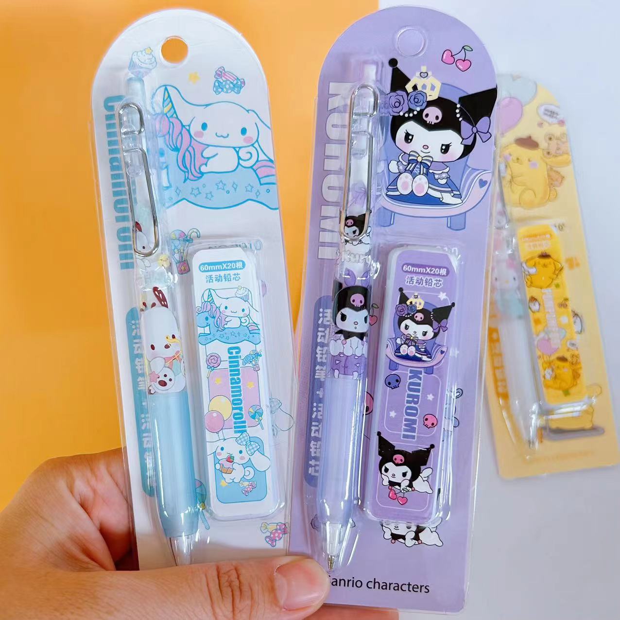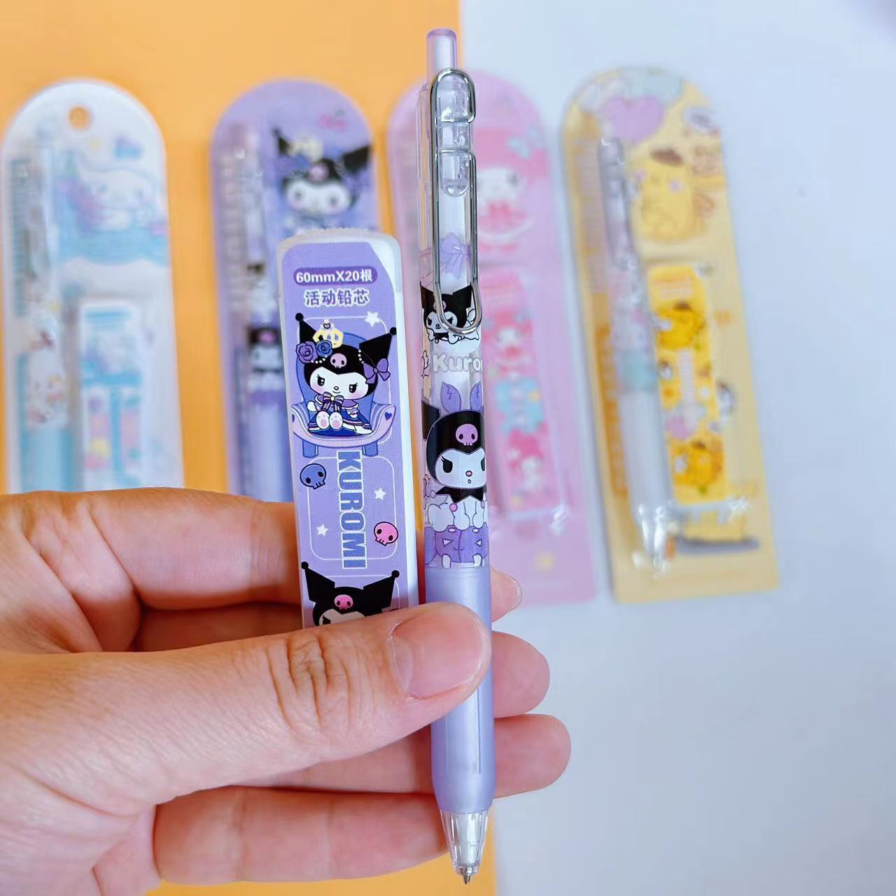 귀여운 애완동물 자동 연필 세트, 예쁜 쿠로미 연필, 에그맨 학생용 문구, 0.5mm 샤프심