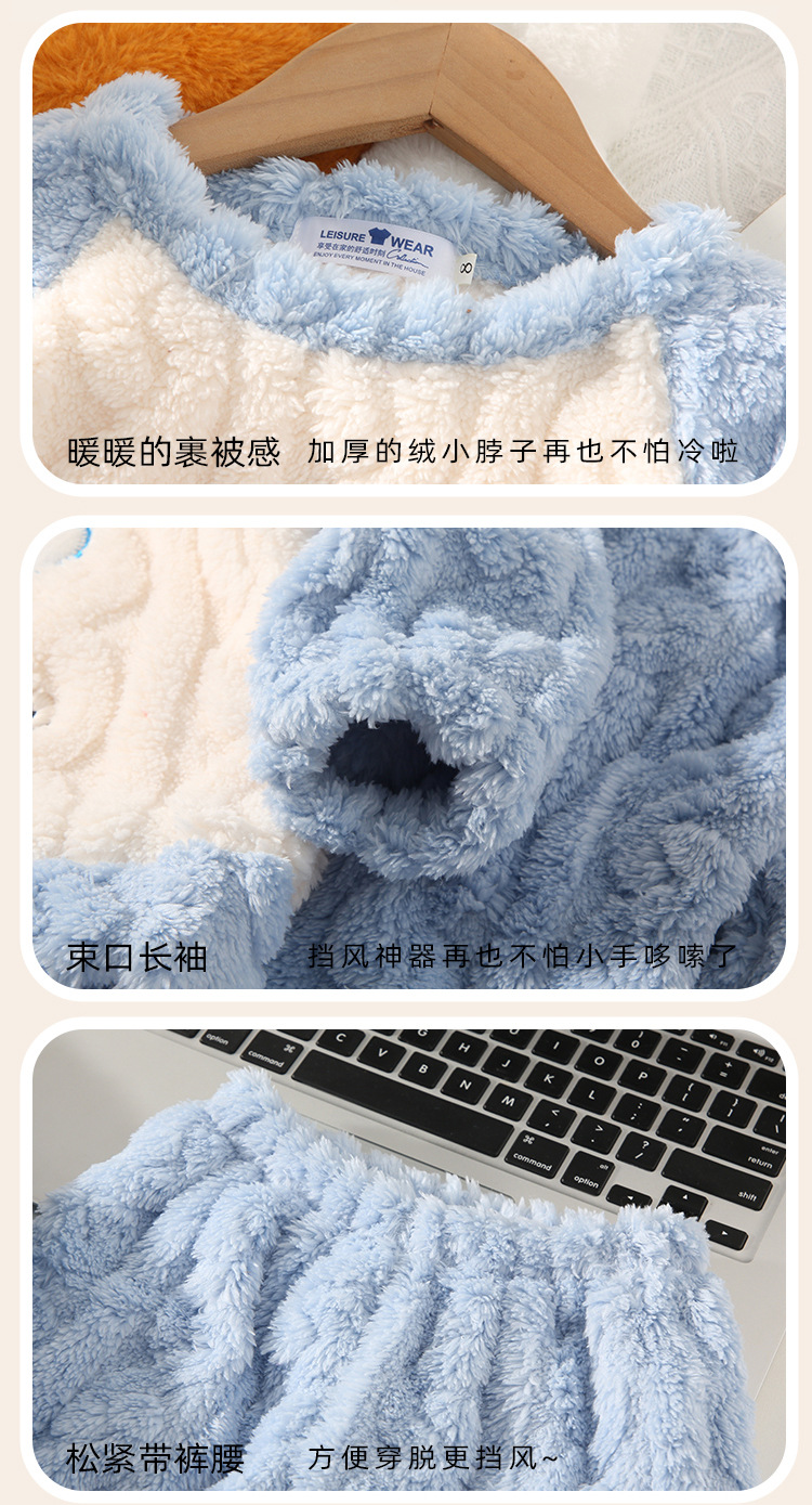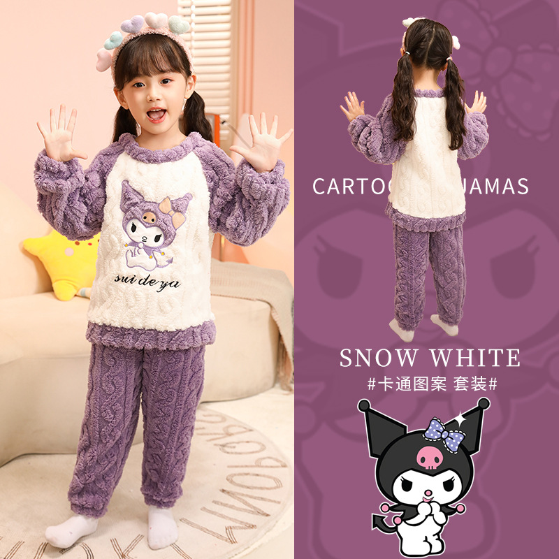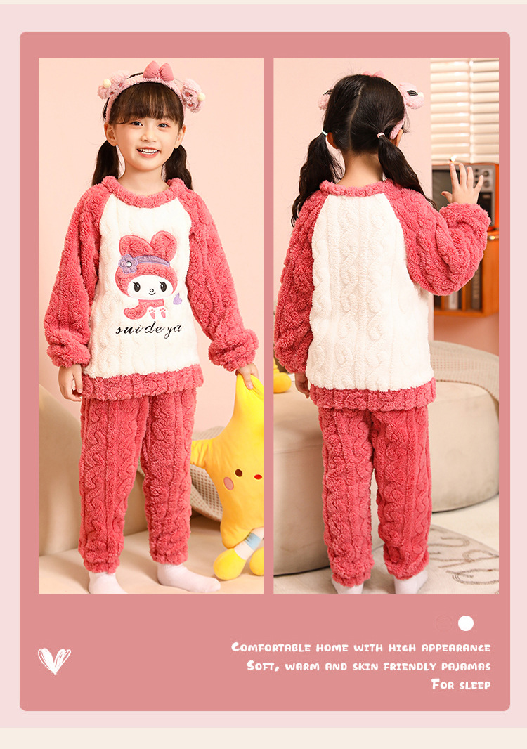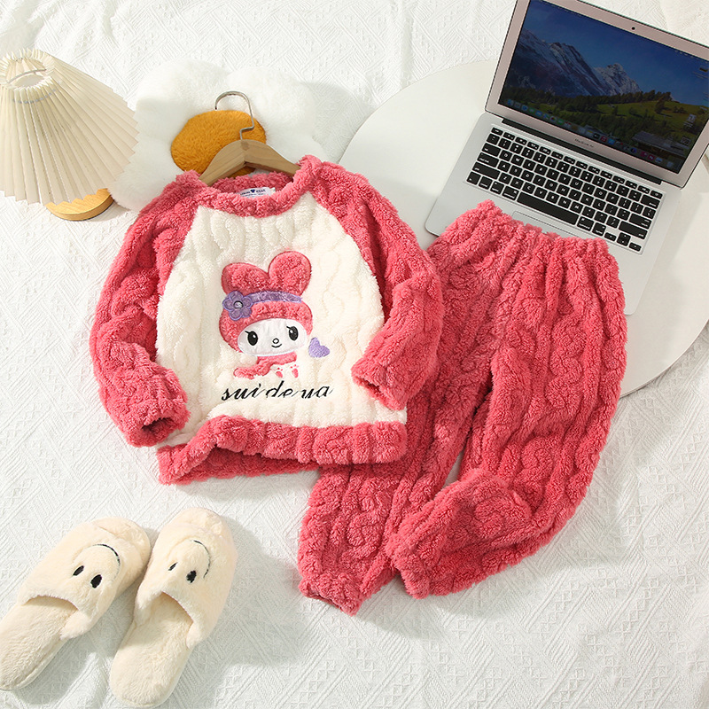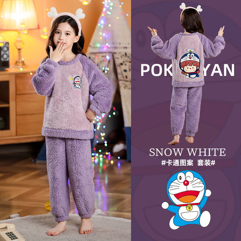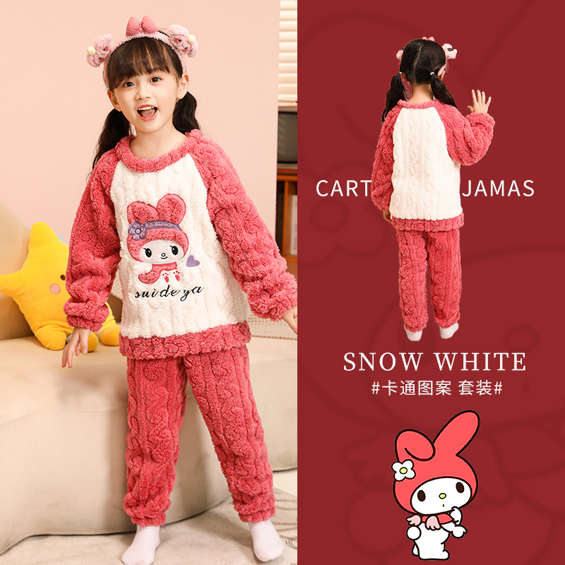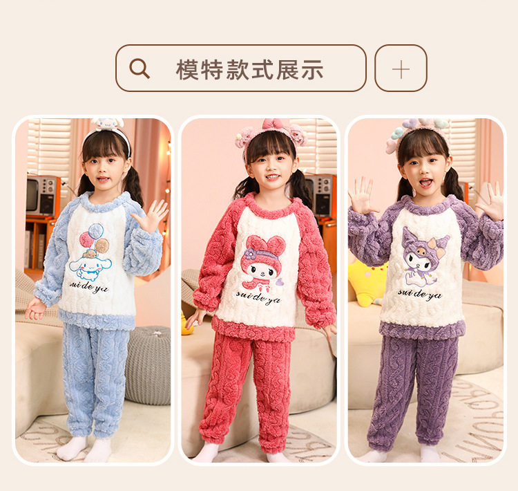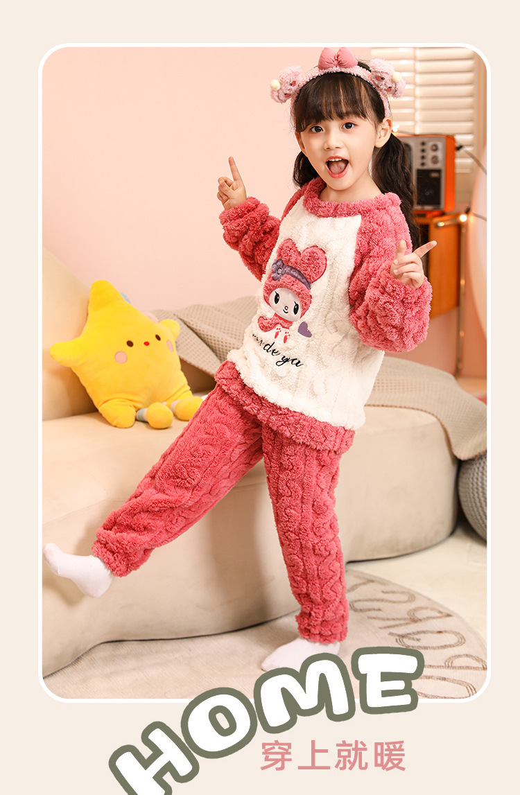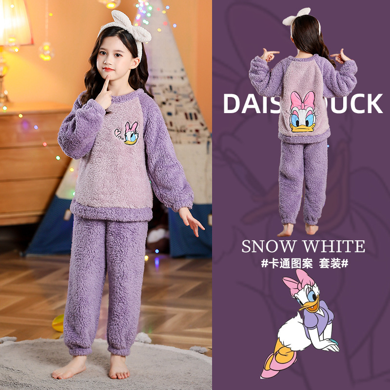 소녀 산호 양털 파자마 새 겨울 어린이 만화 플란넬 기모 두꺼운 중통 홈 의류 세트스토어 가기