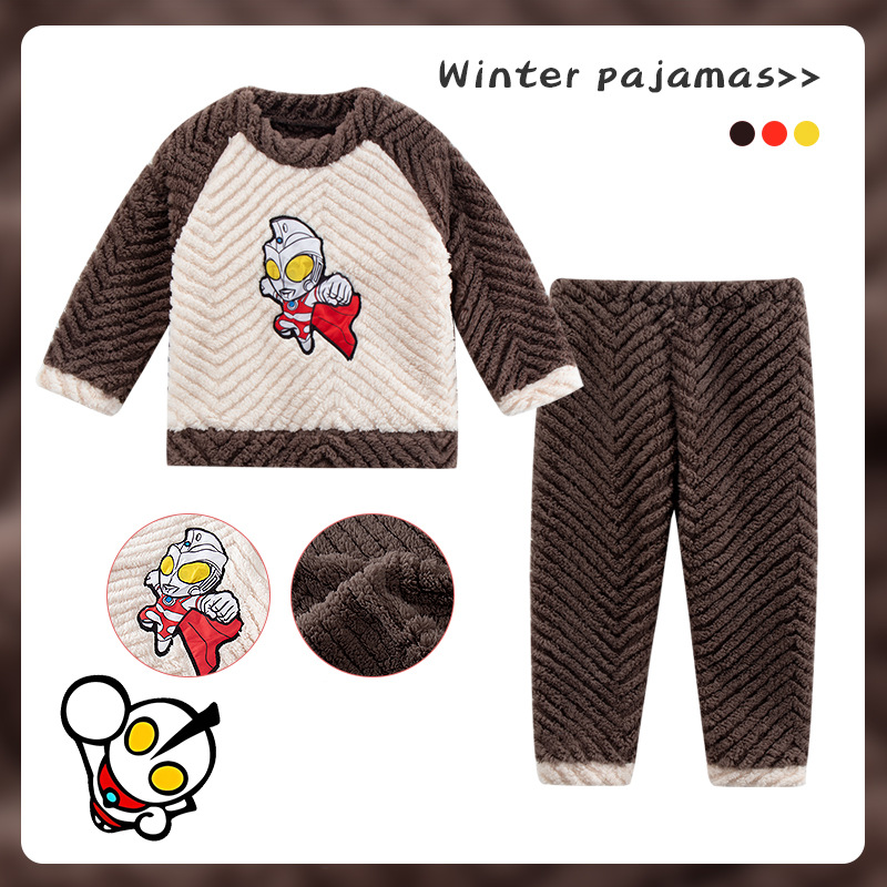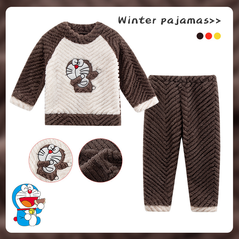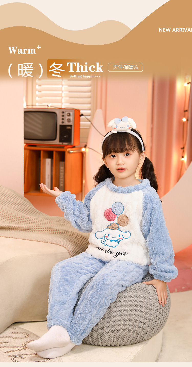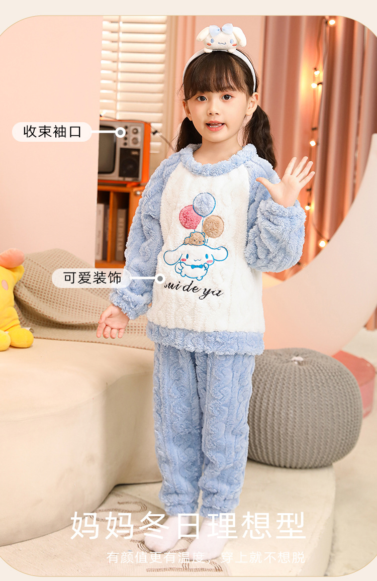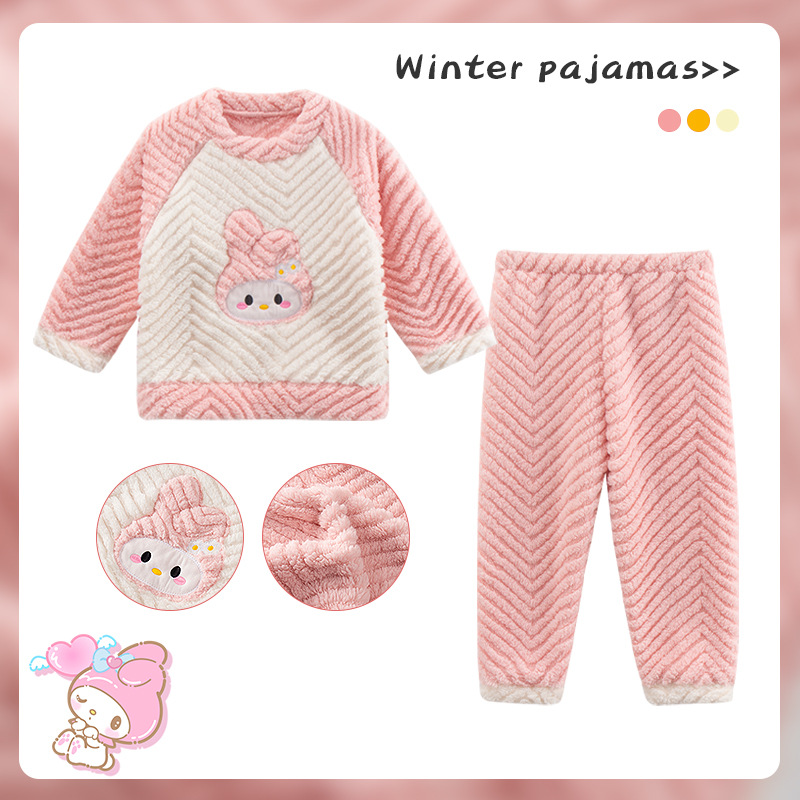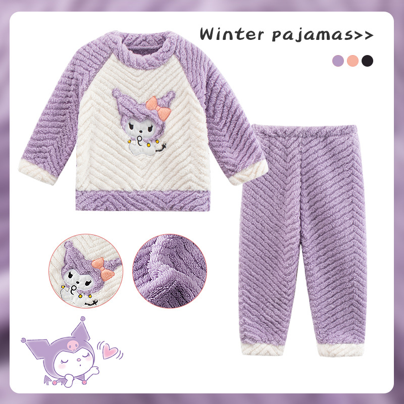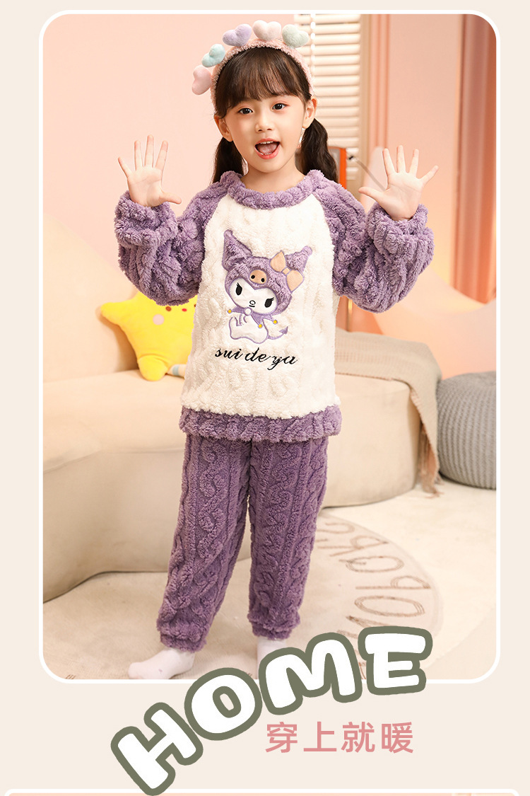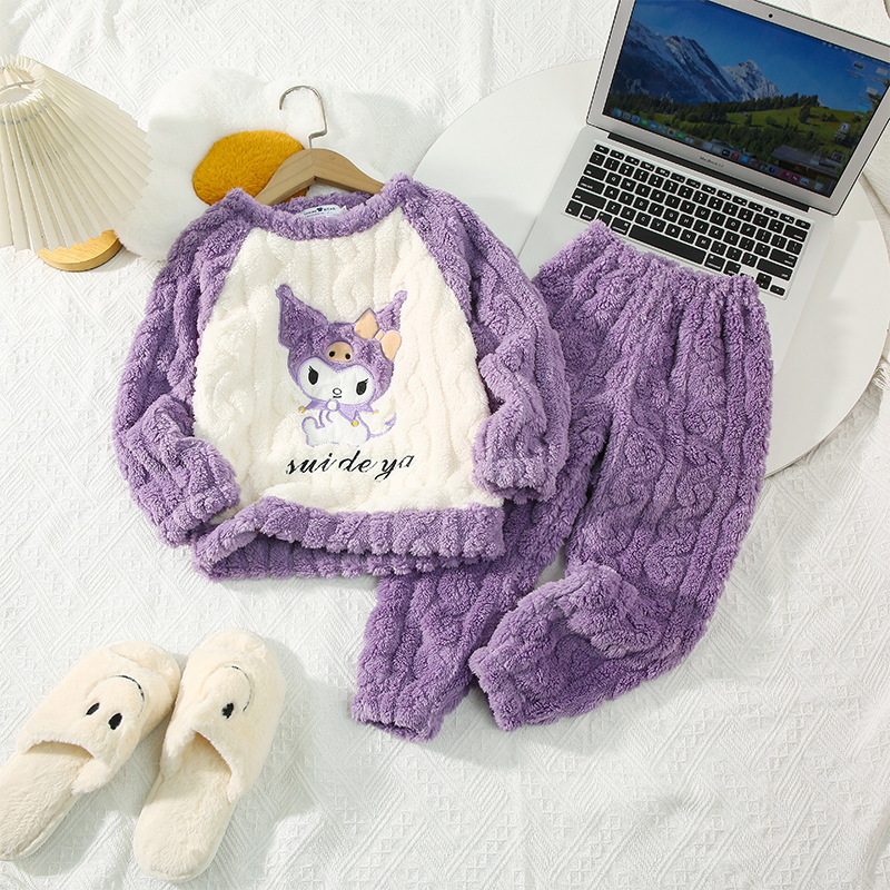 소녀 산호 양털 파자마 새 겨울 어린이 만화 플란넬 기모 두꺼운 중통 홈 의류 세트스토어 가기