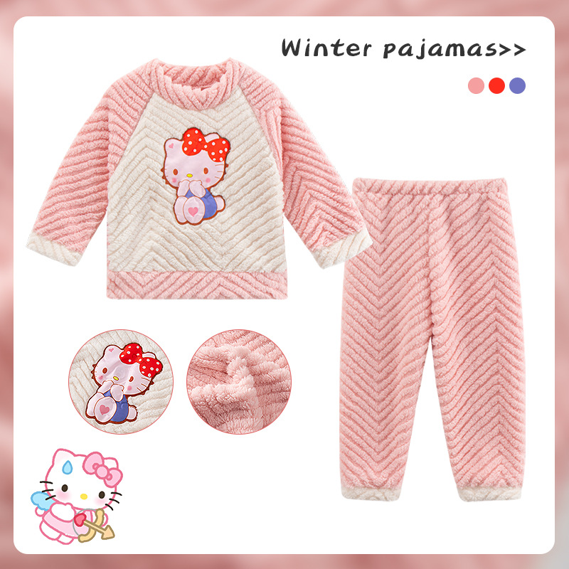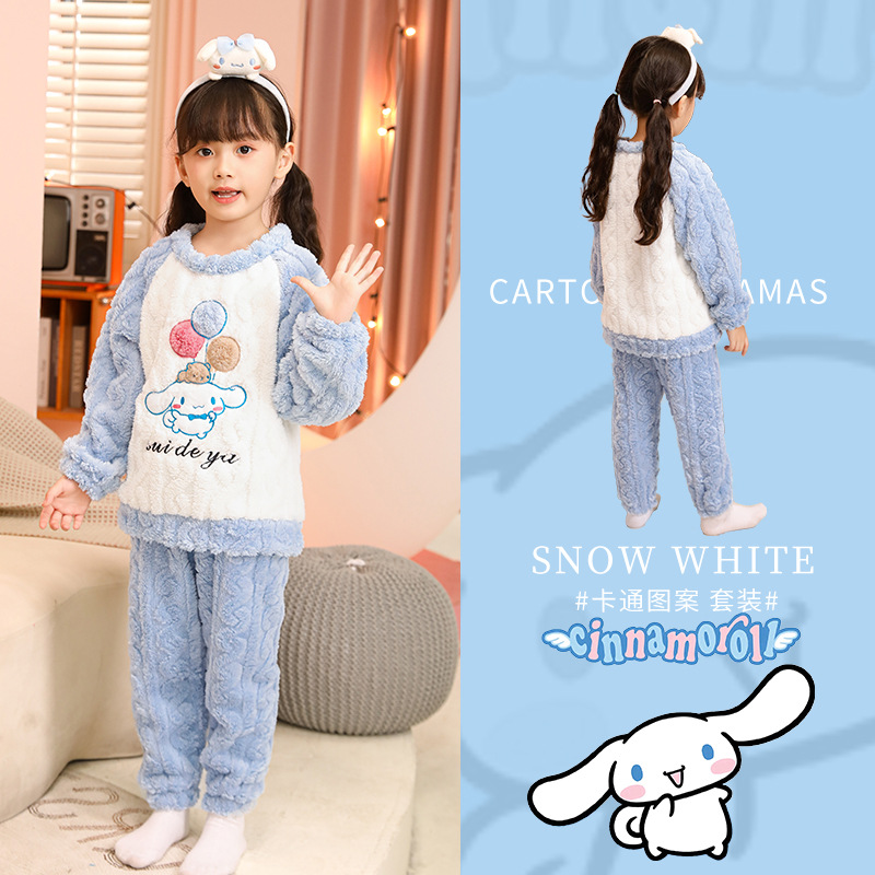 소녀 산호 양털 파자마 새 겨울 어린이 만화 플란넬 기모 두꺼운 중통 홈 의류 세트