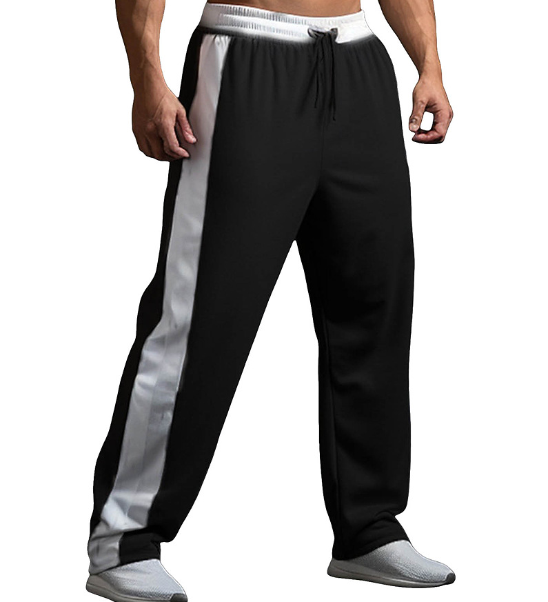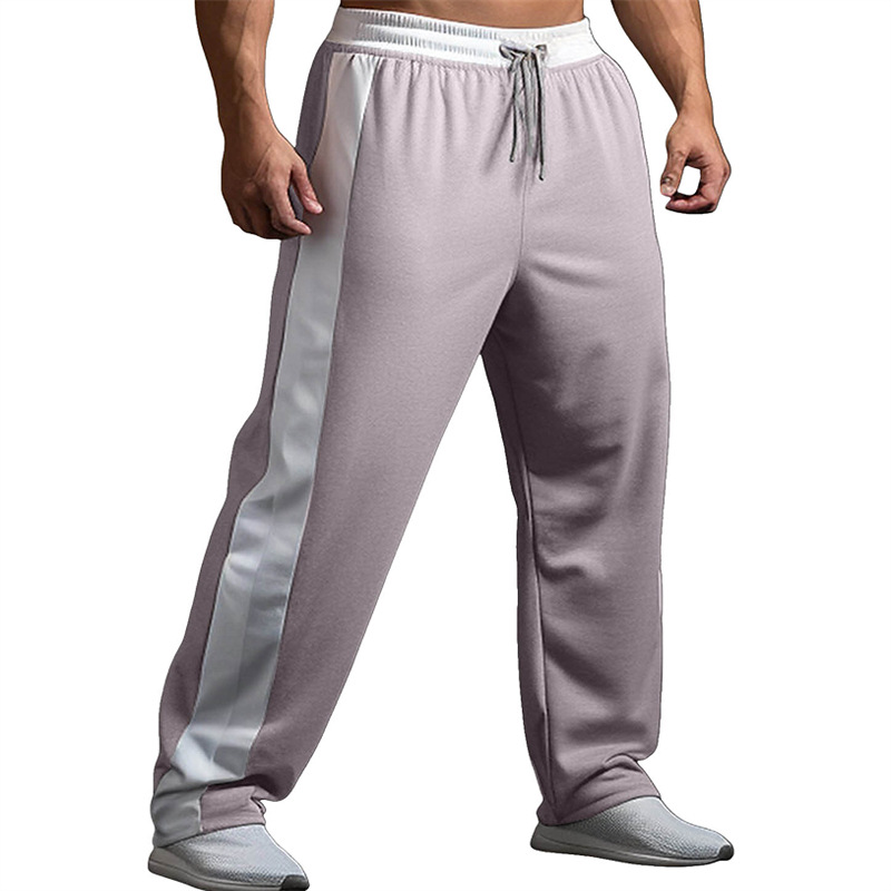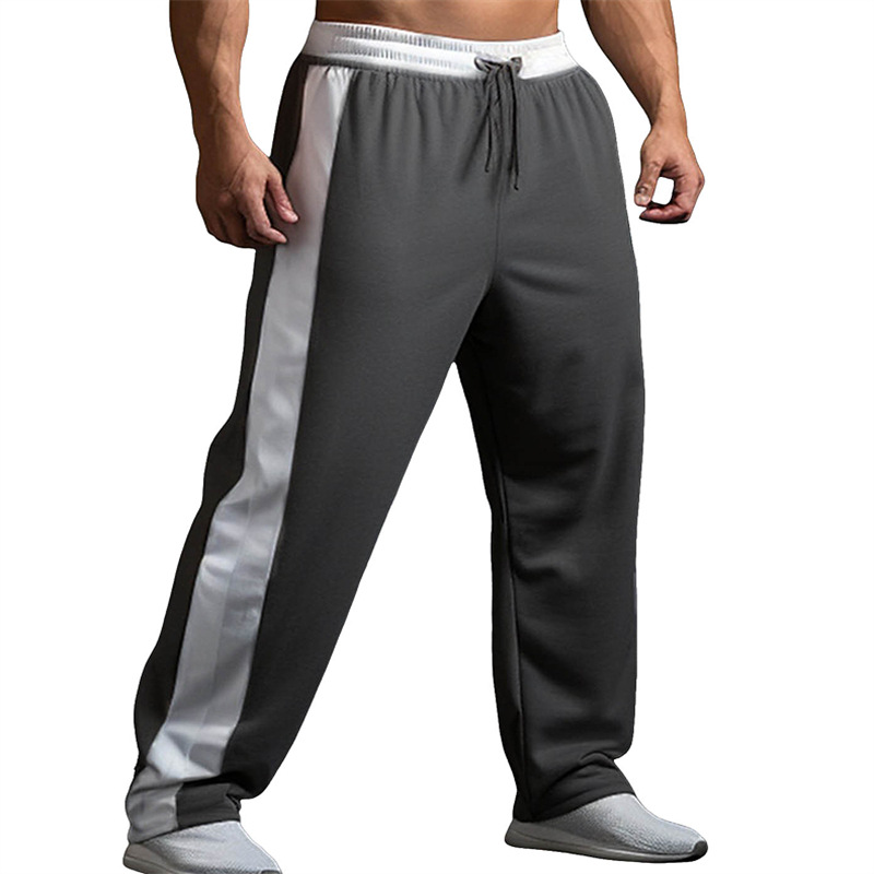 남자 스포츠 조깅 넓은 다리 드로 스트링 탄성 허리 컬러와 스트레이트 캐주얼 바지