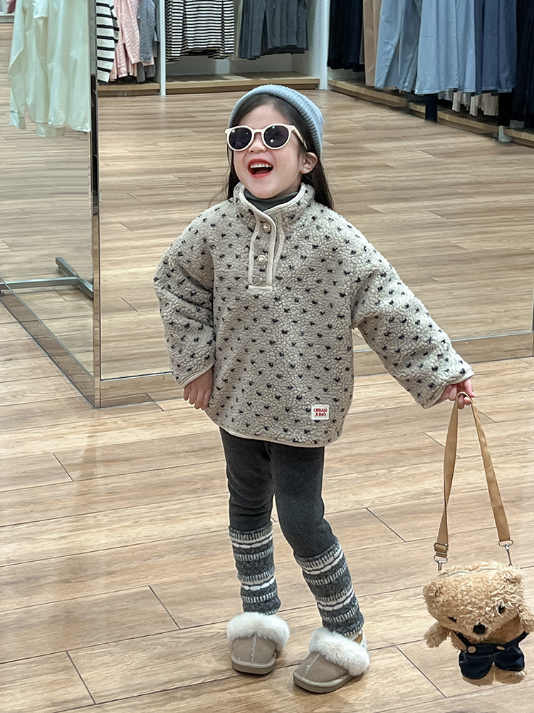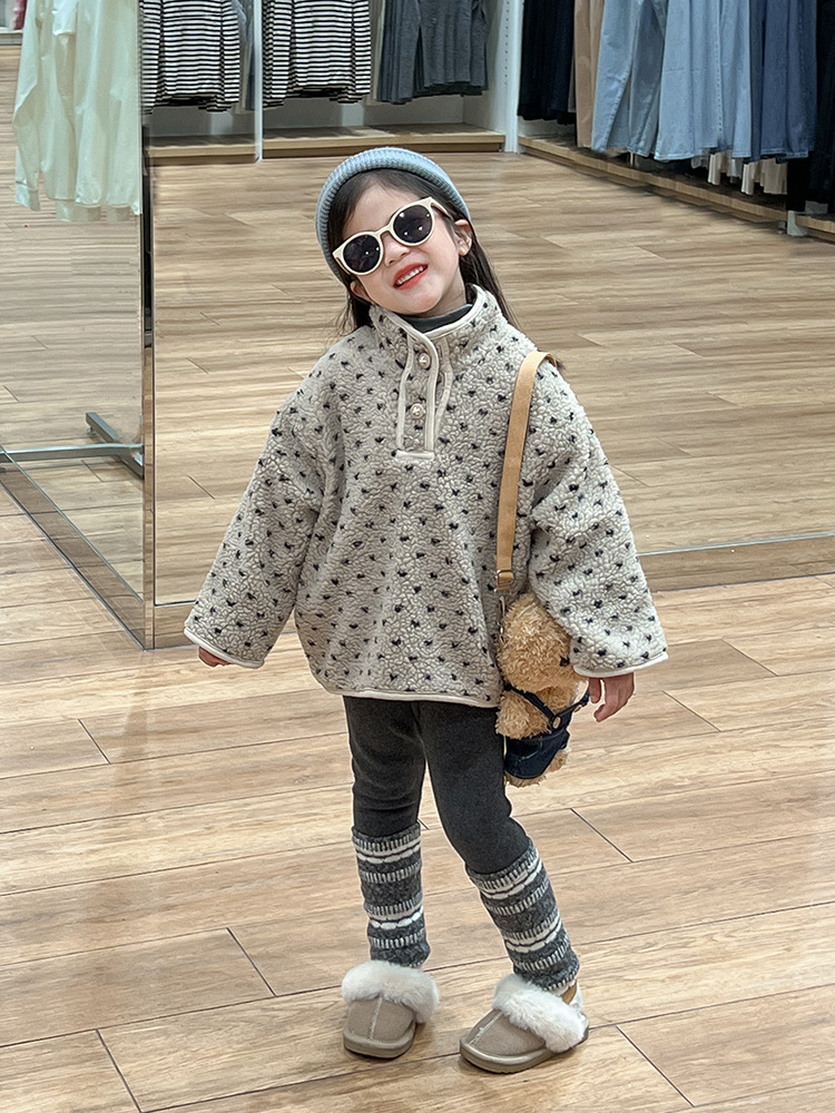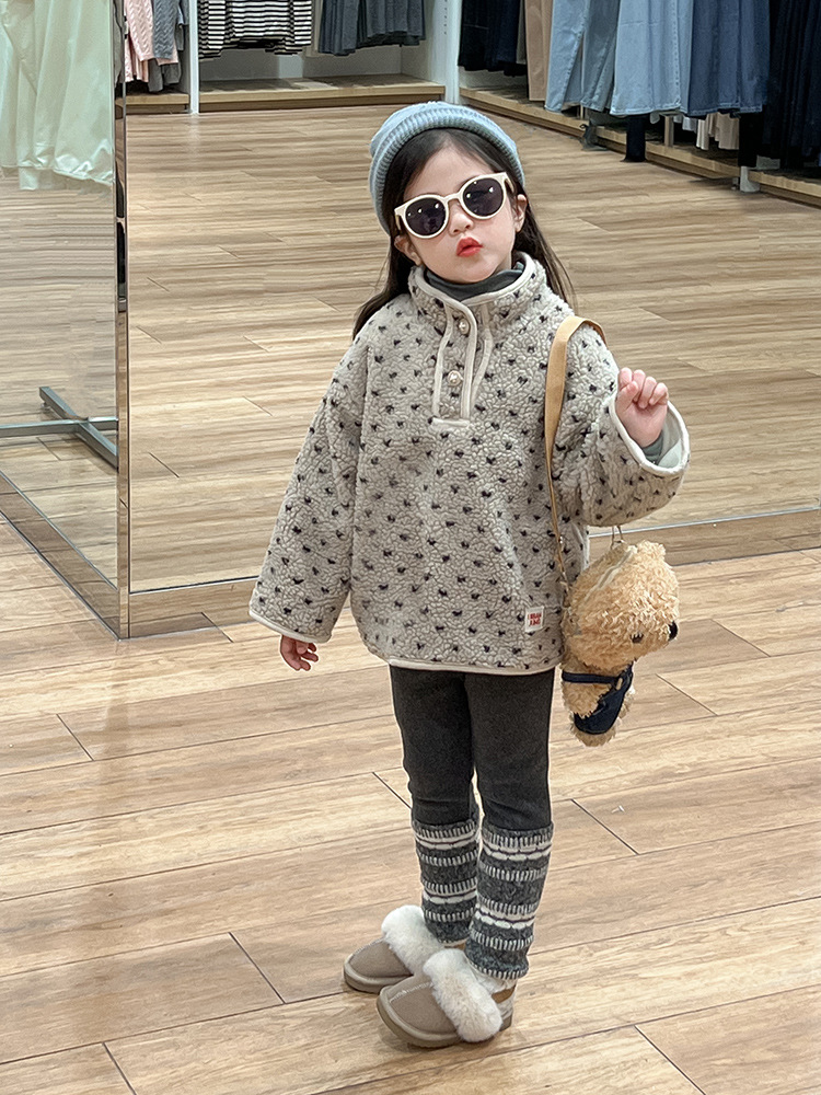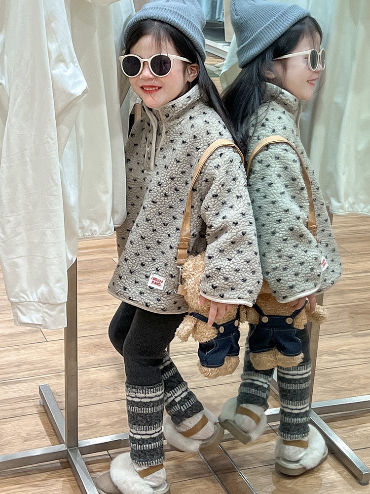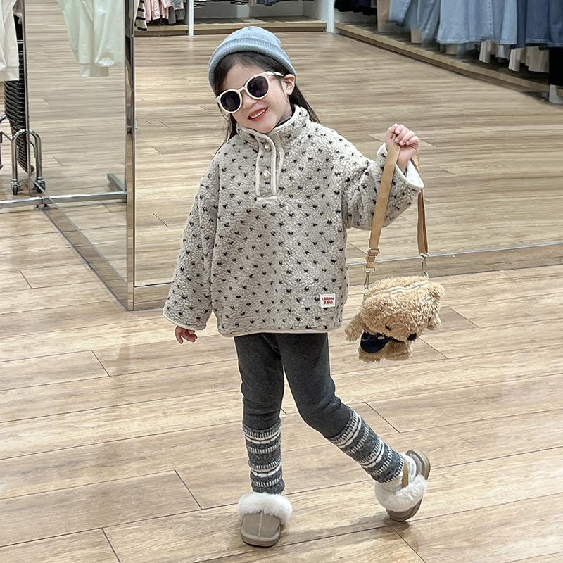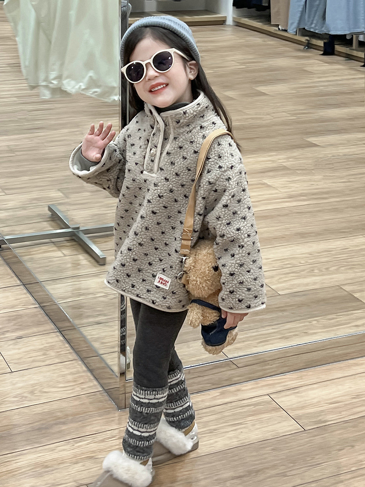 소녀 2024 가을 겨울 의류 양고기 양털 웨이브 도트 기모 스웨터 얇은 양털 바지 셔츠 바느질 기모 레깅스 세트스토어 가기
