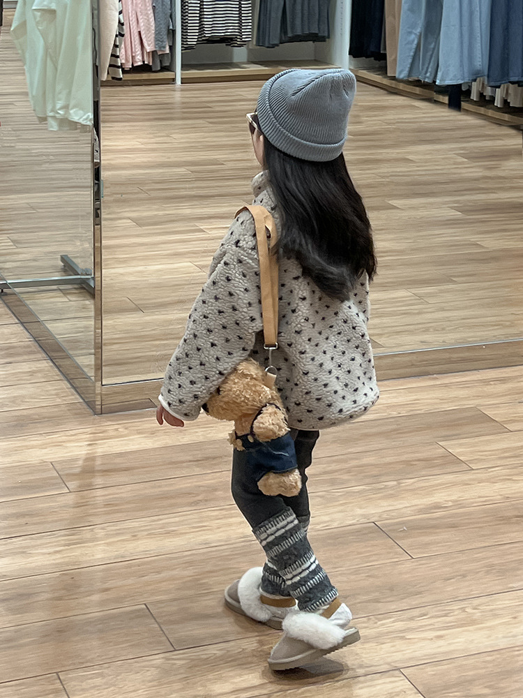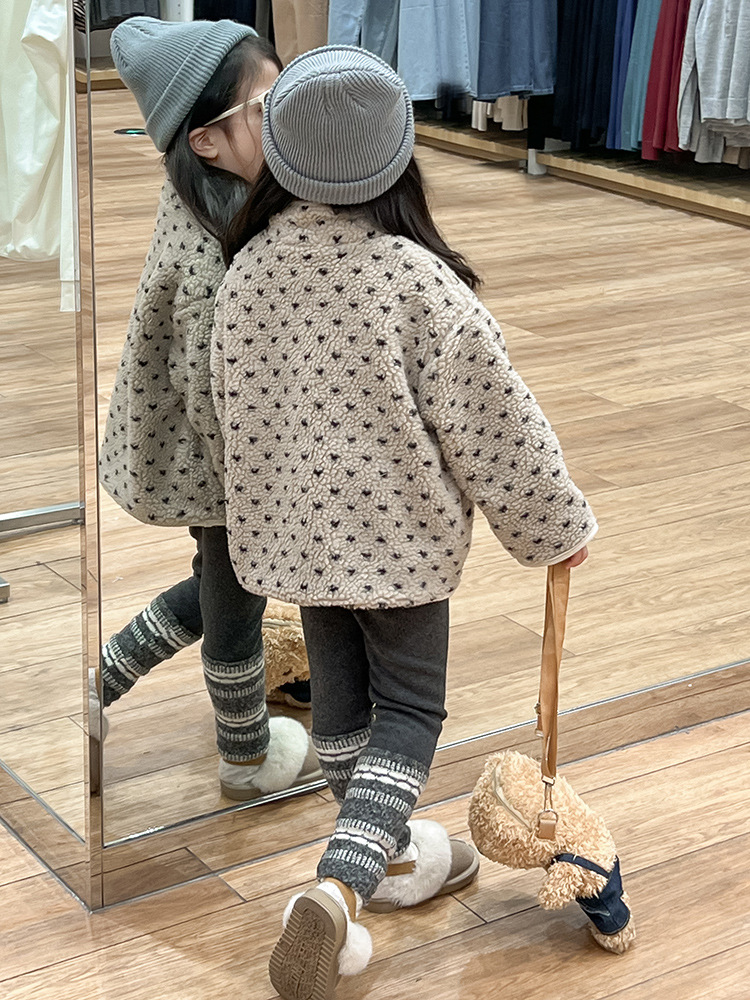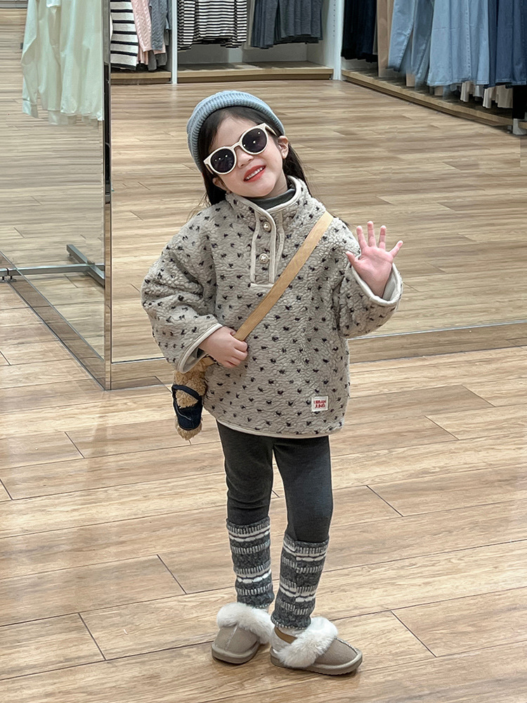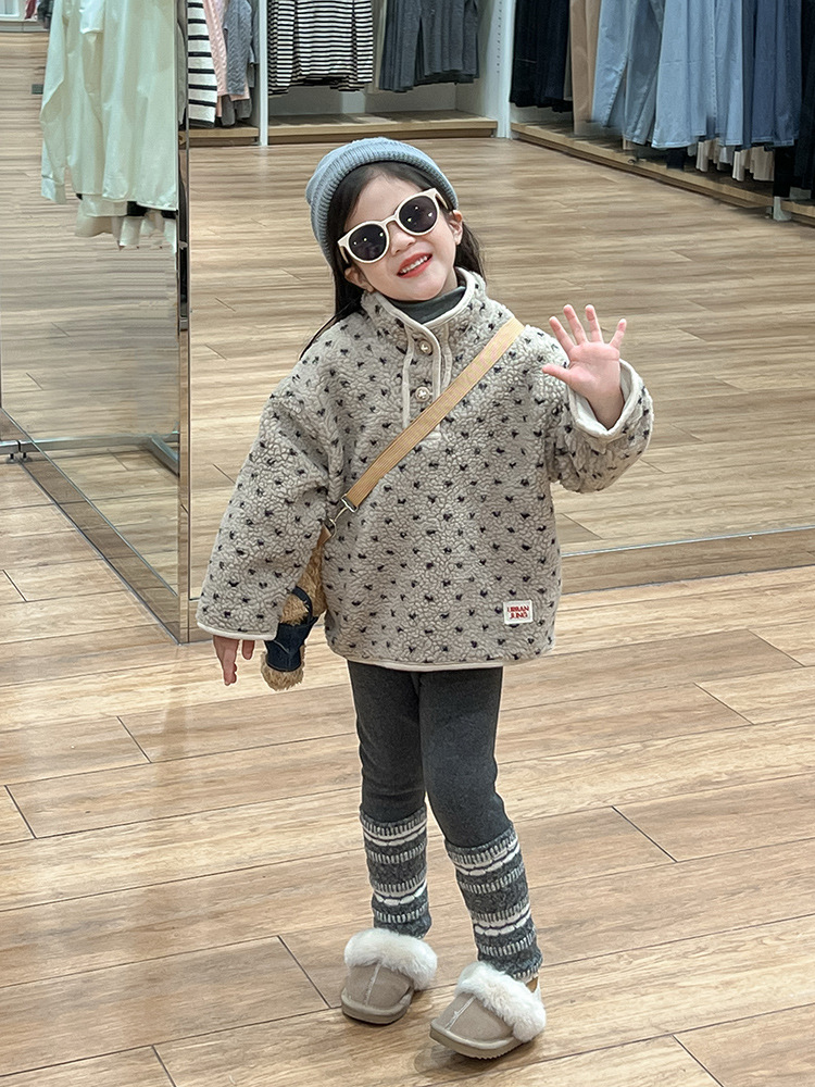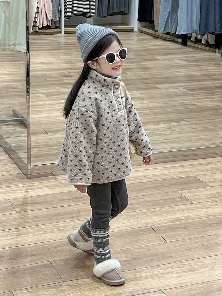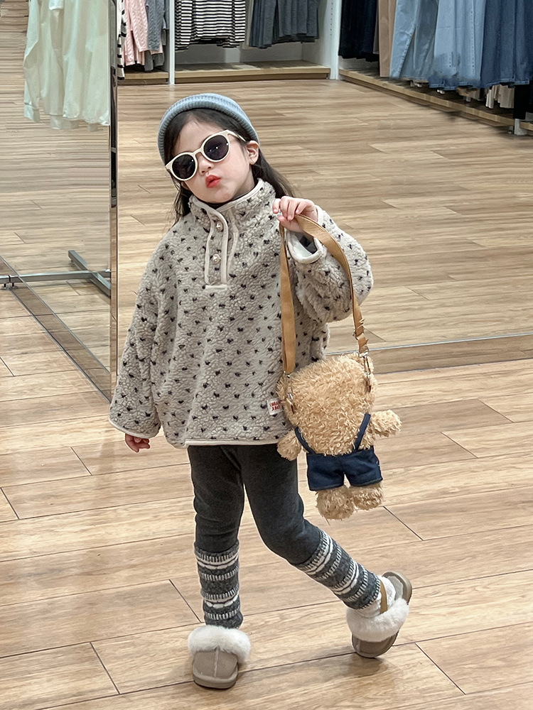 소녀 2024 가을 겨울 의류 양고기 양털 웨이브 도트 기모 스웨터 얇은 양털 바지 셔츠 바느질 기모 레깅스 세트스토어 가기