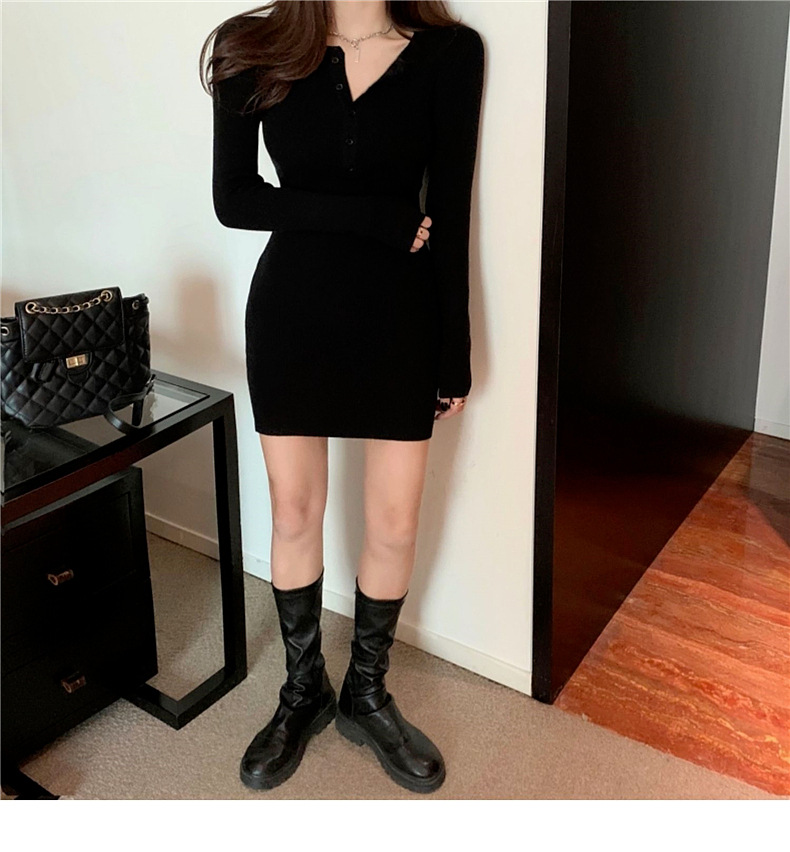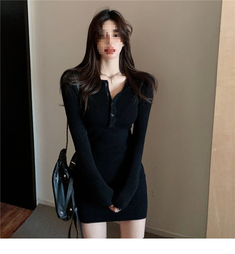 국경 도매 가을과 겨울 섹시한 단단한 피부-편안한 벨벳 슬림 긴 소매 원피스 여성용 허리 짧은 스트레치 엉덩이 치마스토어 가기