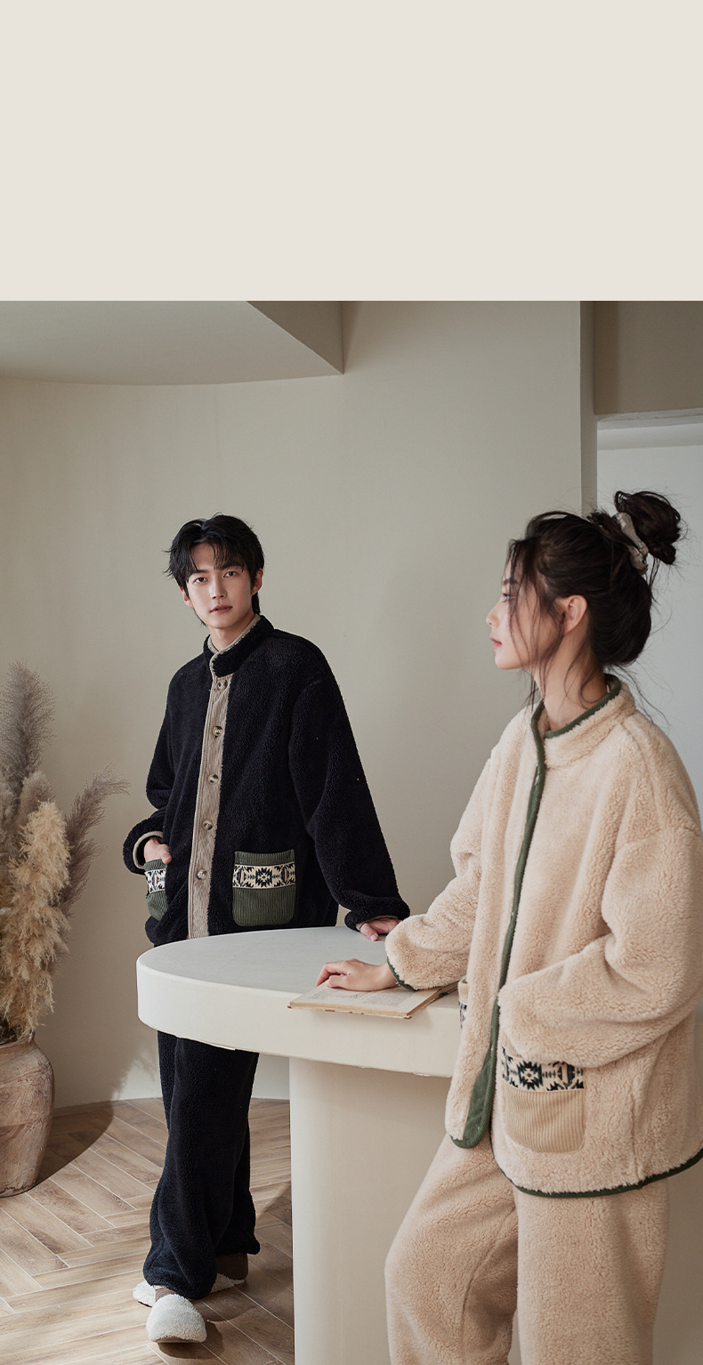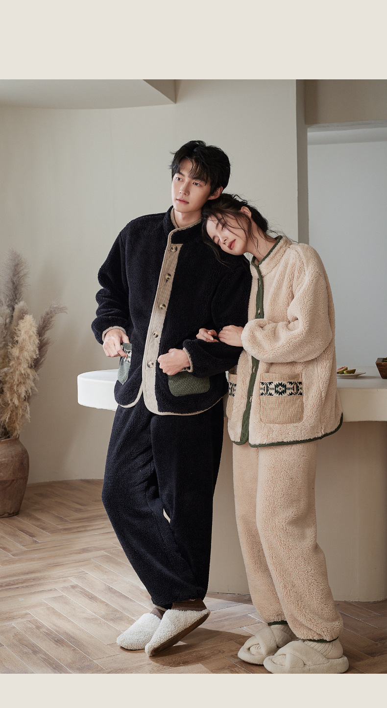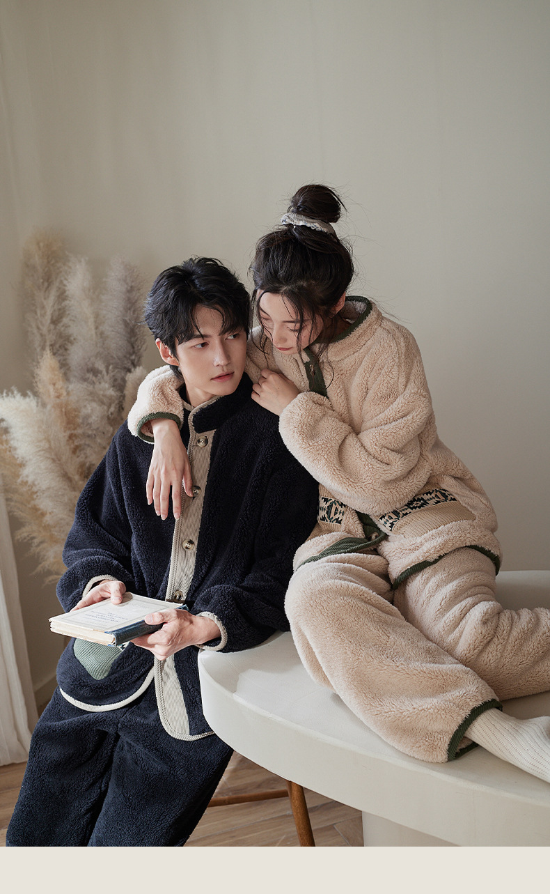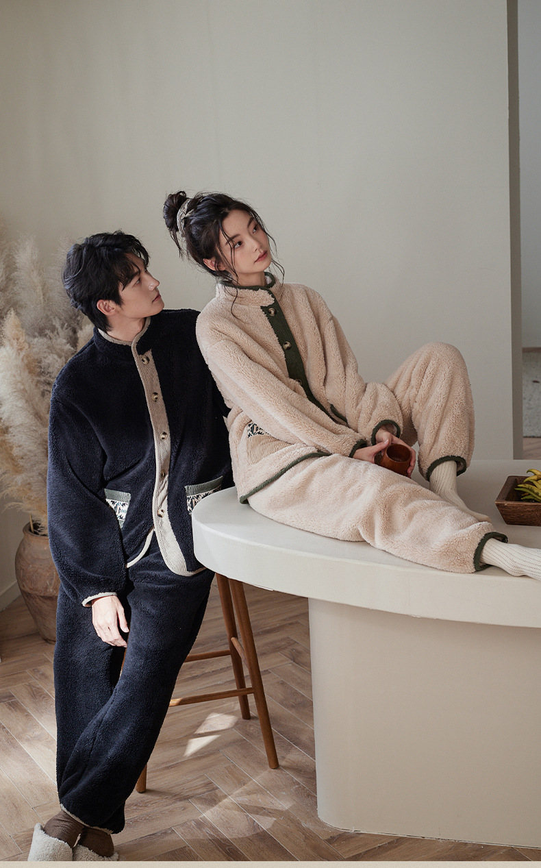 겨울 커플 잠옷 산호 양털 기모 따뜻한 플란넬 남성 홈 의류 여성 세트 입고 두꺼운 캐주얼 외부스토어 가기