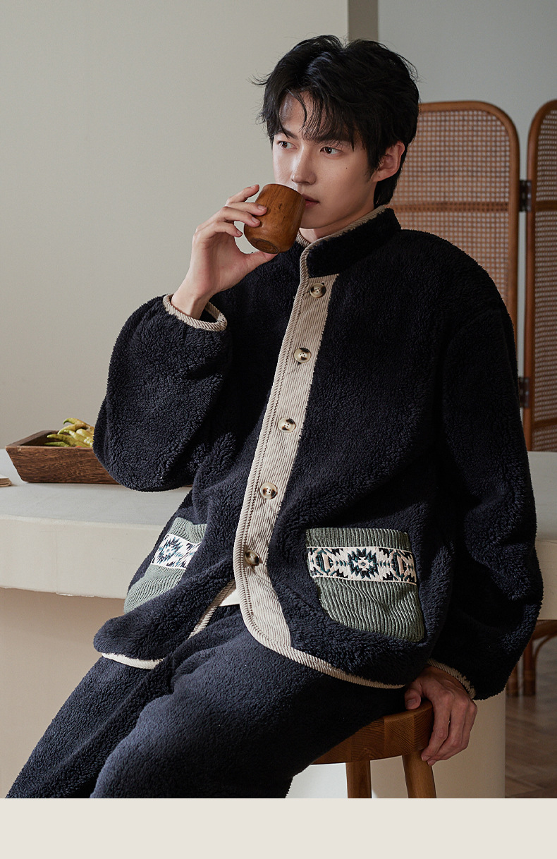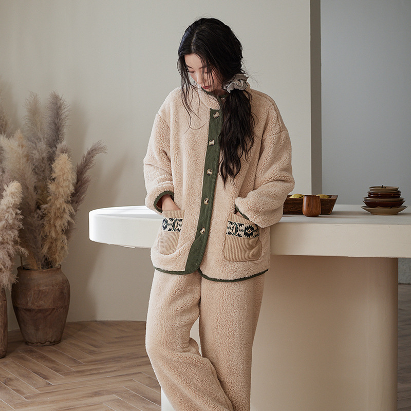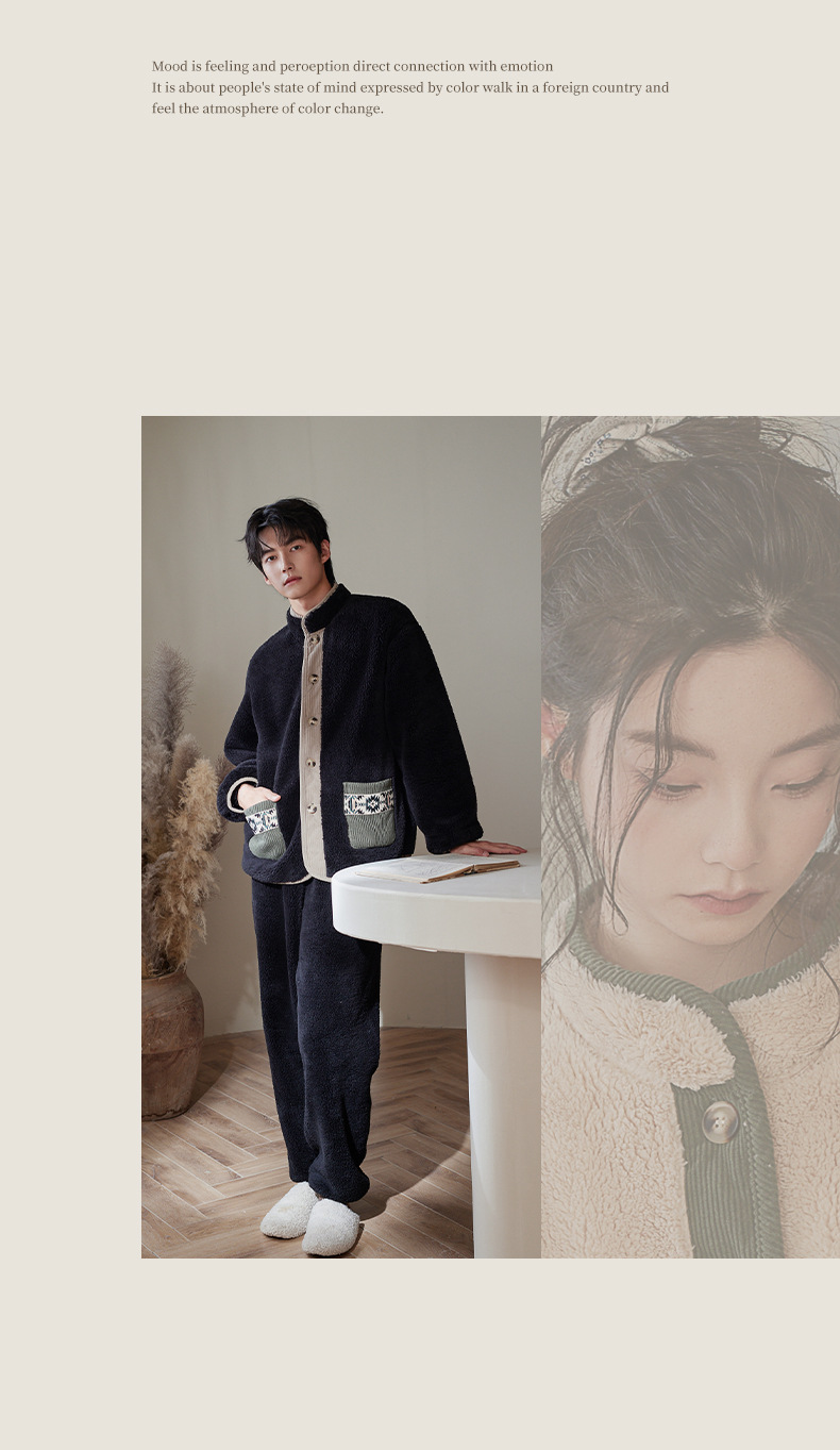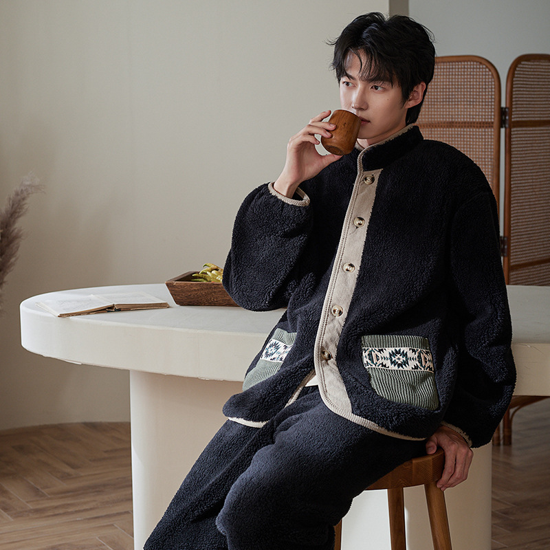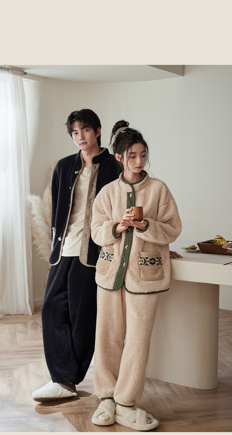 겨울 커플 잠옷 산호 양털 기모 따뜻한 플란넬 남성 홈 의류 여성 세트 입고 두꺼운 캐주얼 외부스토어 가기