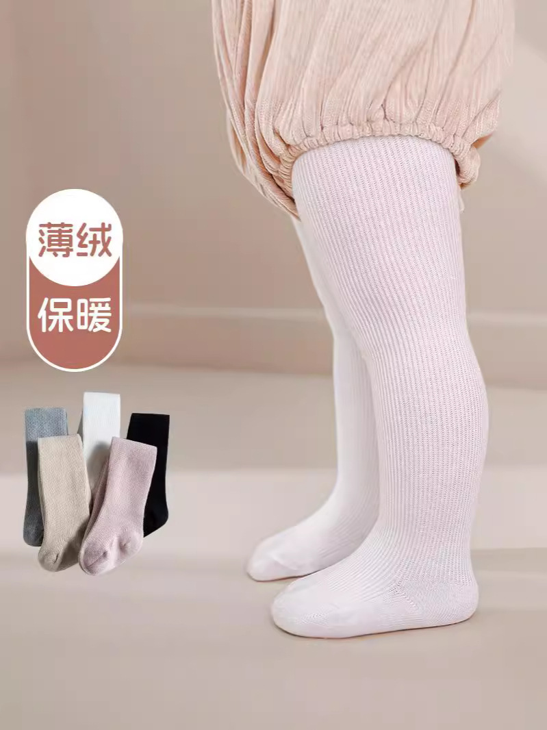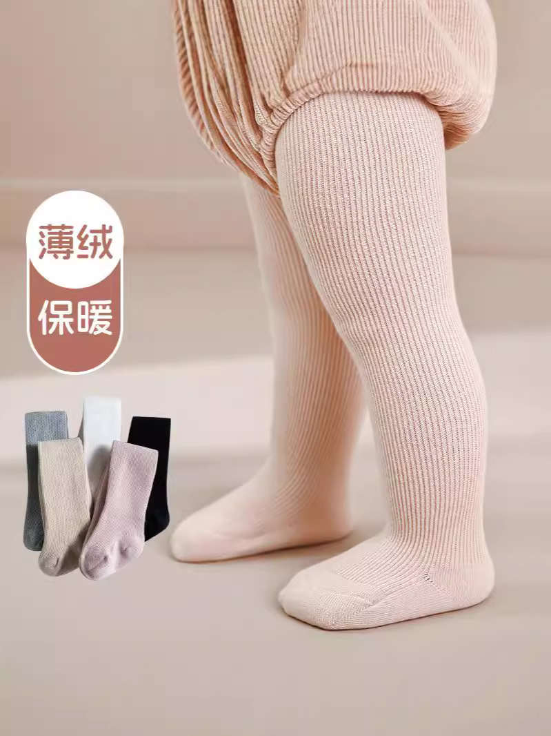 24 가을과 겨울 기모 아기 팬티 스타킹 소녀 팬티 스타킹 어린이 얇은 벨벳 바닥 양말 핀스트라이프 단색 팬티 스타킹