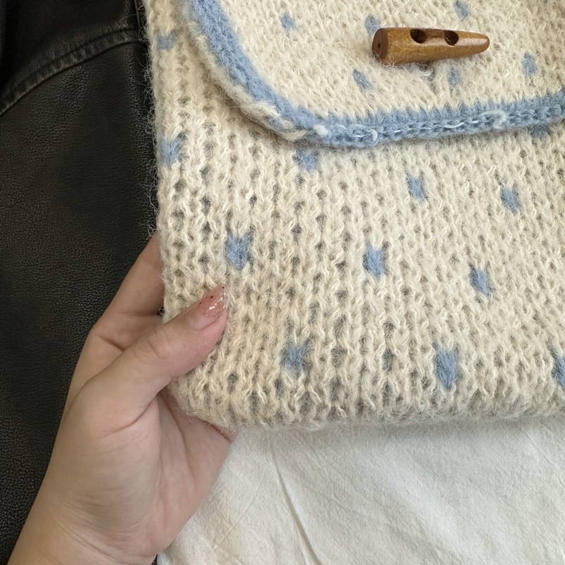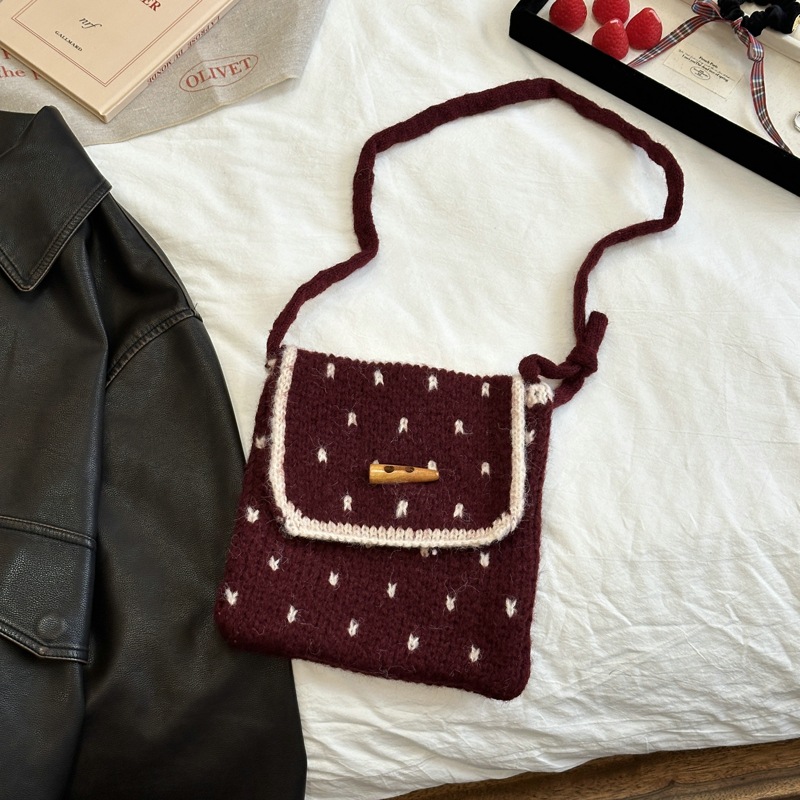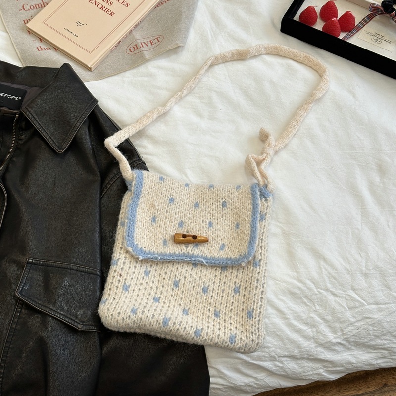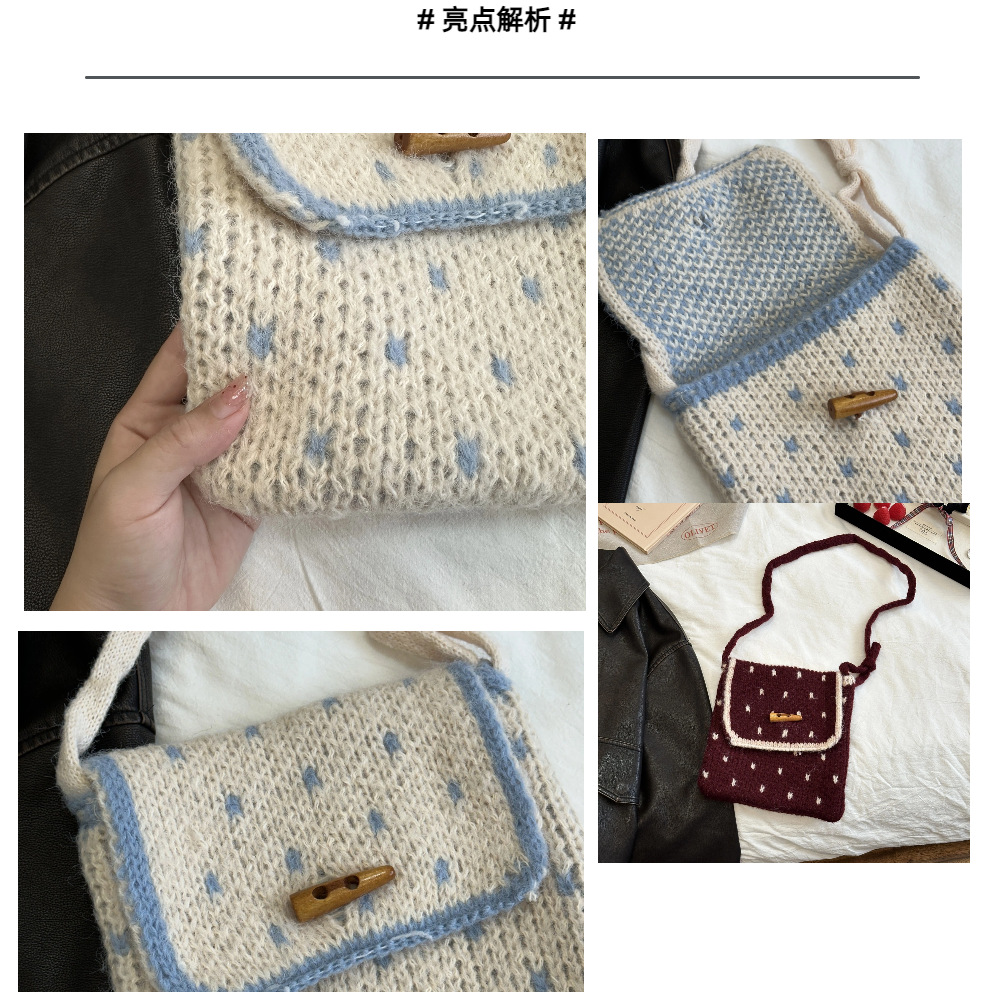 2024 가을과 겨울 빈티지 향기로운 스타일 버클 니트 작은 가방 여성용 어깨 크로스 바디 가방 모든 매치 핸들 휴대 전화 가방