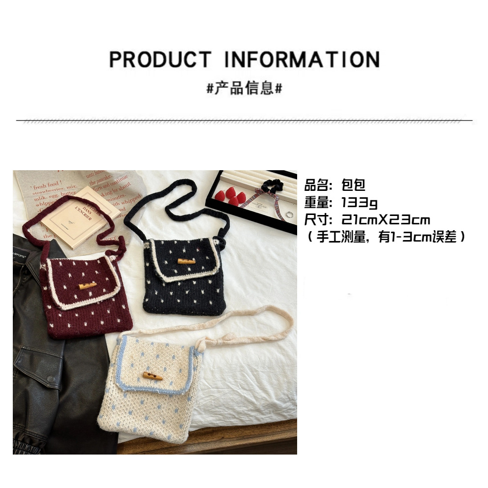 2024 가을과 겨울 빈티지 향기로운 스타일 버클 니트 작은 가방 여성용 어깨 크로스 바디 가방 모든 매치 핸들 휴대 전화 가방스토어 가기