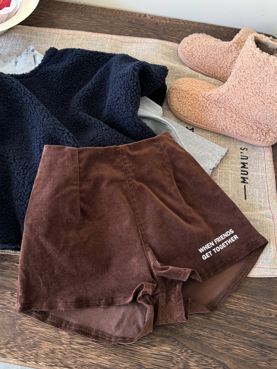 유유 공주 스웨이드 반바지 여자 가을 겨울 한국 단색 편지 캐주얼 바지 어린이 높은 허리 반바지스토어 가기