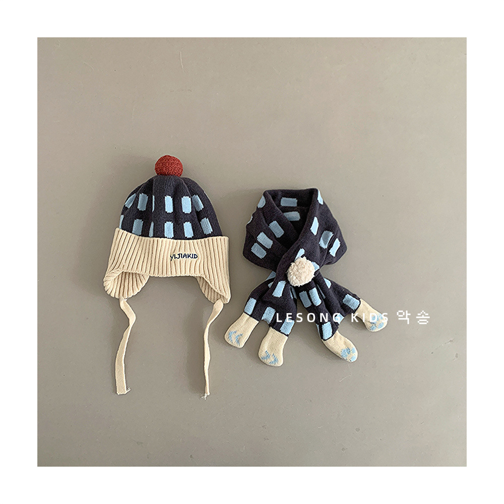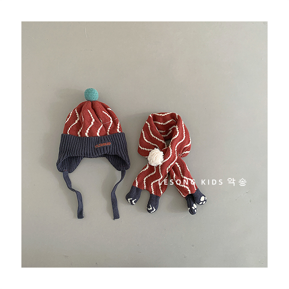 어린이 모자와 스카프 두 조각 겨울 소년과 소녀 한국 스타일 귀여운 공 올매치 두꺼운 따뜻한 아기 양모 모자스토어 가기