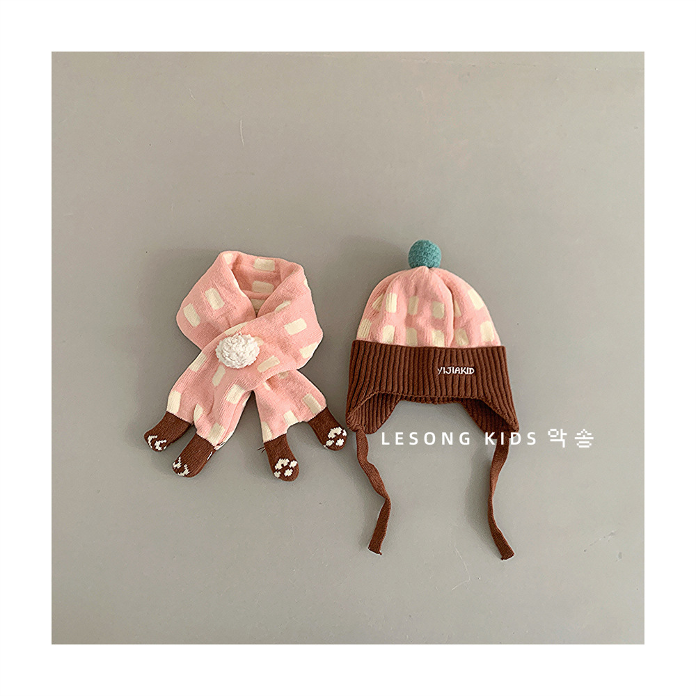 어린이 모자와 스카프 두 조각 겨울 소년과 소녀 한국 스타일 귀여운 공 올매치 두꺼운 따뜻한 아기 양모 모자