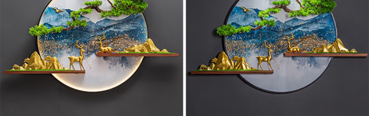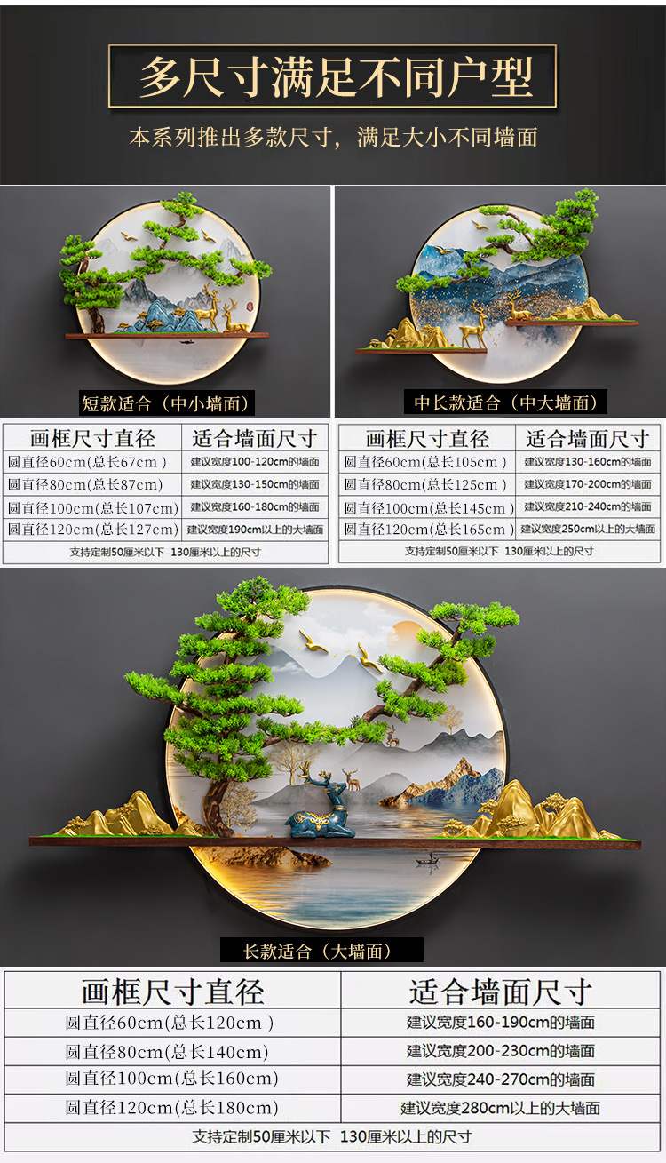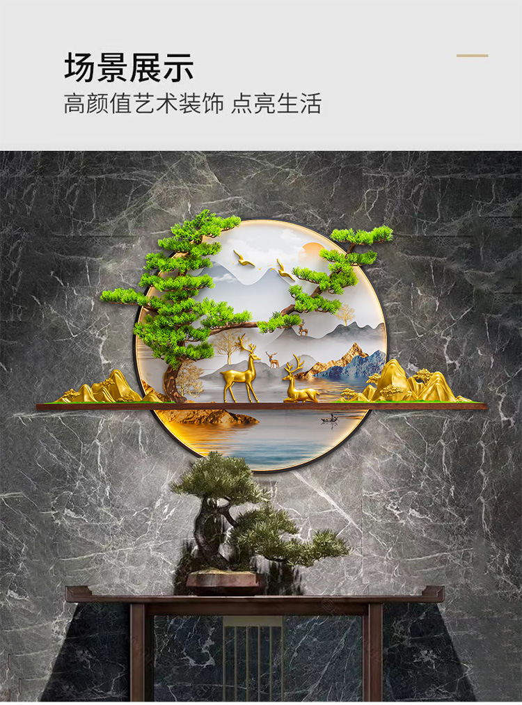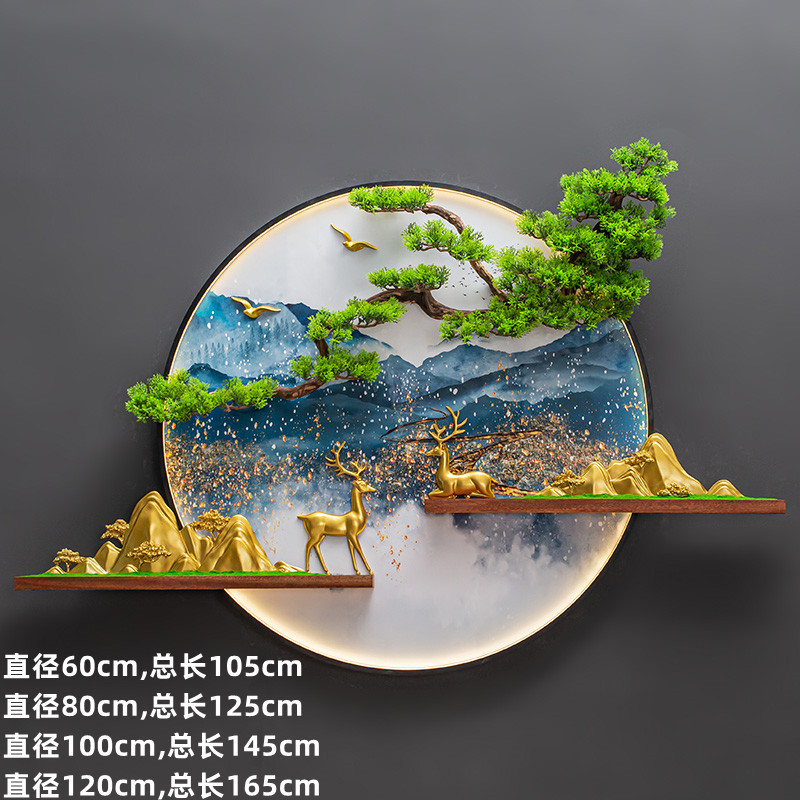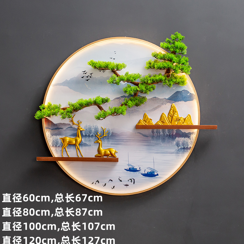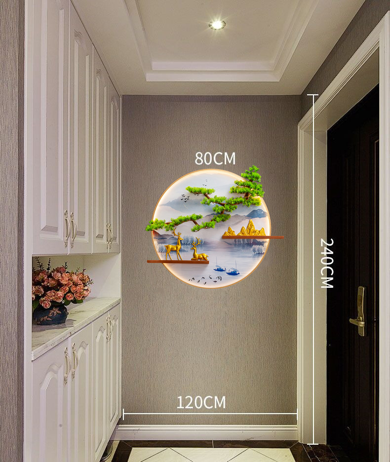 새로운 중국 스타일 입구 3D 입체 환영 소나무 크리스탈 도자기 그림 창조적 인 찻집 벽 빛나는 장식 그림 LED 빛