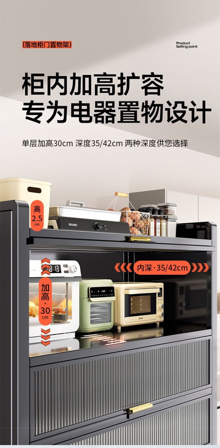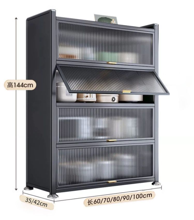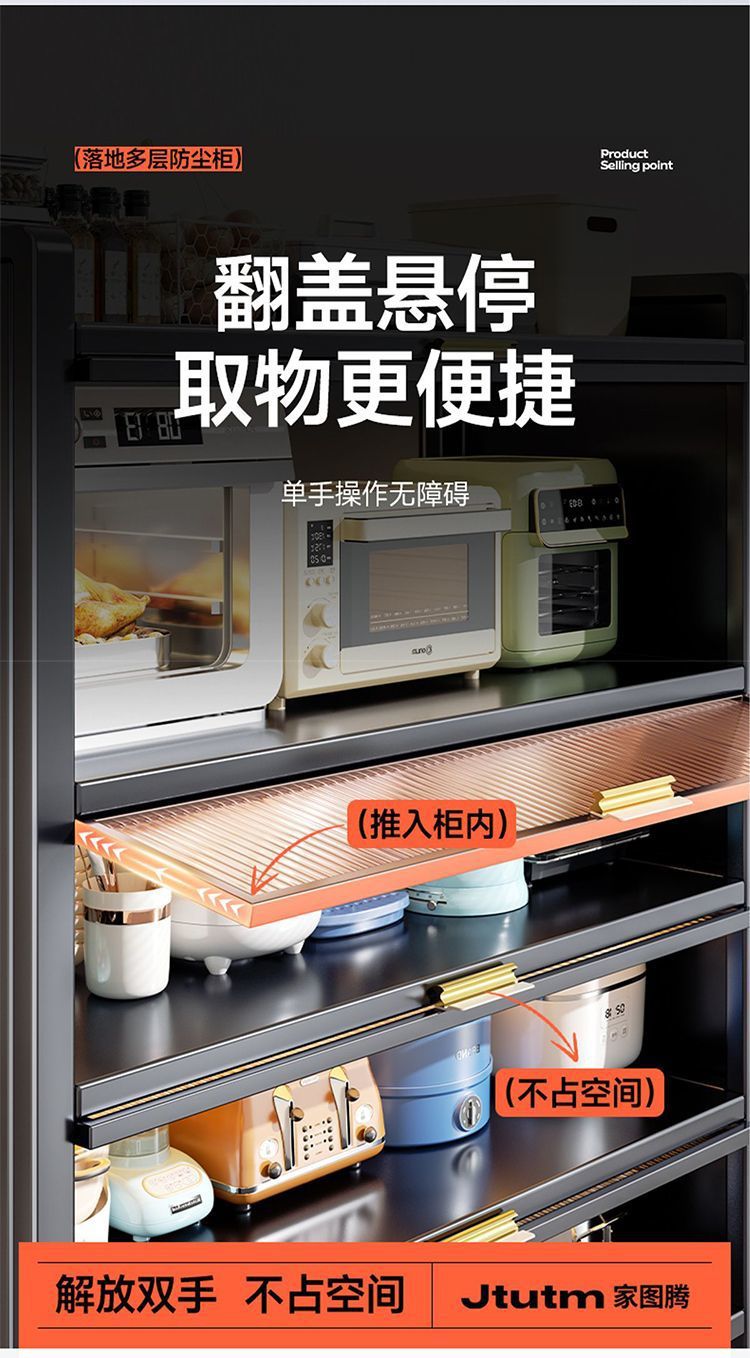 주방 보관 랙 방진 사이드 보드 대용량 저장 두꺼운 다층 다기능 전자 레인지 플립 업 캐비닛