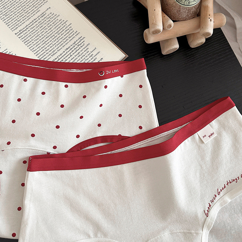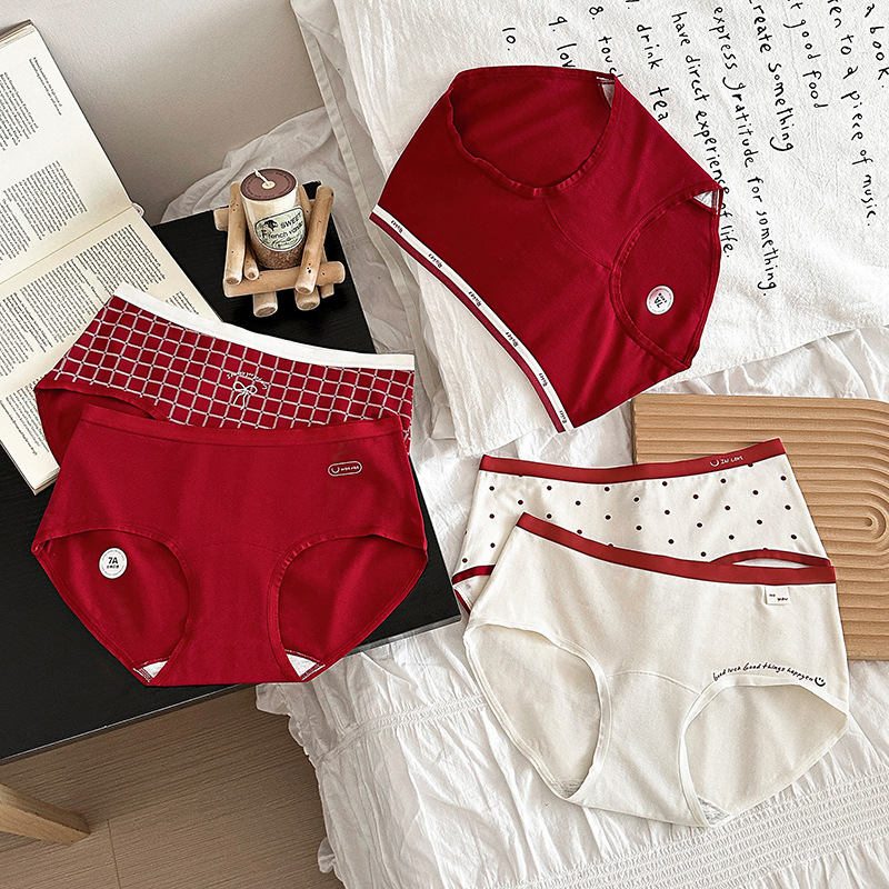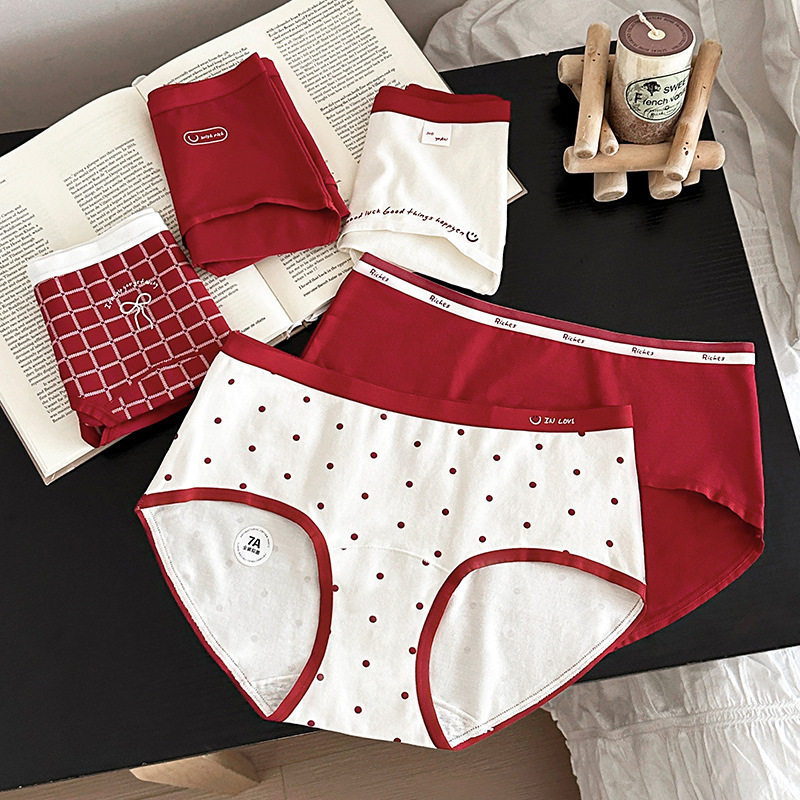 비용 효율적인 5235 # 특허받은 Good Luck Koi Red 속옷 여성의 미드 웨이스트 격자 무늬 면화 브리프스토어 가기