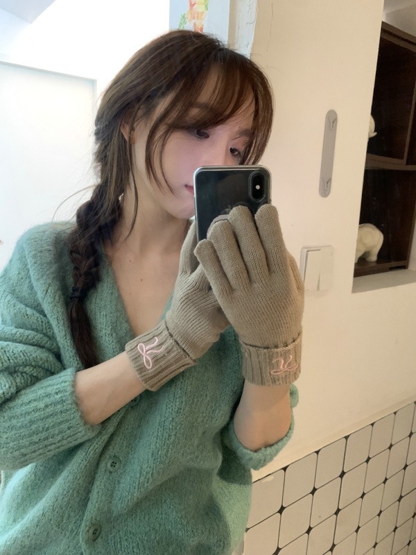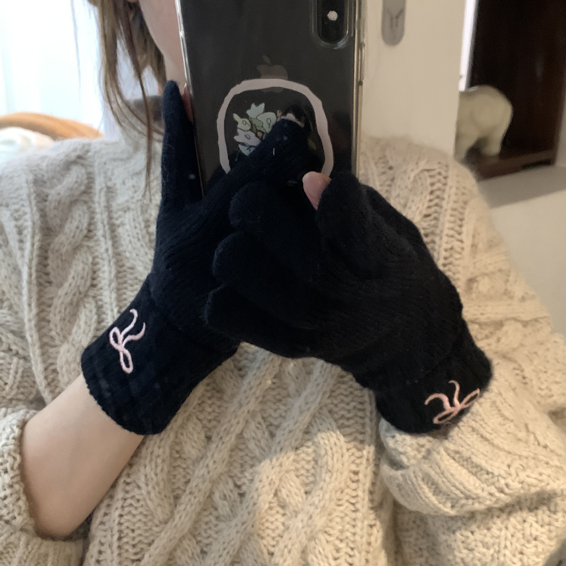 겨울 따뜻한 장갑, 여성용 리본 달린 달콤한 양모 장갑, 겨울 따뜻하고 동결 방지, 터치 스크린