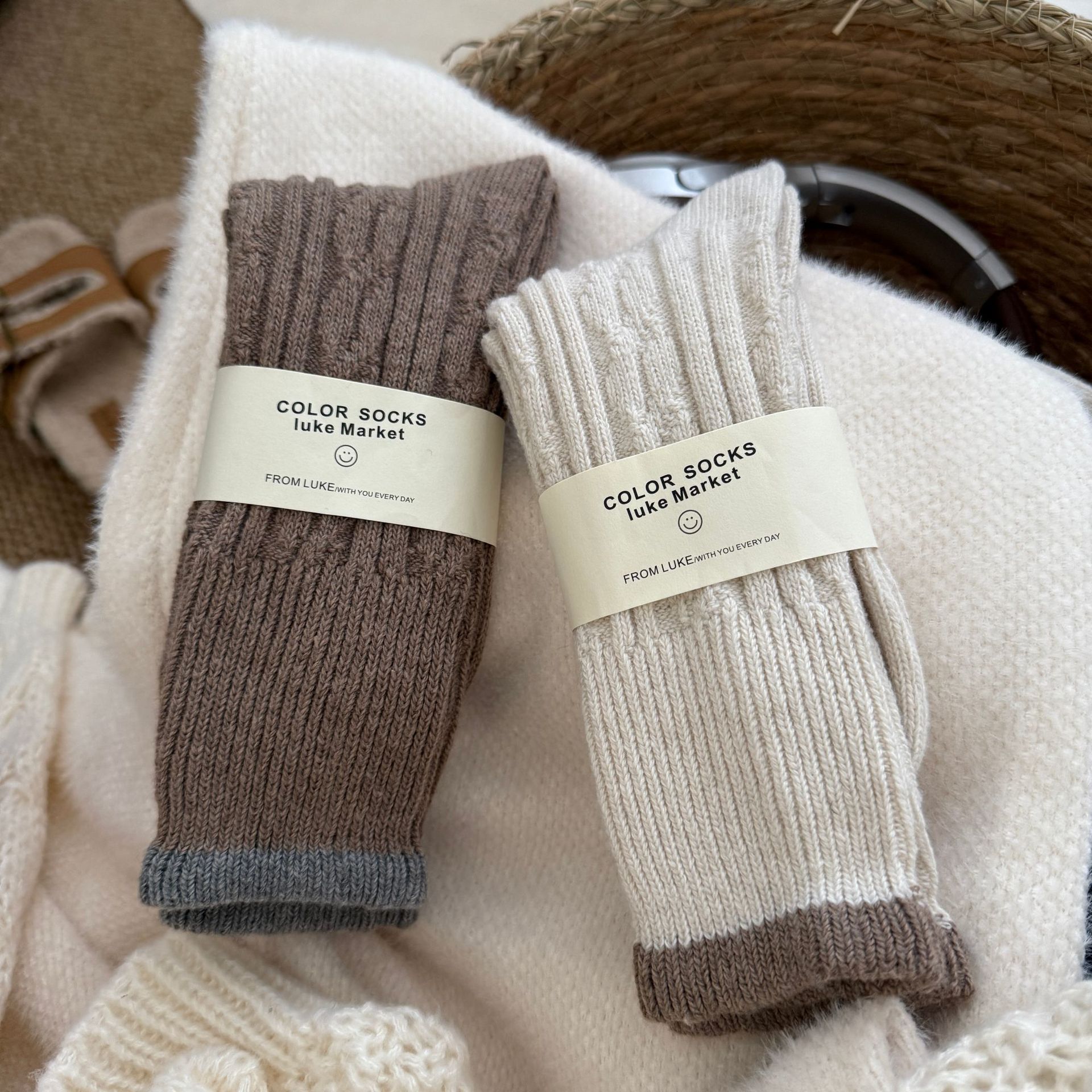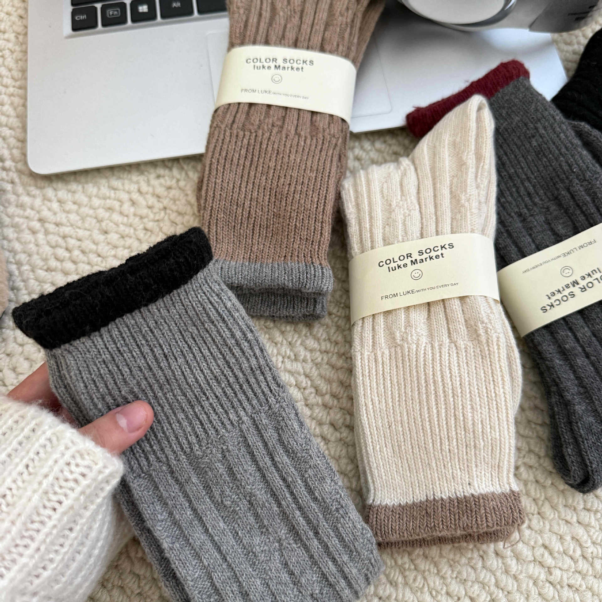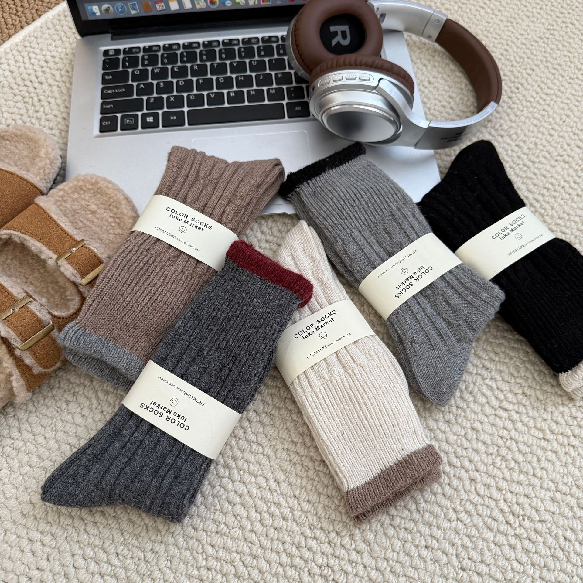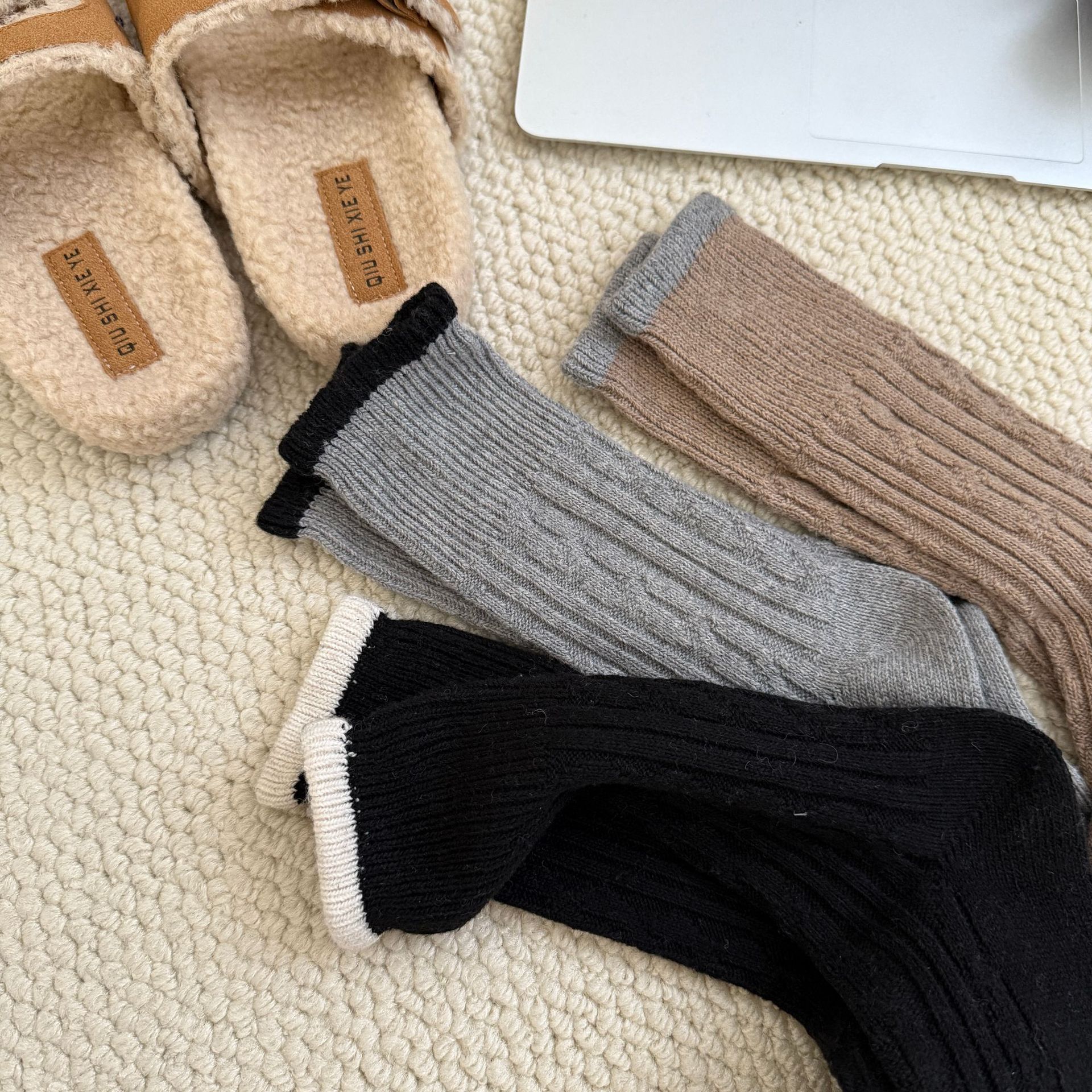 양말 여성의 가을과 겨울 색상 매칭 일본 스타일 두꺼운 라인 트렌디 양말 Ins 캐주얼 스택 양말 미드 튜브 양말 여성용 양말스토어 가기