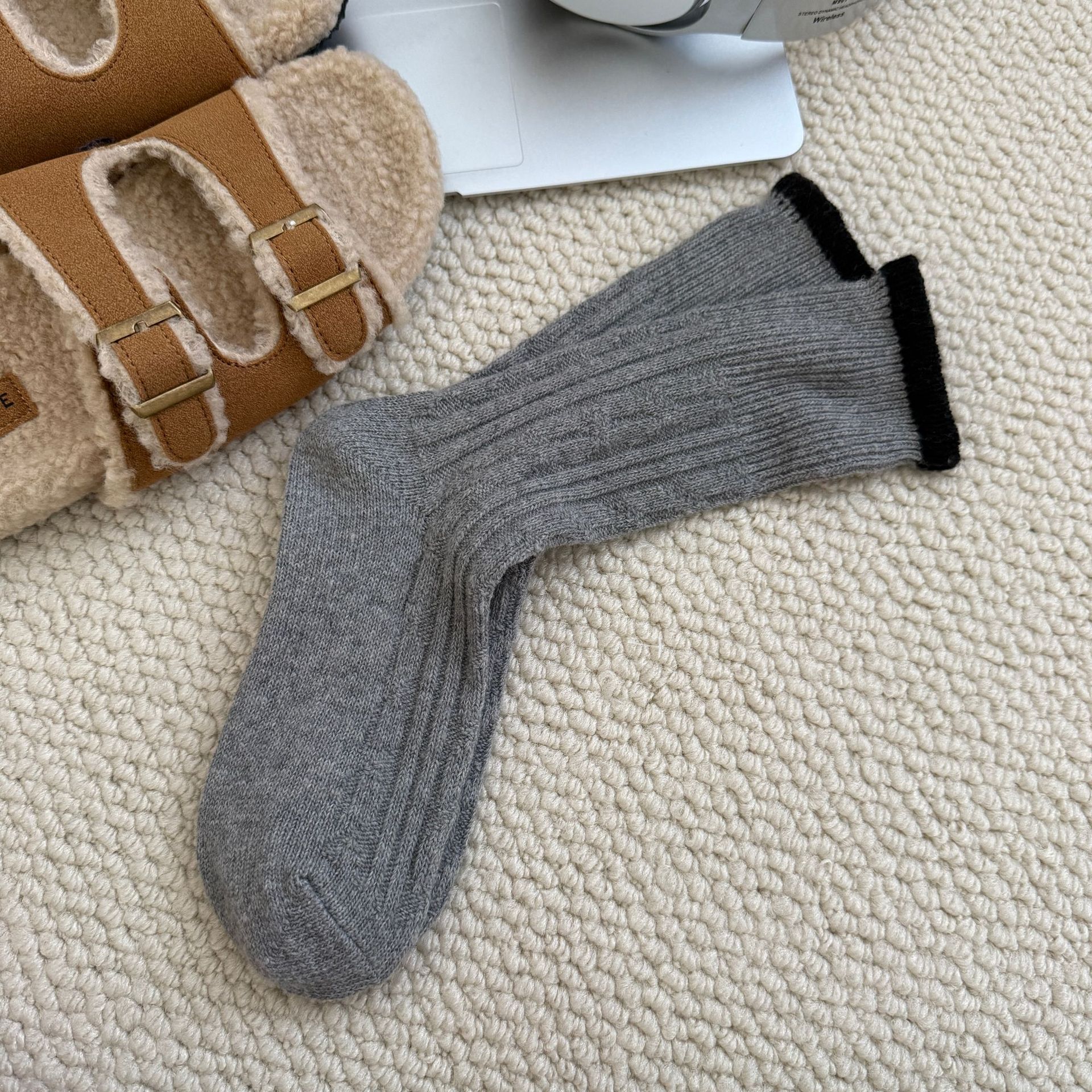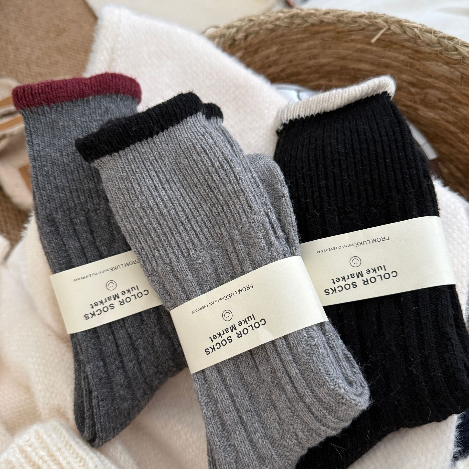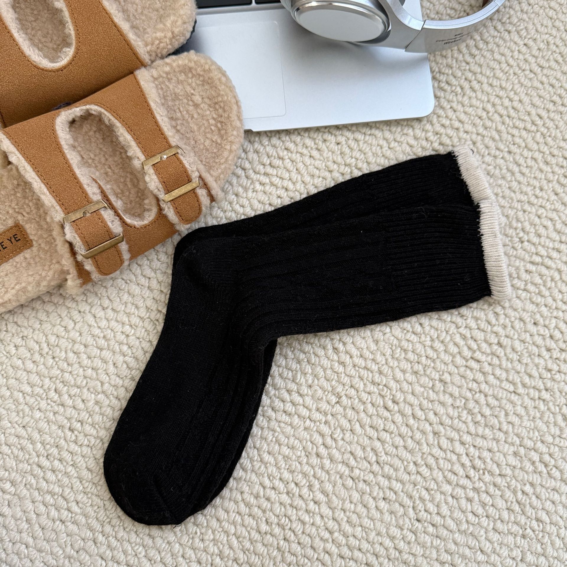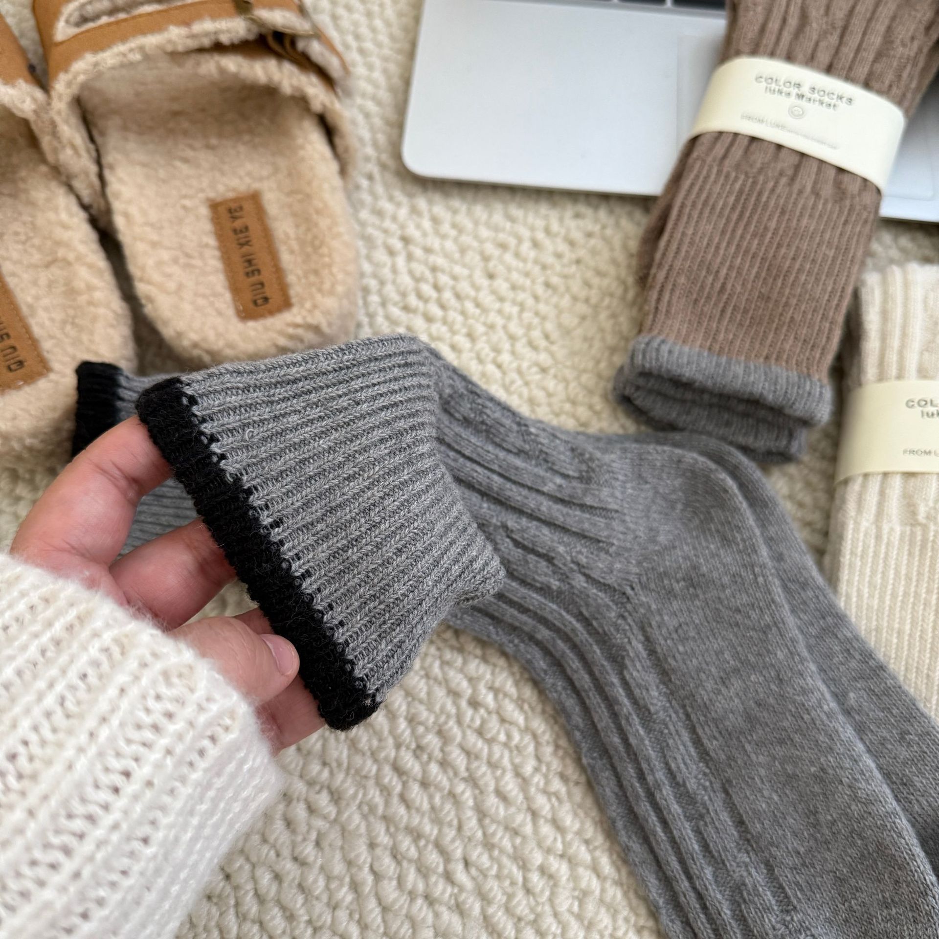 양말 여성의 가을과 겨울 색상 매칭 일본 스타일 두꺼운 라인 트렌디 양말 Ins 캐주얼 스택 양말 미드 튜브 양말 여성용 양말