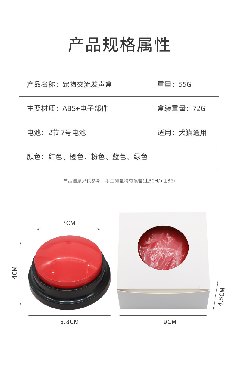 개 음성 상자 애완 동물 장난감을 위한 고양이 음성 녹음 가능한 음성 짜기 조련사를 위한 애완 동물 통신 버튼