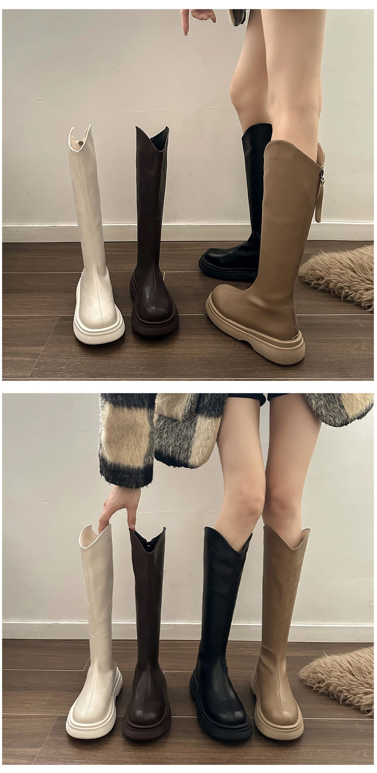 한국 스타일 V-입 기사 부츠 여성 2024 가을 및 겨울 새 스타일 리어 지퍼하지만 무릎 긴 부츠 유행 두꺼운 바닥 마틴 부츠