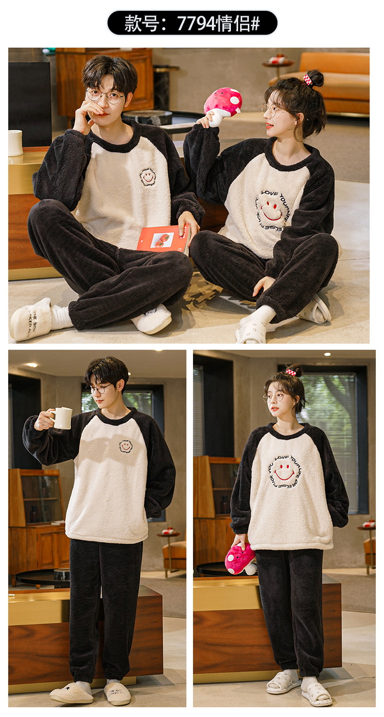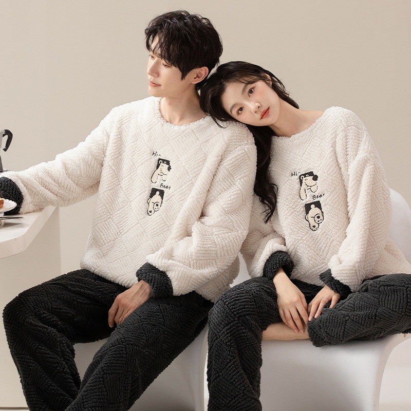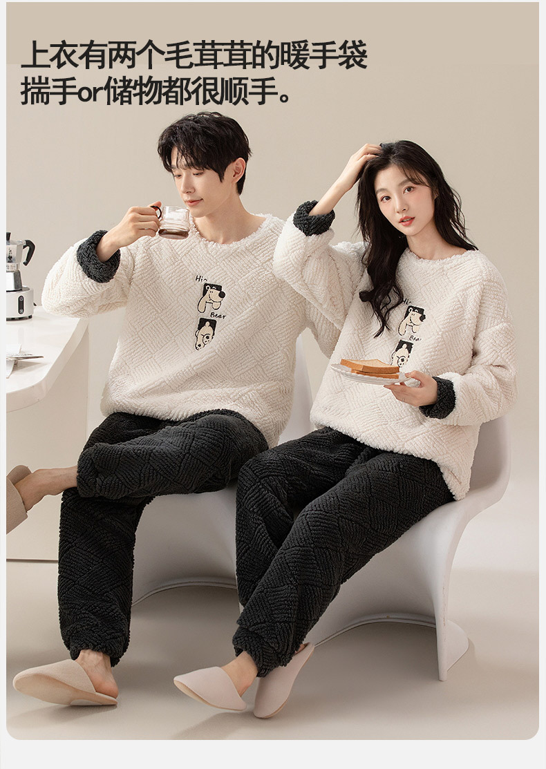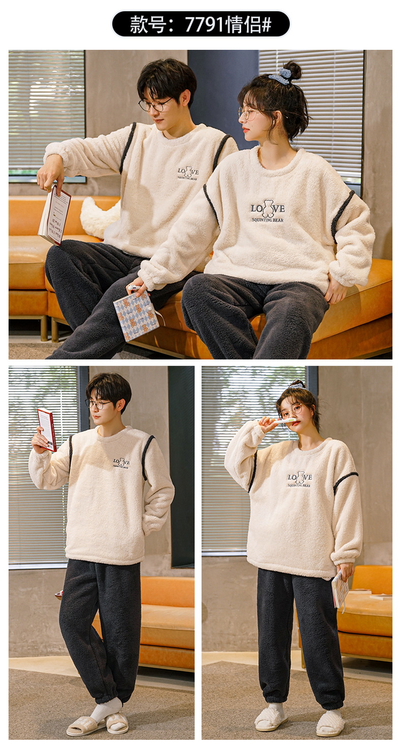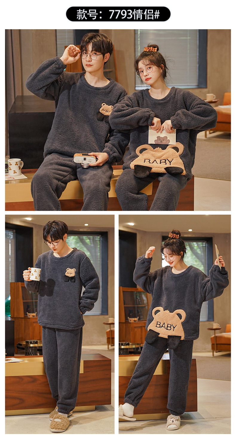 커플 잠옷 가을과 겨울 두꺼운 따뜻한 산호 양털 여성 만화 겨울 플란넬 남자 홈 의류 세트스토어 가기