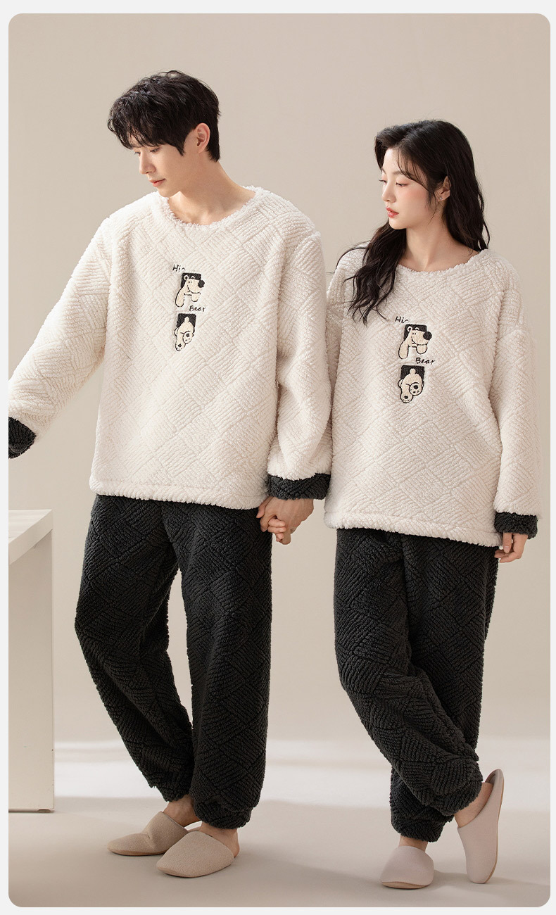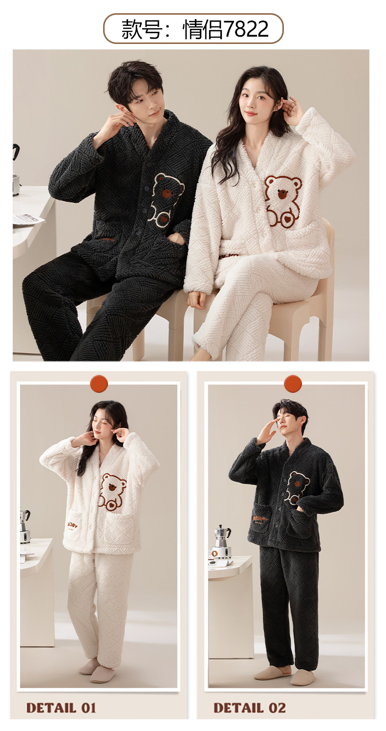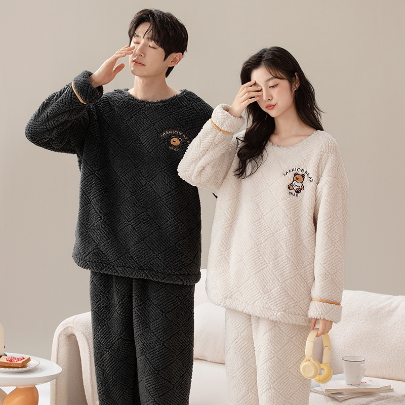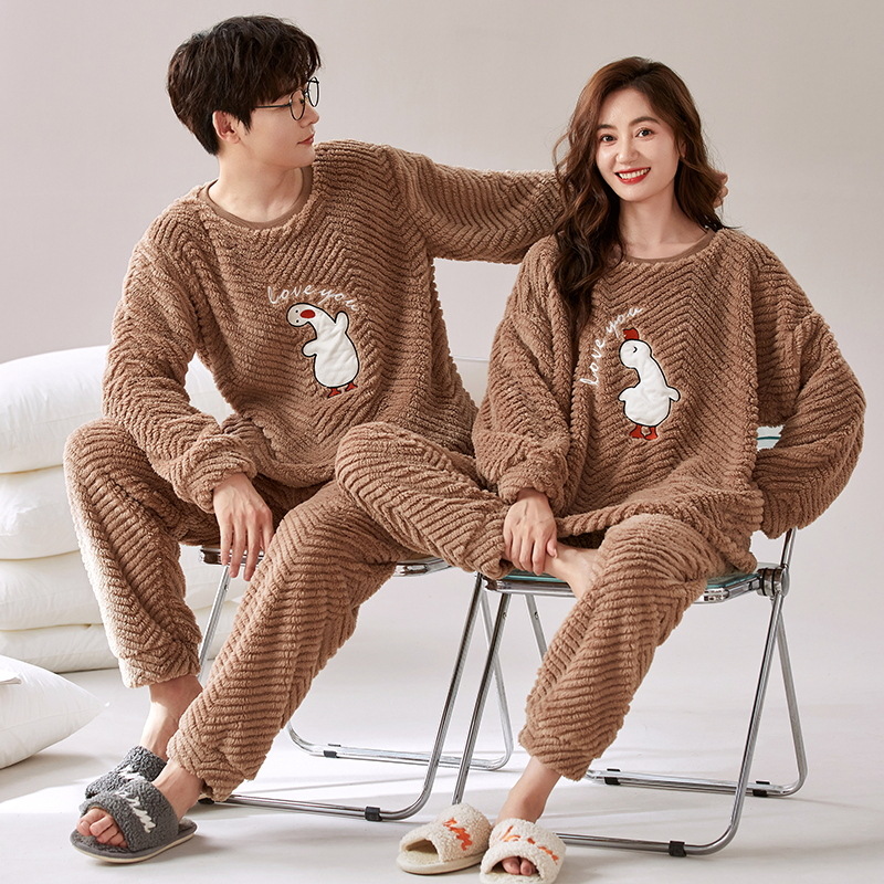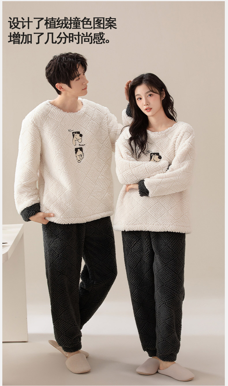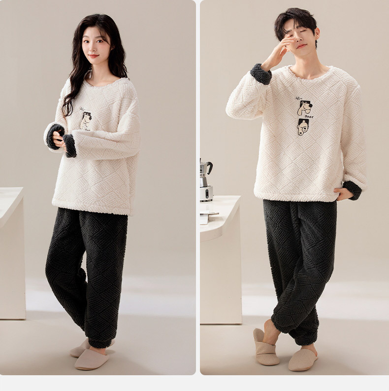 커플 잠옷 가을과 겨울 두꺼운 따뜻한 산호 양털 여성 만화 겨울 플란넬 남자 홈 의류 세트스토어 가기