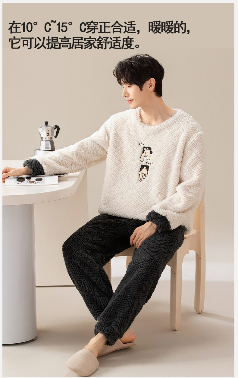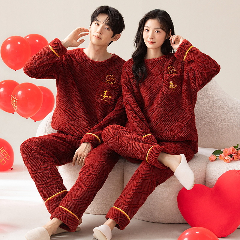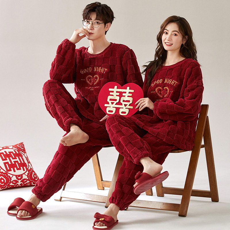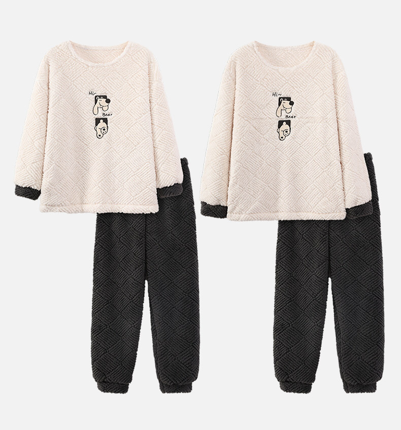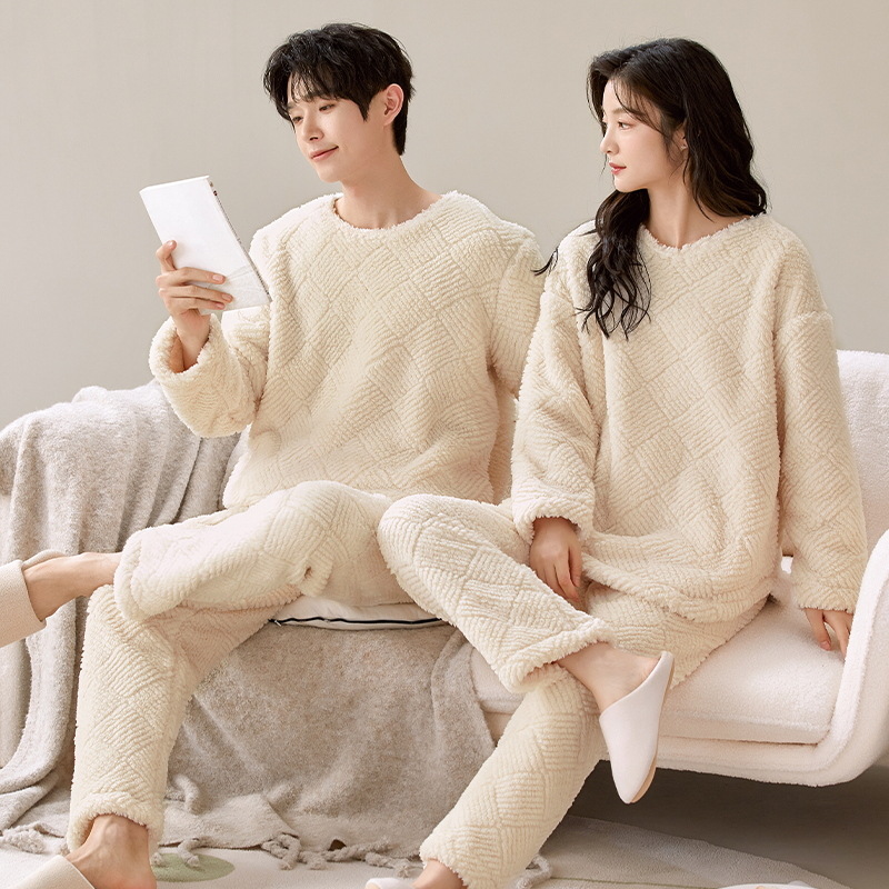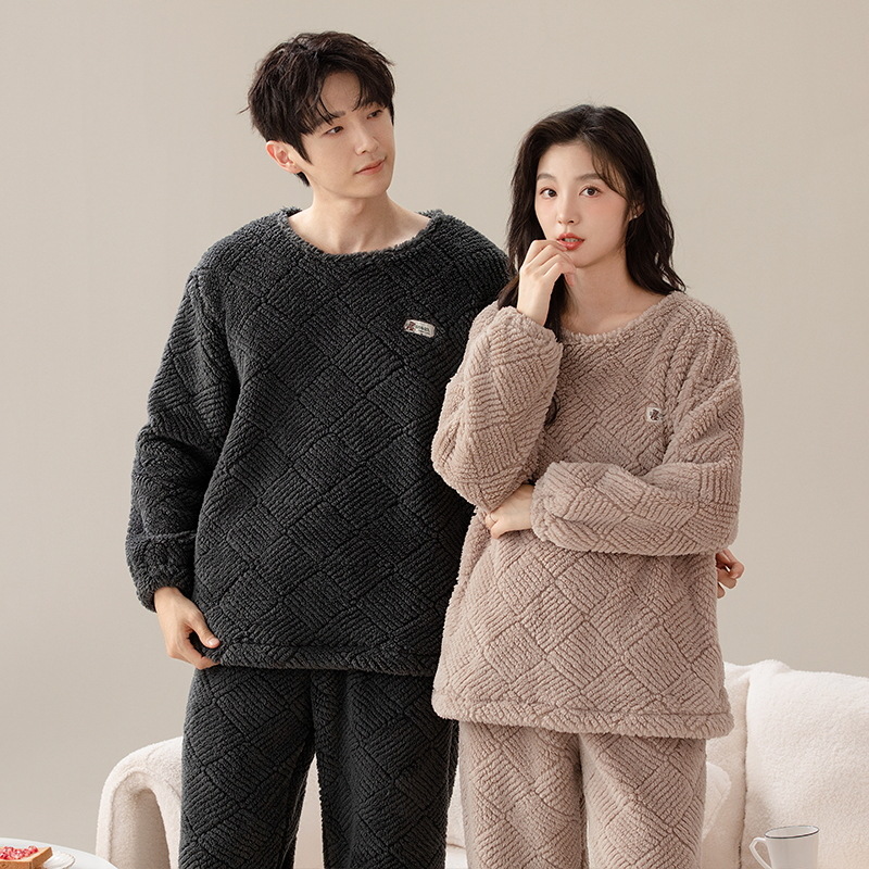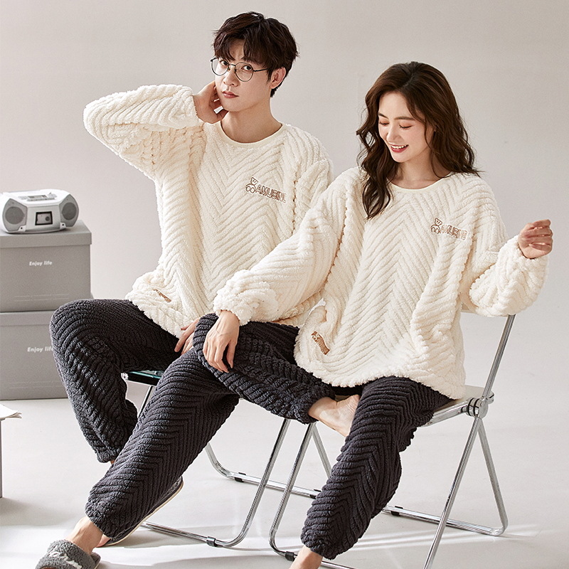 커플 잠옷 가을과 겨울 두꺼운 따뜻한 산호 양털 여성 만화 겨울 플란넬 남자 홈 의류 세트스토어 가기
