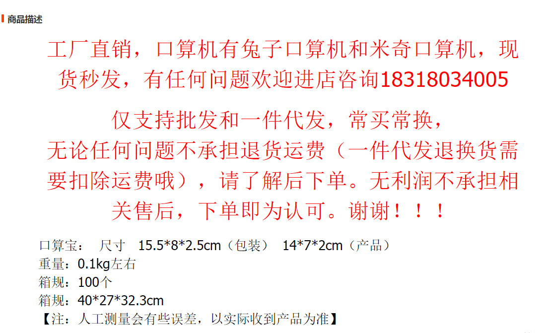 口算宝:  尺寸   15.5*8*2.5cm(包装)  14*7*2cm(产品)