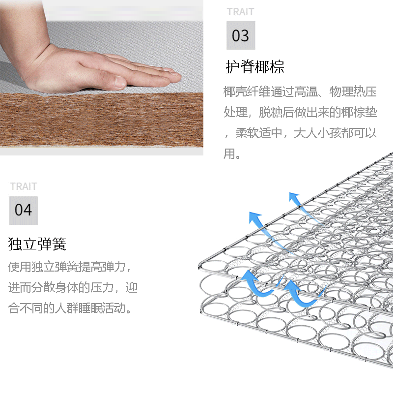 • 독립적인 둥근 입 스프링 + 라텍스 + 3E 친환경 브라운