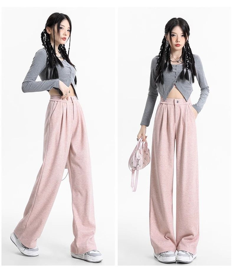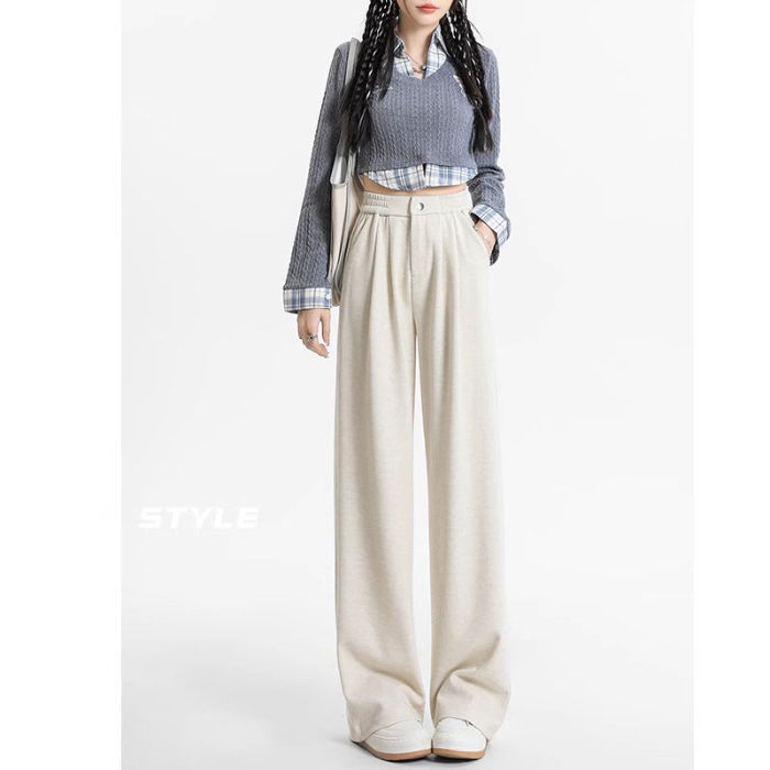 배 모양의 몸 슬리밍 넓은 다리 바지 2024 높은 허리 새 도착 가을 슬리밍 직선 통근 캐주얼 더깅 게으른 바지스토어 가기