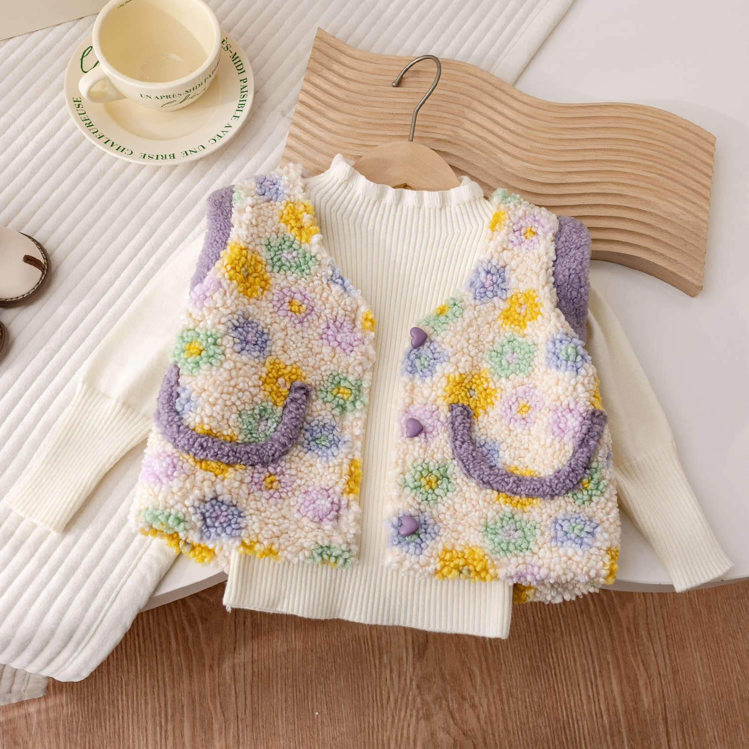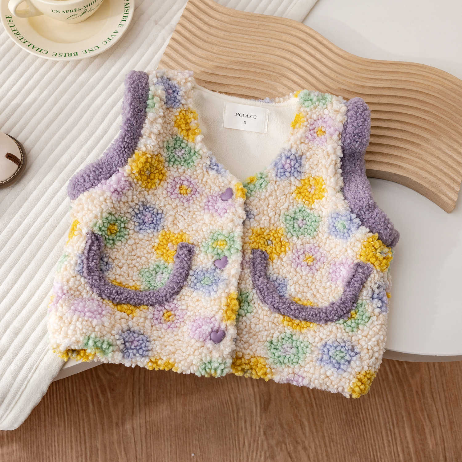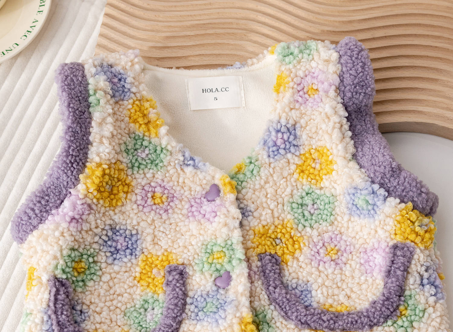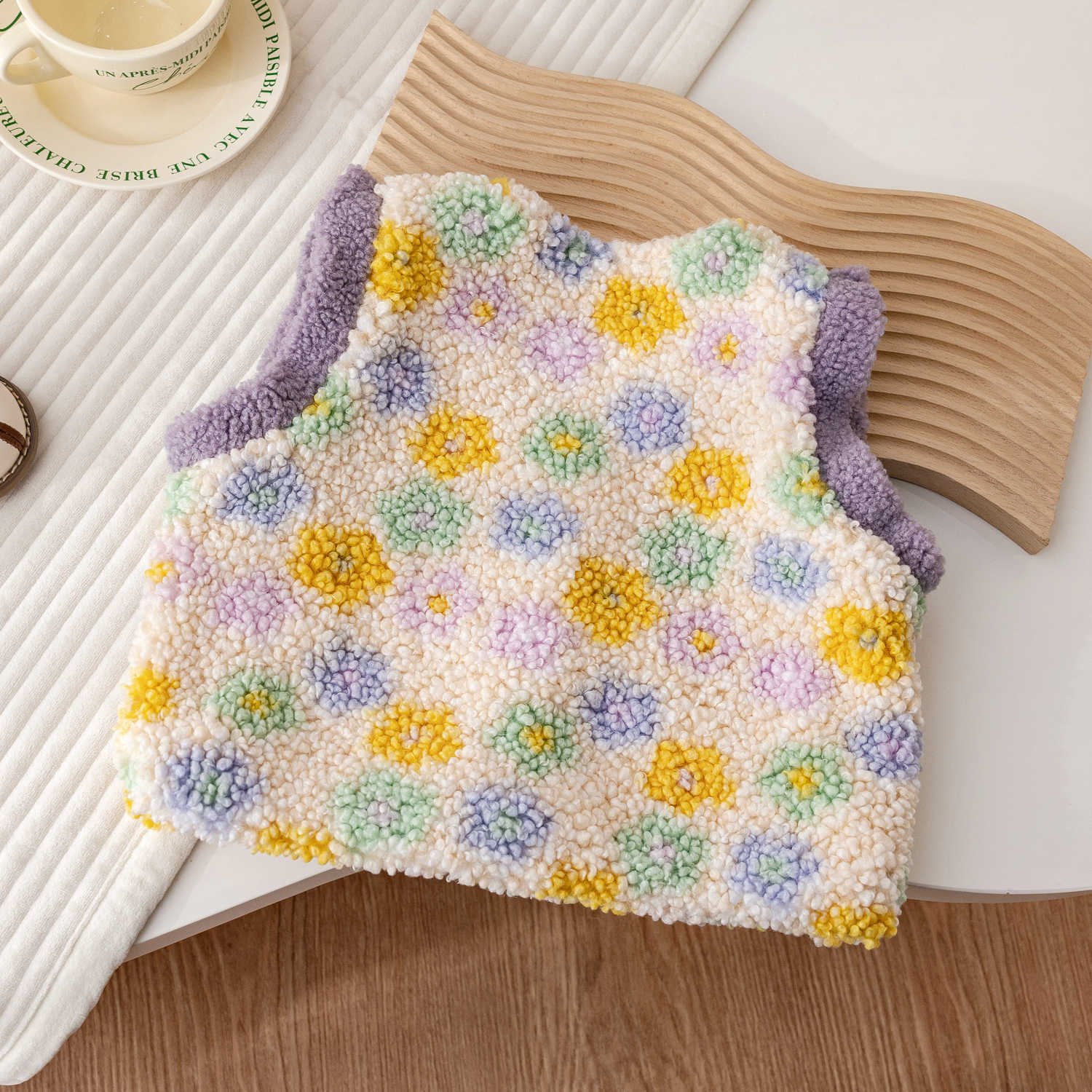 소녀 서양식 조끼 기모 보라색 폴라 도트 올 매치 외부 조끼 가을 및 겨울 새 가을 새 내복 착용스토어 가기