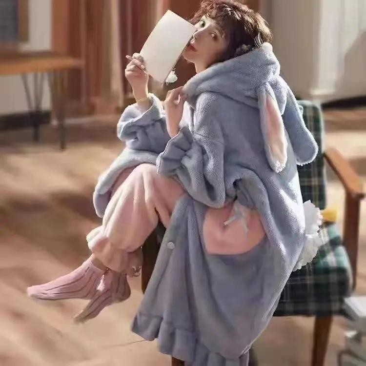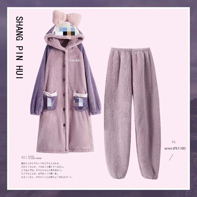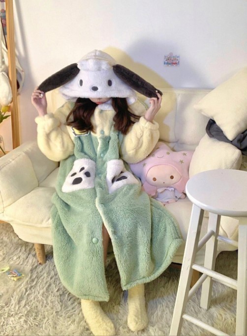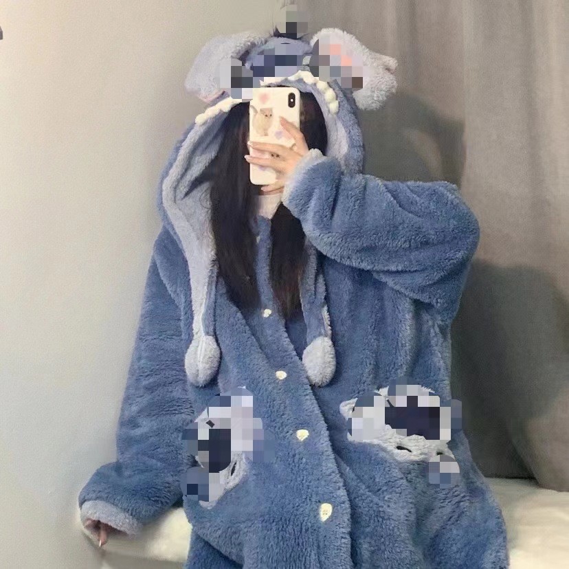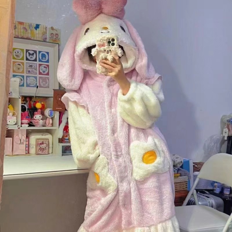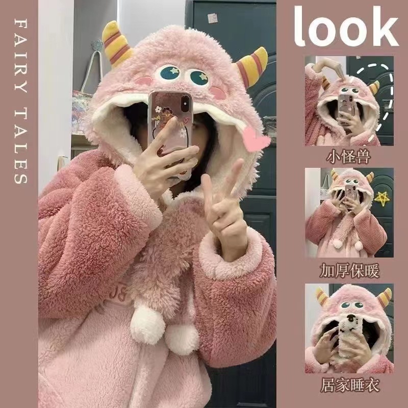 크로스보더 카피발라 후드 코랄벨벳 잠옷 만화 캐릭터 여성 겨울용 멜로디 홈웨어 맞춤 제작 가능